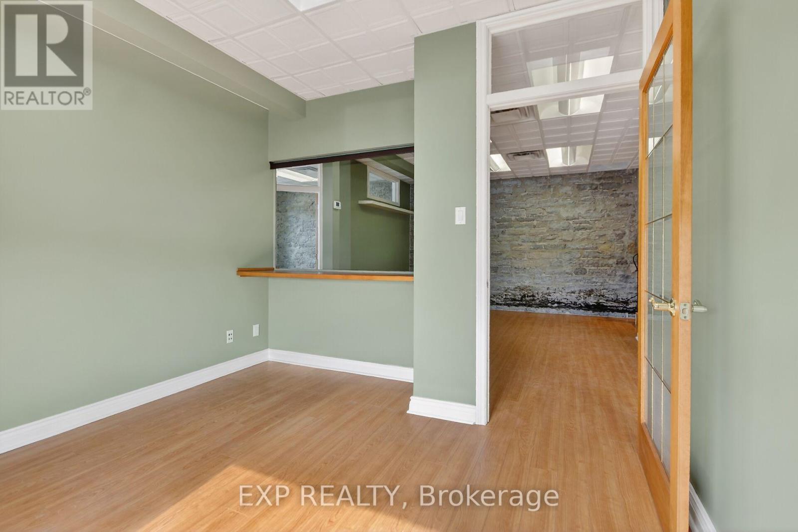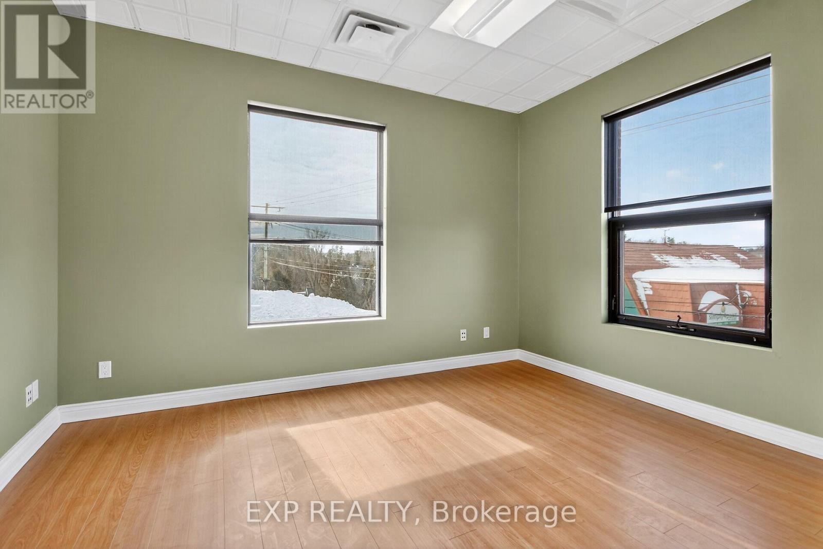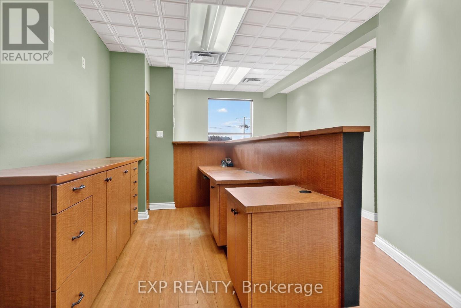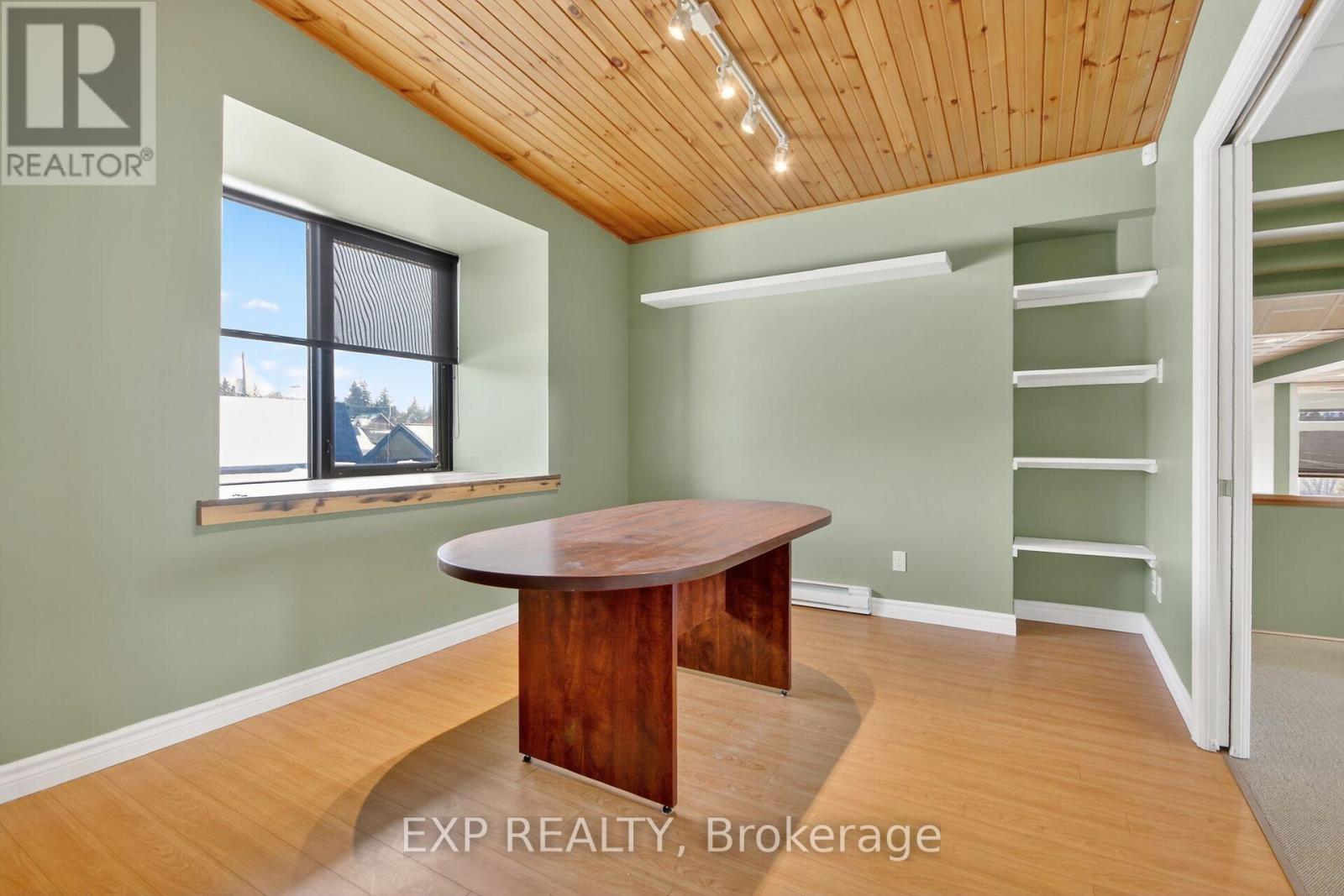Bright, beautifully appointed 2,058 sq. ft. office space in the heart of downtown Almonte at 14 Mill St., above the vibrant shops and dining of Heritage Court. This inviting and professional space features five private offices, expansive common areas, two bathrooms, a kitchen, and a welcoming reception desk. One office includes elegant pocket doors, making it ideal for a boardroom or conference room.Flooded with natural light from large, bright windows and complemented by high ceilings and a classic stone accent wall, this space blends character with functionality. In the warmer months, enjoy access to a rooftop outdoor area - perfect for a breath of fresh air during the workday.An ideal opportunity for multiple practitioners or businesses ready to transition from working at home into a collaborative professional environment. Perfect for like-minded businesses serving similar clientele who can benefit from a symbiotic working relationship while maintaining private office space.Flexible leasing options available: Lease the full 2,058 sq. ft. for $4,121/month + HST. Lease approximately 1,058 sq. ft. for $2,381/month + HST. (Option to configure as two units of approx. 1,058 sq. ft. and 1,000 sq. ft.). Common area costs include property taxes, snow removal, property maintenance, water, and heat. Tenants responsible for hydro and internet.Excellent accessibility with ample public parking in the rear of building. A rare opportunity to establish your business in a bright, professional, and centrally located setting. (id:64974)