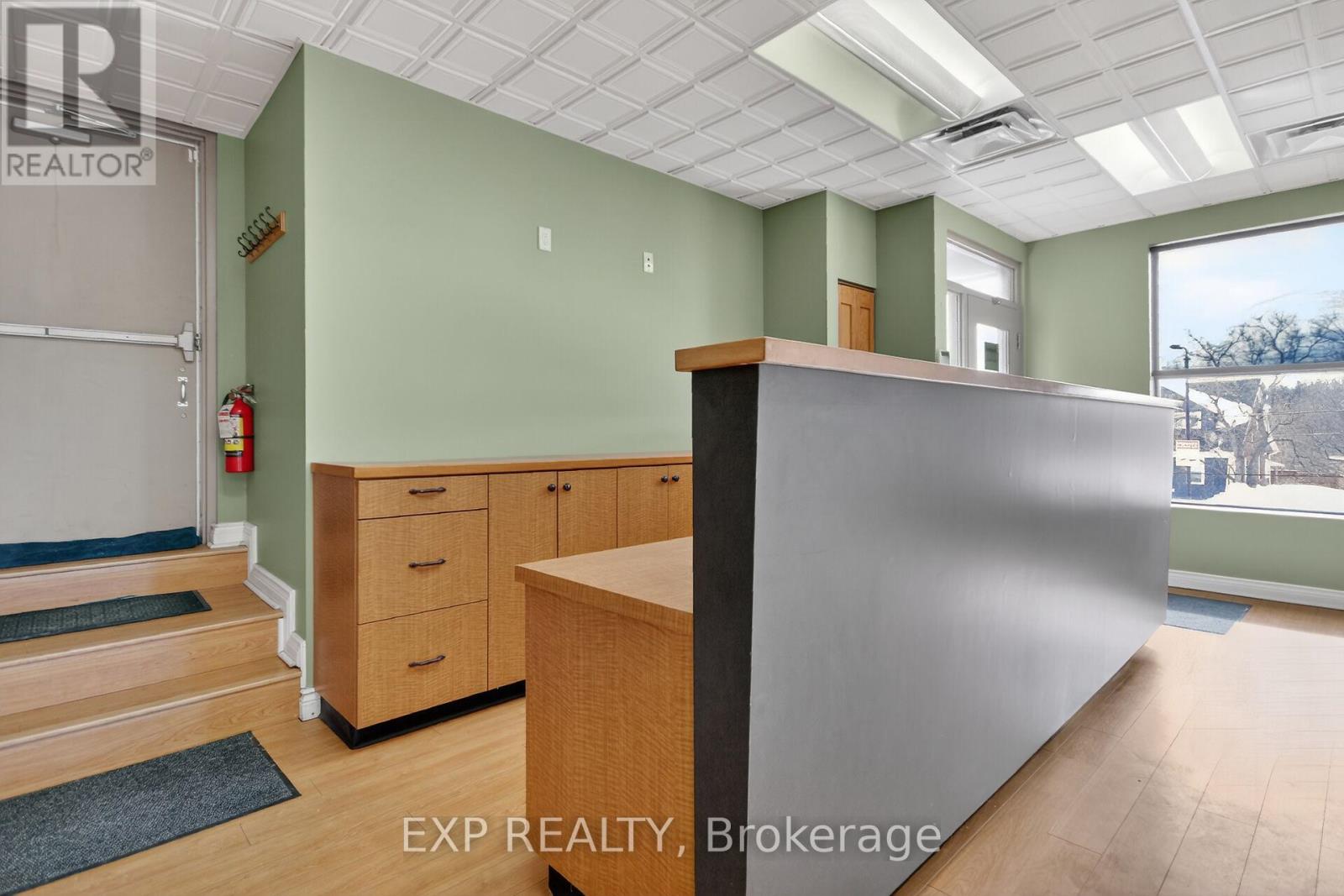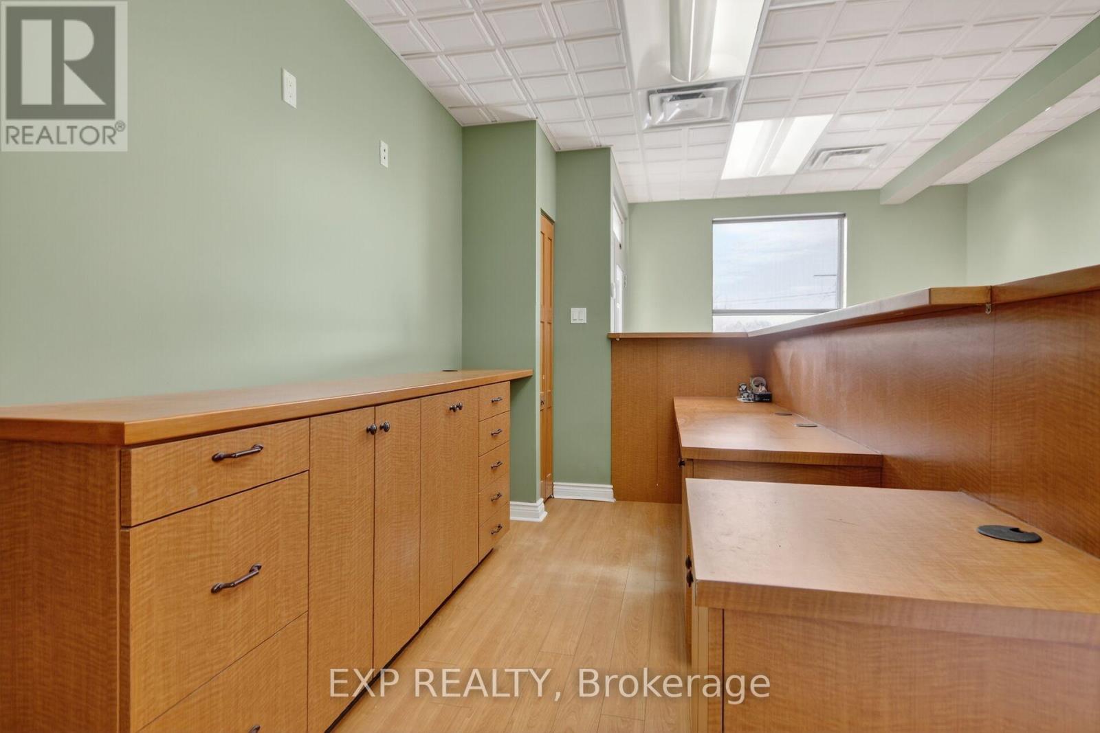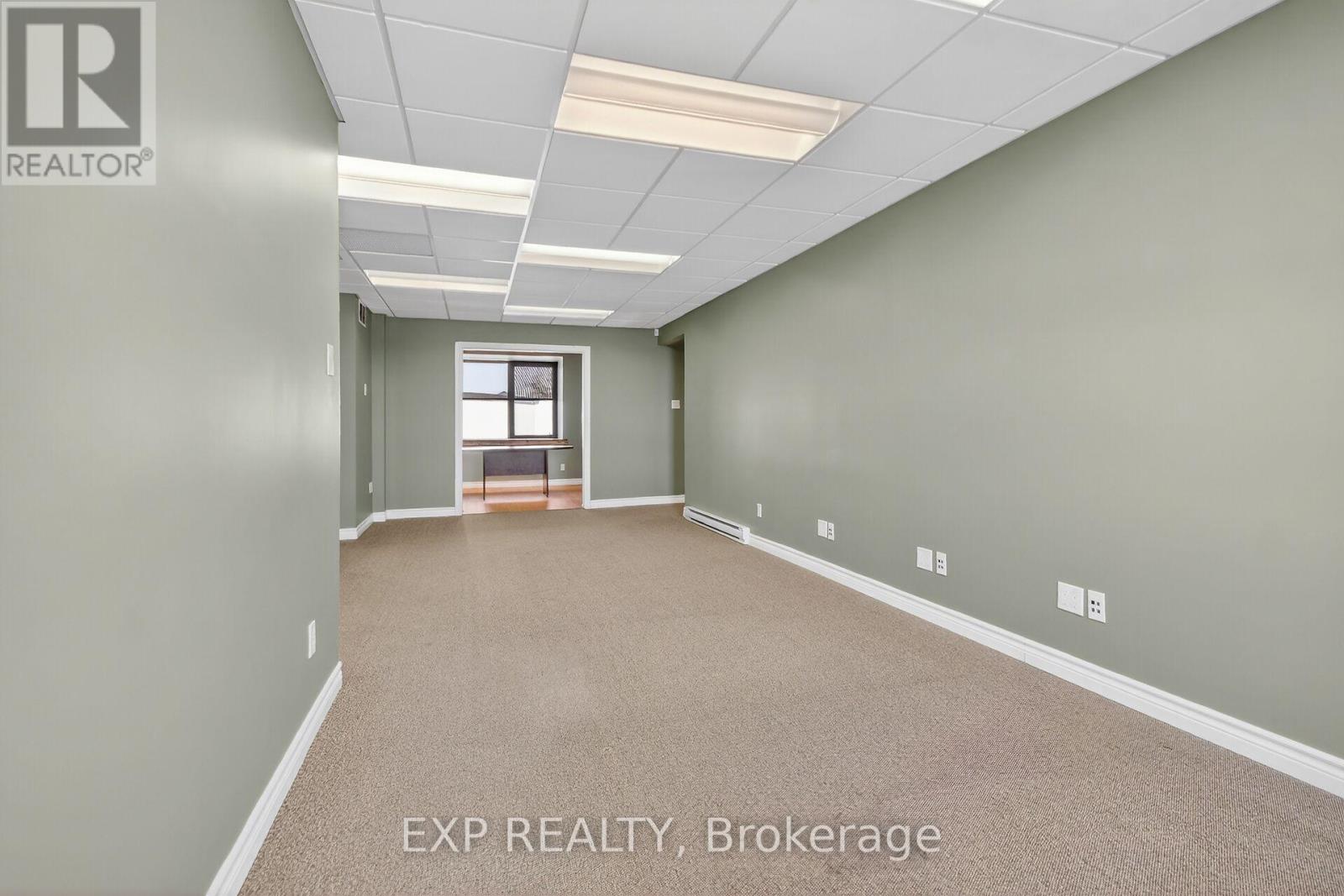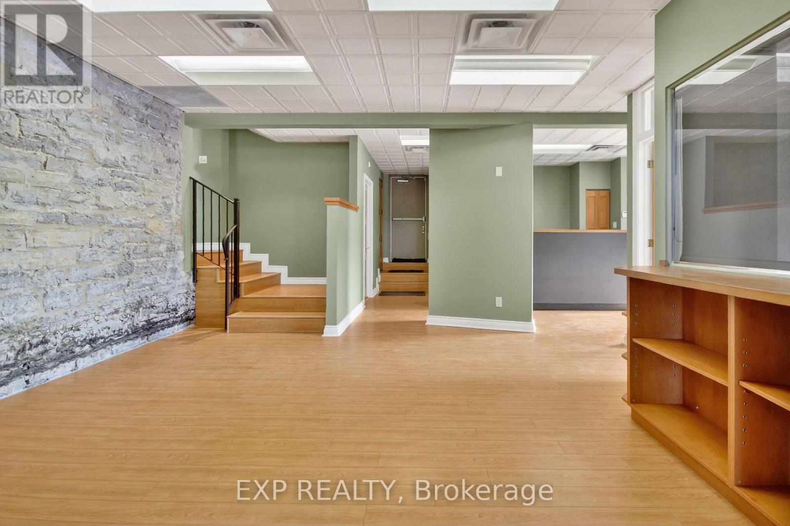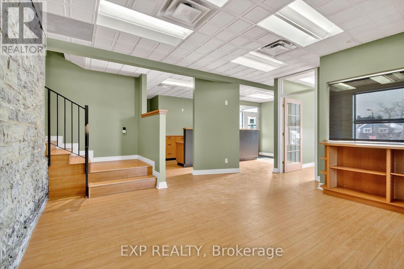 Bright, beautifully appointed 2,058 sq. ft. office space in the heart of downtown Almonte at 14 Mill St., above the vibrant shops and dining of Heritage Court. This inviting and professional space features five private offices, expansive common areas, two bathrooms, a kitchen, and a welcoming reception desk. One office includes elegant pocket doors, making it ideal for a boardroom or conference room.Flooded with natural light from large, bright windows and complemented by high ceilings and a classic stone accent wall, this space blends character with functionality. In the warmer months, enjoy access to a rooftop outdoor area - perfect for a breath of fresh air during the workday.An ideal opportunity for multiple practitioners or businesses ready to transition from working at home into a collaborative professional environment. Perfect for like-minded businesses serving similar clientele who can benefit from a symbiotic working relationship while maintaining private office space.Flexible leasing options available: Lease the full 2,058 sq. ft. for $4,121/month + HST. Lease approximately 1,058 sq. ft. for $2,381/month + HST. (Option to configure as two units of approx. 1,058 sq. ft. and 1,000 sq. ft.). Common area costs include property taxes, snow removal, property maintenance, water, and heat. Tenants responsible for hydro and internet.Excellent accessibility with ample public parking in the rear of building. A rare opportunity to establish your business in a bright, professional, and centrally located setting. (id:64974)