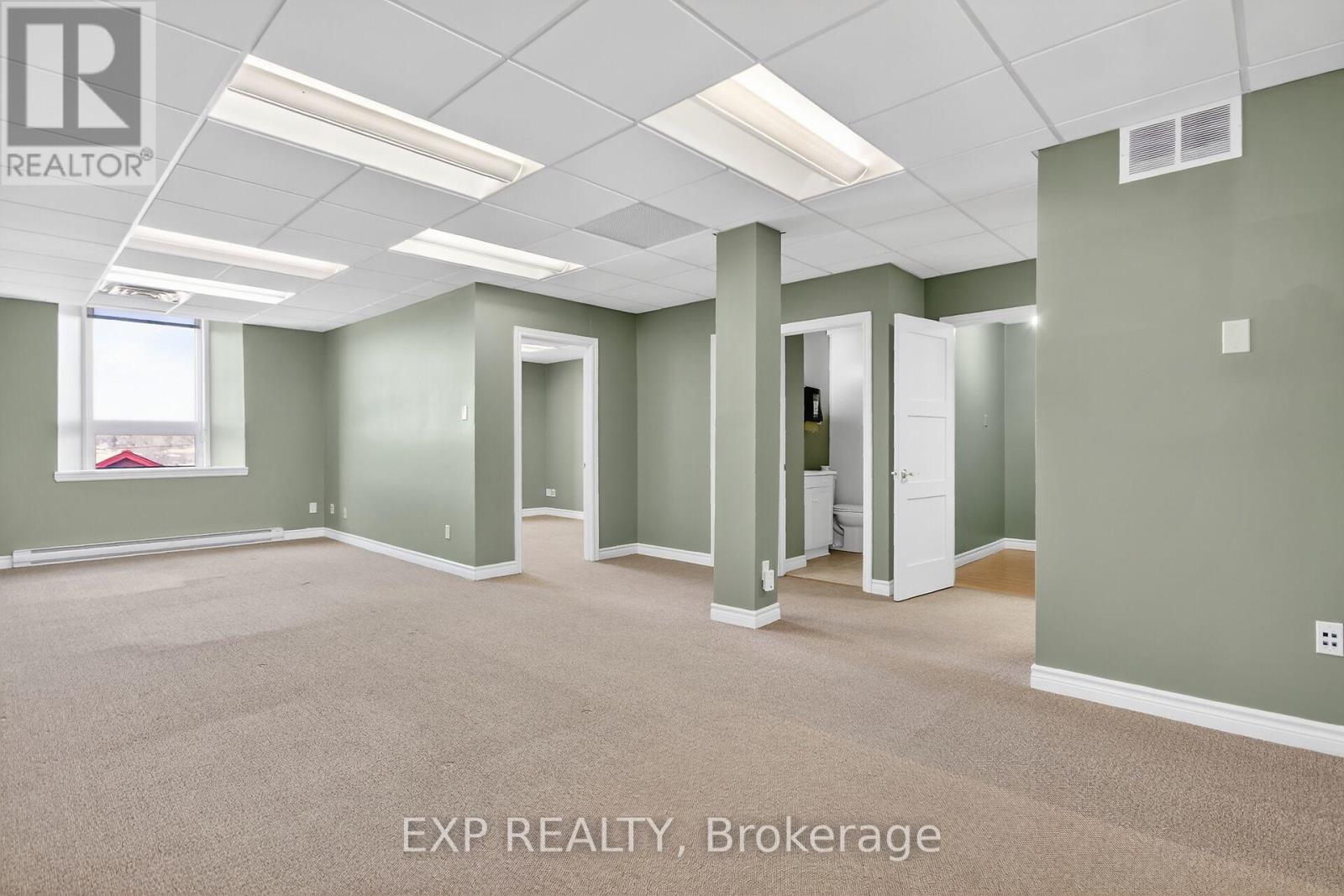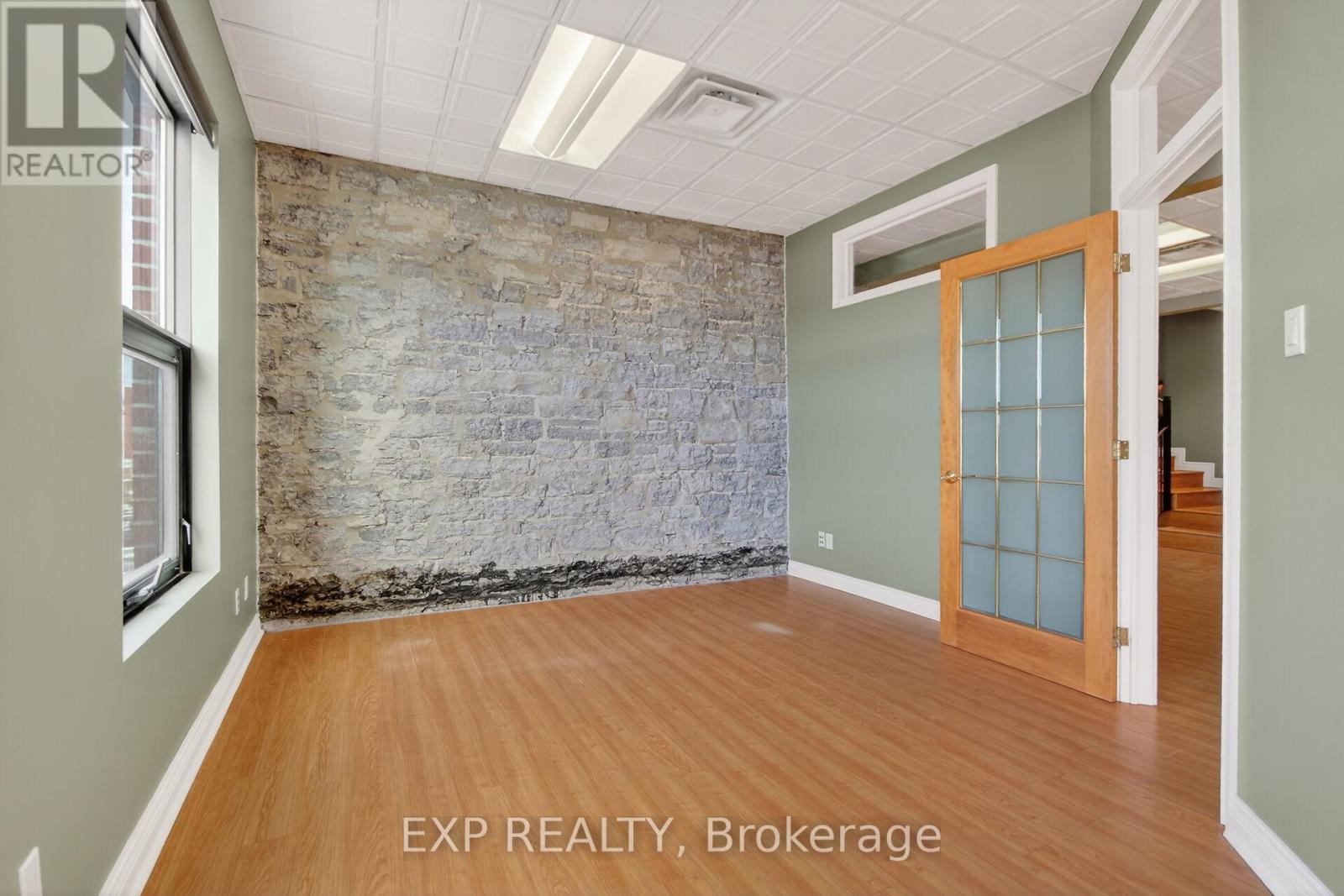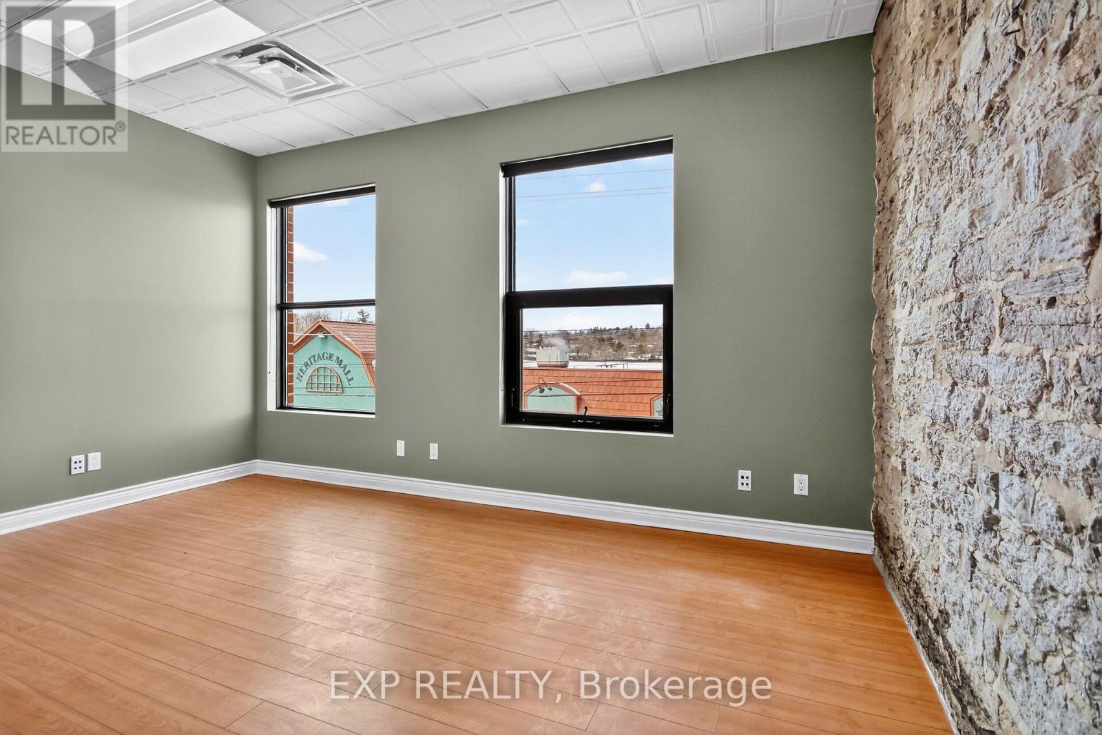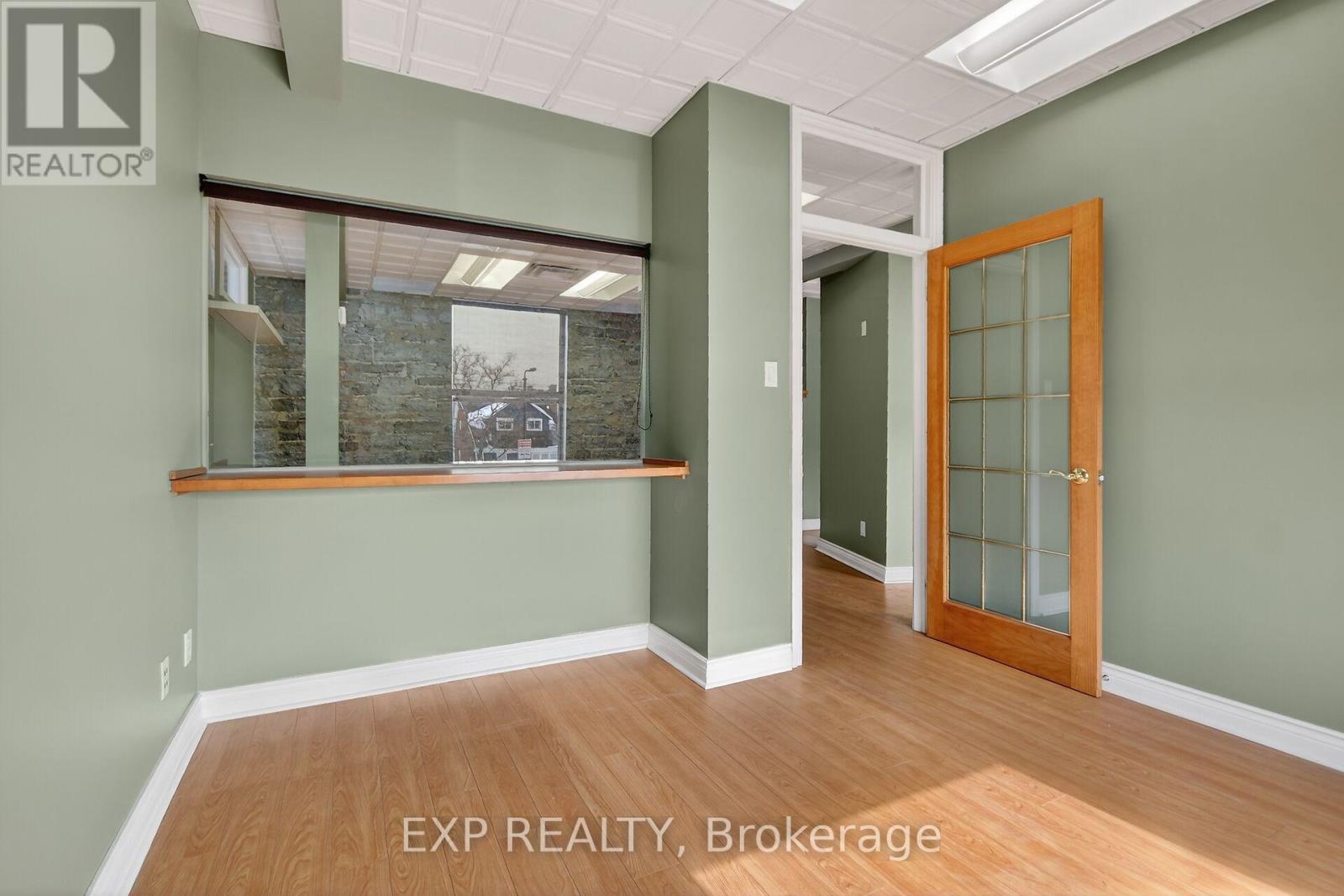 Bright, beautifully appointed 2,058 sq. ft. office space in the heart of downtown Almonte at 14 Mill St., above the vibrant shops and dining of Heritage Court. This inviting and professional space features five private offices, expansive common areas, two bathrooms, a kitchen, and a welcoming reception desk. One office includes elegant pocket doors, making it ideal for a boardroom or conference room.Flooded with natural light from large, bright windows and complemented by high ceilings and a classic stone accent wall, this space blends character with functionality. In the warmer months, enjoy access to a rooftop outdoor area - perfect for a breath of fresh air during the workday.An ideal opportunity for multiple practitioners or businesses ready to transition from working at home into a collaborative professional environment. Perfect for like-minded businesses serving similar clientele who can benefit from a symbiotic working relationship while maintaining private office space.Flexible leasing options available: Lease the full 2,058 sq. ft. for $4,121/month + HST. Lease approximately 1,058 sq. ft. for $2,381/month + HST. (Option to configure as two units of approx. 1,058 sq. ft. and 1,000 sq. ft.). Common area costs include property taxes, snow removal, property maintenance, water, and heat. Tenants responsible for hydro and internet.Excellent accessibility with ample public parking in the rear of building. A rare opportunity to establish your business in a bright, professional, and centrally located setting. (id:64974)