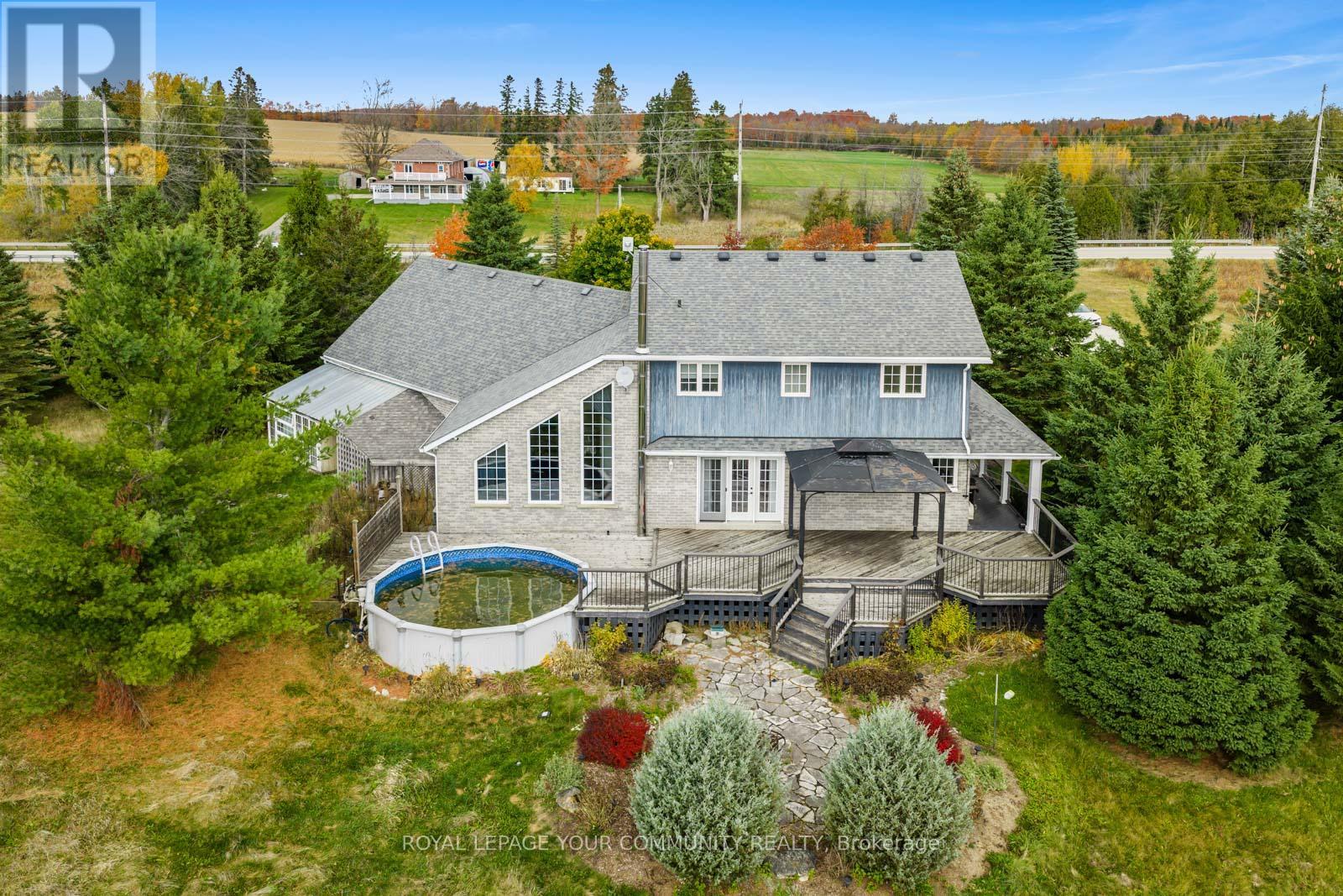Sitting on over 5 acres of private land, this custom-built estate spans more than 3,000 sq. ft. and features 4 bedrooms, 3 bathrooms, a fully finished basement with a separate entrance, and endless charm inside and out. Welcome to 286194 Country Rd - where luxury living meets the serenity of the countryside. The wraparound porch frames stunning panoramic views, inviting you into a home that balances space, comfort, and sophistication. Inside, discover grand, light-filled rooms with soaring ceilings, designed for both everyday living and effortless entertaining. The open-concept kitchen is the perfect centerpiece - whether you're cooking for family or hosting friends. Downstairs, the finished basement with private garage access adds versatility and function - ideal for guests, in-laws, or a home business. Step outside into your own private retreat: a sparkling pool, relaxing hot tub, and built-in bonfire area surrounded by nature's beauty. This is more than a home - it's your country dream come to life. (id:64974)