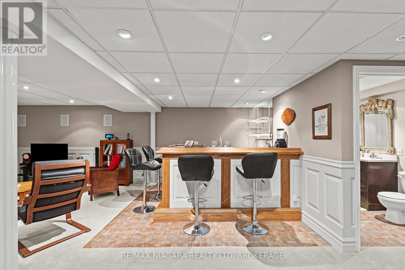 Welcome to easy, carefree living in one of the most peaceful and desirable communities in North End Niagara Falls. This move-in-ready bungalow condominium offers the perfect blend of comfort, privacy, and convenience, all just minutes from shopping, restaurants, parks, and every amenity you could need.One of the standout features of this home is the beautiful, private backyard space. The brand new back deck creates the perfect place to unwind or entertain, complete with a 15' x 10' sitting area and a remote-controlled awning so you can enjoy the outdoors comfortably all season long.Inside, the main floor offers a warm and inviting open-concept layout with gorgeous hardwood flooring throughout the living and dining area. The living room is anchored by a cozy gas fireplace, while the kitchen has been tastefully updated with modern cabinetry and granite countertops. Both bathrooms also feature granite counters, and California shutters throughout the home add a polished, upscale feel.The main floor layout is incredibly functional, offering a spacious primary bedroom with walk-in closet and private ensuite, as well as convenient main floor laundry.Downstairs, the fully finished lower level gives you even more room to enjoy, featuring a fantastic bar area that's perfect for entertaining, a tucked-away office space, another full bathroom, and plenty of storage including a cedar closet. Set in a quiet, well-kept community known for its peaceful atmosphere and pride of ownership, this home offers the best of both worlds - privacy and tranquility while still being close to absolutely everything. (id:64974)