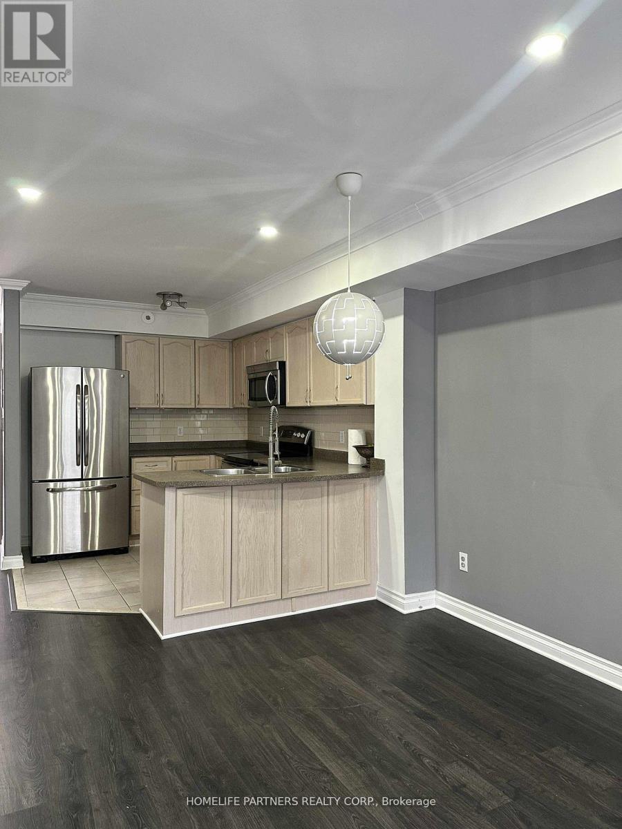 This stunning 2-bedroom end unit townhome offers modern elegance and convenient living all on one level. Enjoy bright, spacious bedrooms, including a primary suite. The home features no carpet enhancing its sleek design. Step out onto your private balcony and take advantage of designated parking. Located within walking distance to LCBO, Shoppers, Supercenter, public transit, and more. Minutes To Square One, Worship & Schools. This home perfectly blends comfort and accessibility. Don't miss out on this gem! (id:64974)