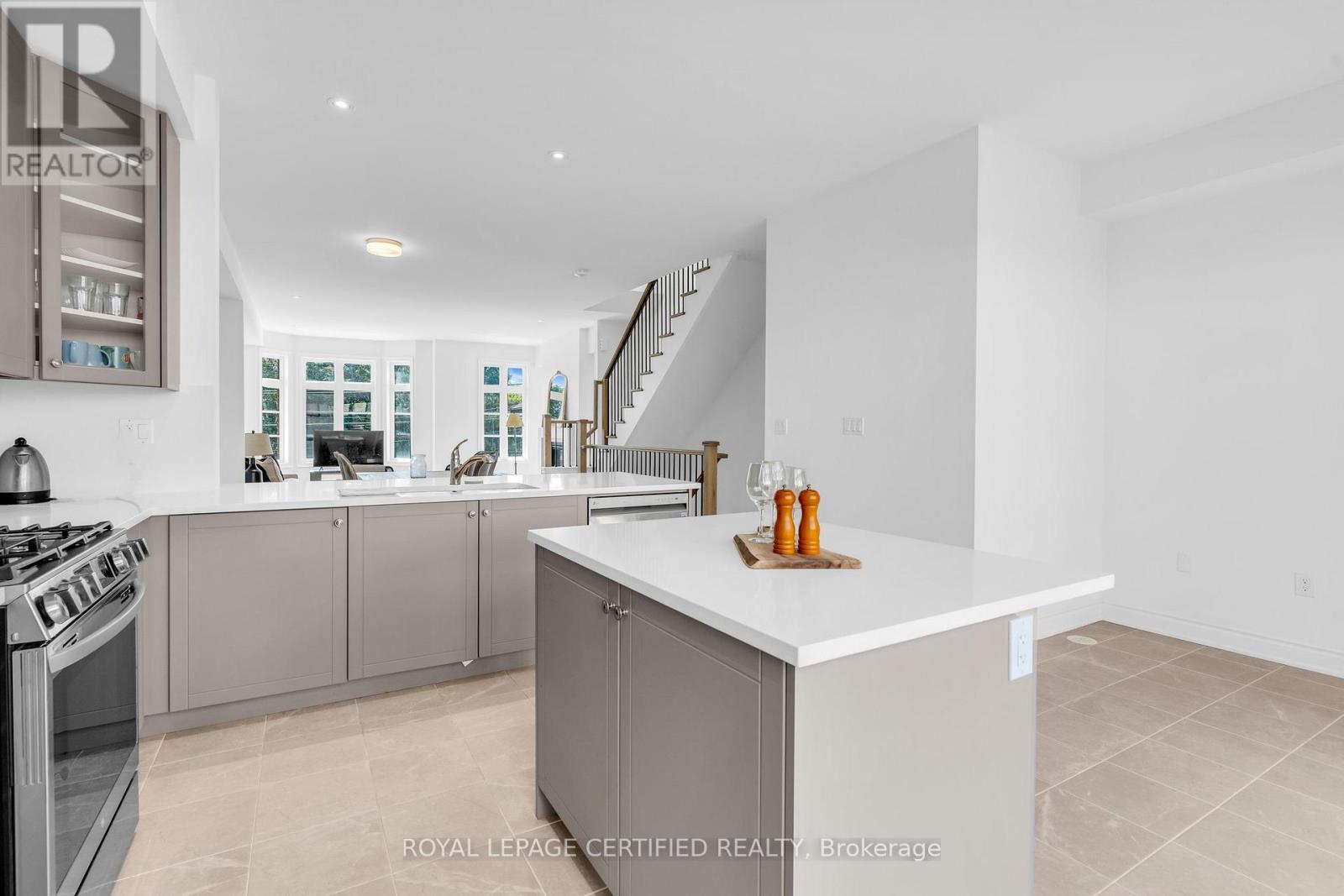Luxurious townhouse "Dunpar" built home is filled with amazing upgrades and upscale finishes. Gourmet kitchen w/granite counters, extended upper cabinets, under cabinet lighting, kitchen island & S/S appliances. Access the oversized private deck from the kitchen/breakfast room. Engineered hardwood floors on main & second floor hallway w/upgraded 6.5" inch basements thru-out, dramatic 9'6" smooth ceilings on the main & 9' smooth ceiling on 2nd floor, upgraded wood pickets and handrails lead you to the 3rd floor w/3 generous size bedrooms. (id:64974)
