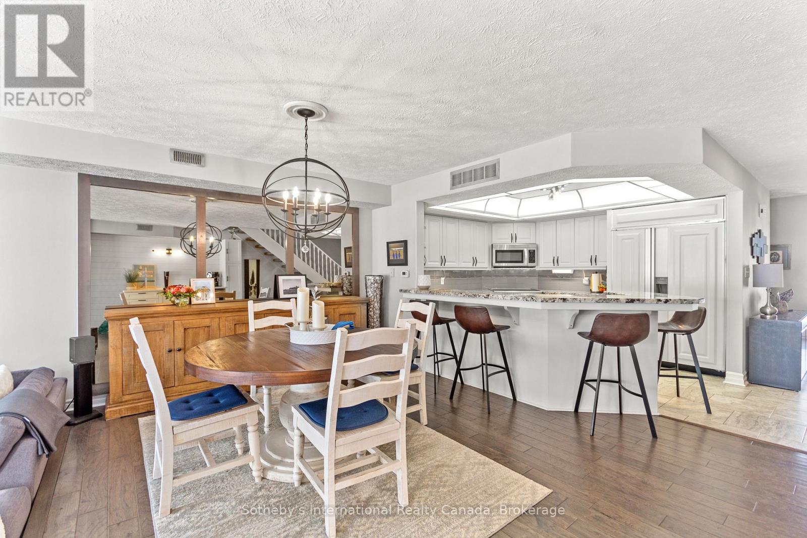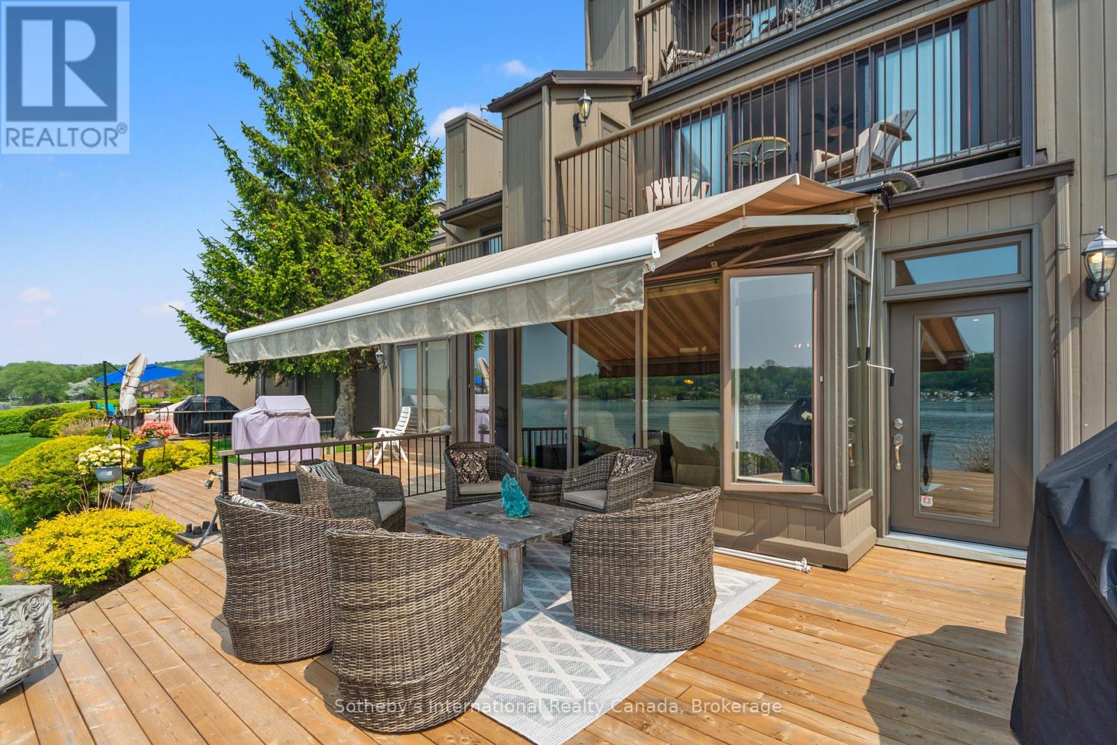 Welcome to Tannery Cove, Penetanguishene's exclusive waterfront townhouse community, where maintenance-free living meets the allure of waterfront living. This impressive 2,550 sq ft townhouse boasts 2 bedrooms plus a loft, providing ample space for relaxation and comfortable living. With 3.5 bathrooms, convenience and privacy are at the forefront of this property. As you enter the main level, you'll be greeted by an open concept kitchen, dining room, beverage bar and sunken living room with a gas fireplace and solarium. The kitchen features bar seating, a counter-depth Sub Zero refrigerator, stainless steel stove with electric induction stovetop, and microwave, ensuring that every culinary endeavour is met with ease. Walkout to the spacious deck with ample room for seating, BBQing and a convenient retractable awning. The main level also showcases a powder room and an office with storage. On the second level, the primary bedroom features a gas fireplace, a walkout to a balcony that overlooks the water, and a luxurious 5-piece ensuite with jet tub. The second bedroom also boasts its own balcony and 3-piece ensuite. Another full bathroom and a laundry closet complete this level. The third level offers a spacious loft with a vaulted ceiling and skylights. This versatile space features built-in beds and a walkout to the balcony to soak in the breathtaking sunset views. Convenience continues with an attached single-car garage. Take advantage of the pristine shoreline, which is clean, deep, and naturally beautiful. Situated in a desirable location, this property is in proximity to downtown, Dock Lunch, Discovery Harbour, a dog park, schools, community center, shopping center, golf courses, fishing spots, scenic trails, & marinas. NEW FURNACE July 2024. **EXTRAS** Condo Fees Cover Essential Amenities Such As The Dock Slip (With 30 Amp Service And Water Hookup for a boat up to 40 feet), Swimming Pool, Ground Maintenance & Snow Removal, Building Insurance, Common Elements (id:64974)