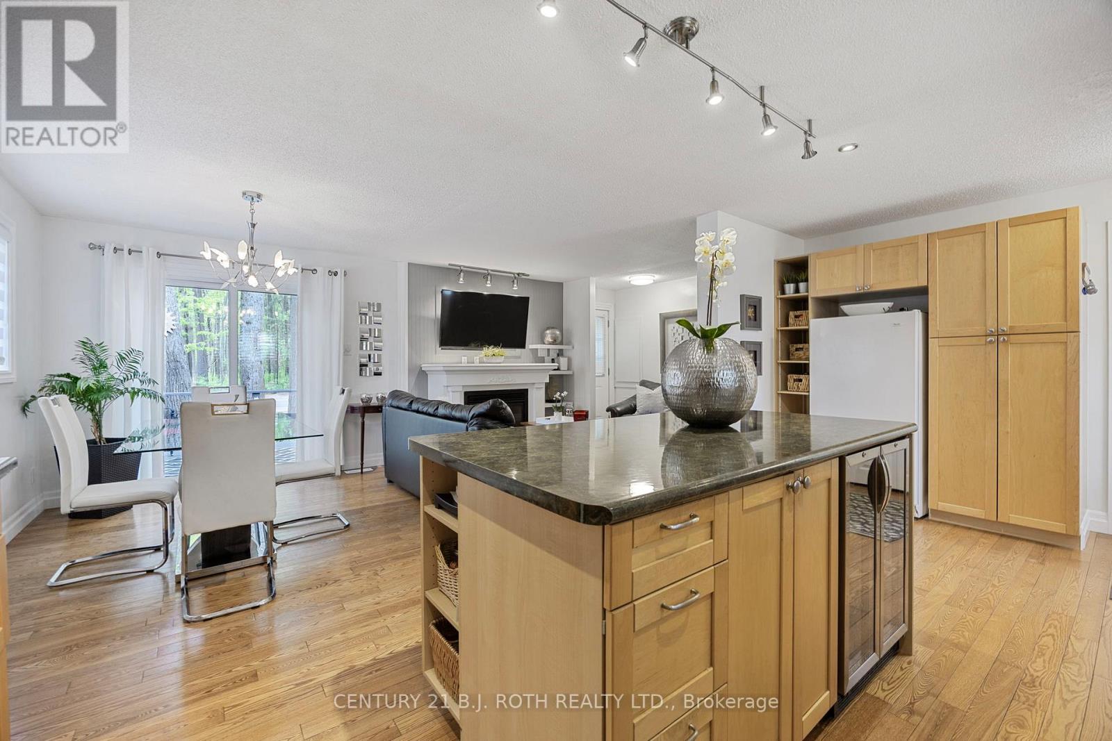 Stylishly Updated Bungalow in Sought-After 55+ Parkbridge Community - Wasaga Beach. Welcome to 10 Allen Dr N in Hometown, a desirable 55+ Parkbridge land-lease community just minutes from the beach. This bright open-concept bungalow features hardwood floors, gas fireplace, and walkout to a private deck. Modern kitchen with island, beverage fridge, and ample storage. Spacious primary with double closets and 3-pc ensuite with soaker tub. Second bedroom offers Murphy bed and built-ins. Two updated baths with glass shower. Recent upgrades include vinyl siding (2021), gas furnace (2020), newer windows & doors, gutter guards, stackable laundry, and attached garage with storage. Enjoy clubhouse, saltwater pool, 9-hole golf, and walking trails. Approx. monthly fees (new owner): Land Lease $750 | Site Tax $36.69 | Home Tax $84.84 = $871.53 (id:64974)