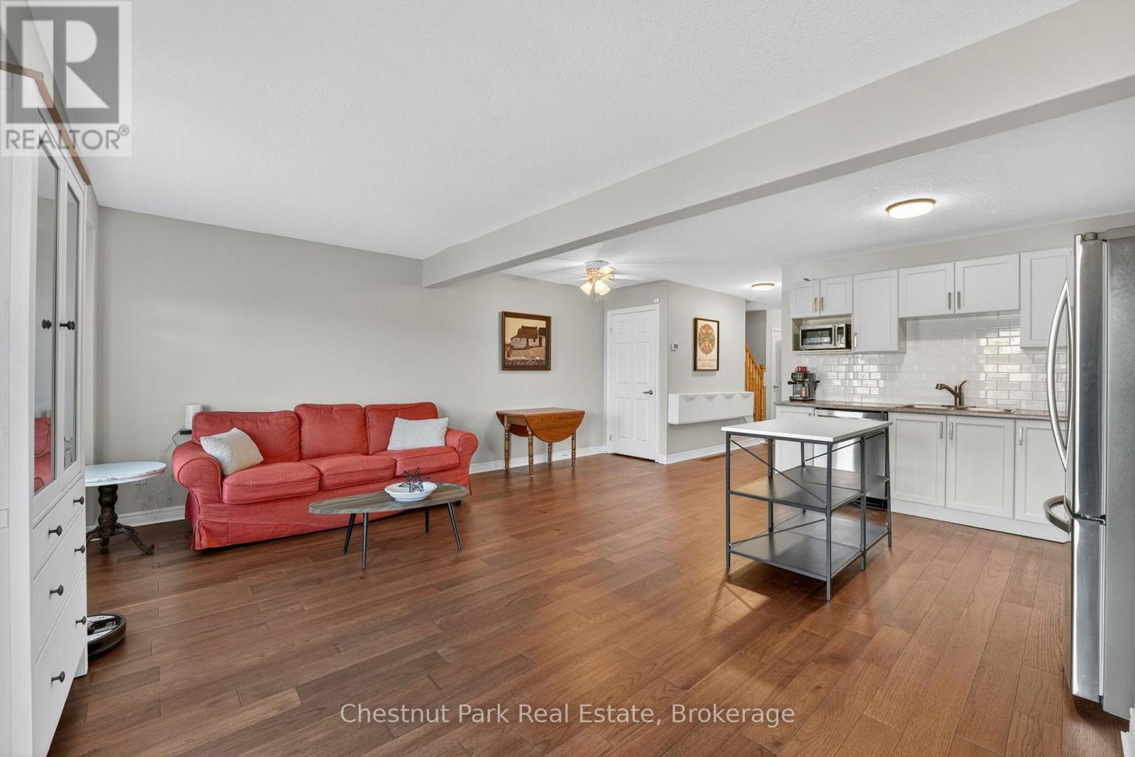 Welcome to this meticulously maintained two-storey semi-detached home in the sought-after Summit View community, built by award-winning Devonleigh Homes. This property offers a rare combination of a west-facing bright sunny fully fenced and landscaped rear yard as well as backing directly onto neighbourhood parkland. Inside, spanning 1,448 SF finished space above grade, and 2,016 SF finished including the basement, this home features a bright and inviting open-concept main floor, complete with a convenient powder room and inside entry from the attached garage-ideal for everyday living. The combo kitchen, living, dining area features tasteful hardwood floors which adds a luxurious touch to the space. Upstairs, you'll find three generously sized bedrooms, a full four-piece bathroom, and the added convenience of second-floor laundry. The fully finished basement extends your living space with a large recreation room and an additional three-piece bathroom, providing flexibility for family gatherings, a home office, or guest accommodations. Located in the desirable south end of Collingwood, this home is just minutes from schools, scenic trails, and local shops, with easy access to ski hills, beaches, and golf courses. Embrace a true four-season lifestyle in a vibrant, family-friendly community. (id:64974)