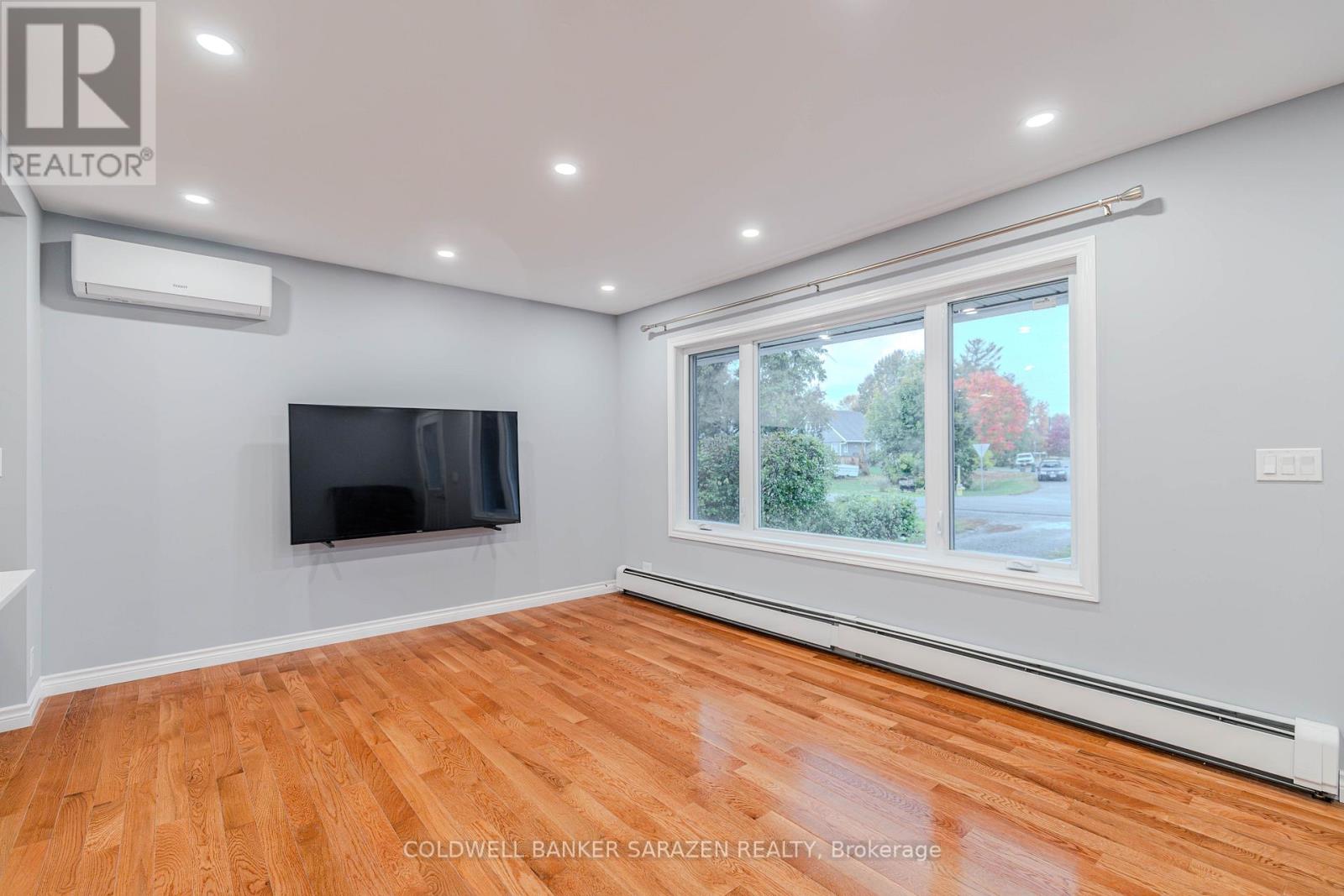 A charming 1.5-storey home that perfectly combines style, comfort, and functionality. Featuring 4 bedrooms, 3 full bathrooms, and a lower-level den, this beautifully property offers a bright and inviting layout ideal for family living.The main level showcases gleaming hardwood floors(2024),a spacious living room with a large window(2025) and custom eating table, and a chef's kitchen(2025) complete with quartz countertops, adouble sink, new stainless-steel appliances. Upstairs, enjoy spacious bedrooms and modern bathrooms with new finishes.The fully finishedbasement(2025) adds valuable living space, featuring a cozy family room with an electric fireplace, a laundry area with new washer and dryer,and a stylish stainless sink. Outside, the private backyard with mature trees and a deck(2025) offers the perfect setting for relaxation orentertaining. With fresh paint, and new mini-split A/C units, this home is move-in ready and ideally located near the Rideau River, parks, CarletonUniversity, Algonquin College, excellent schools, shopping, and dining. (id:64974)