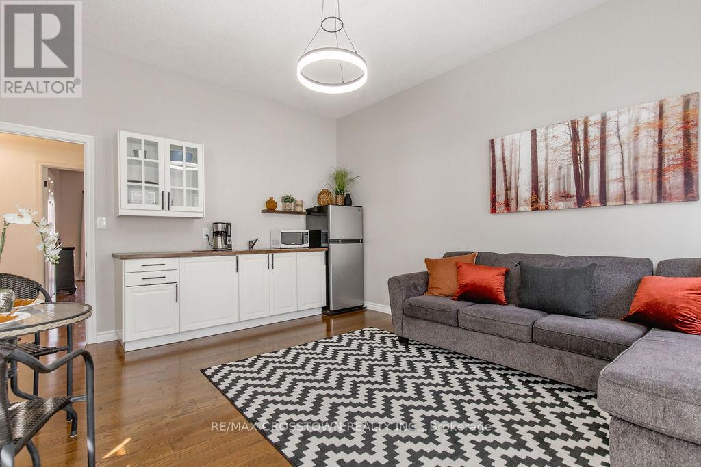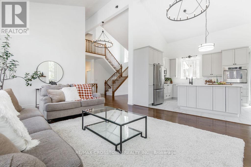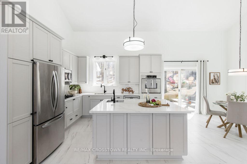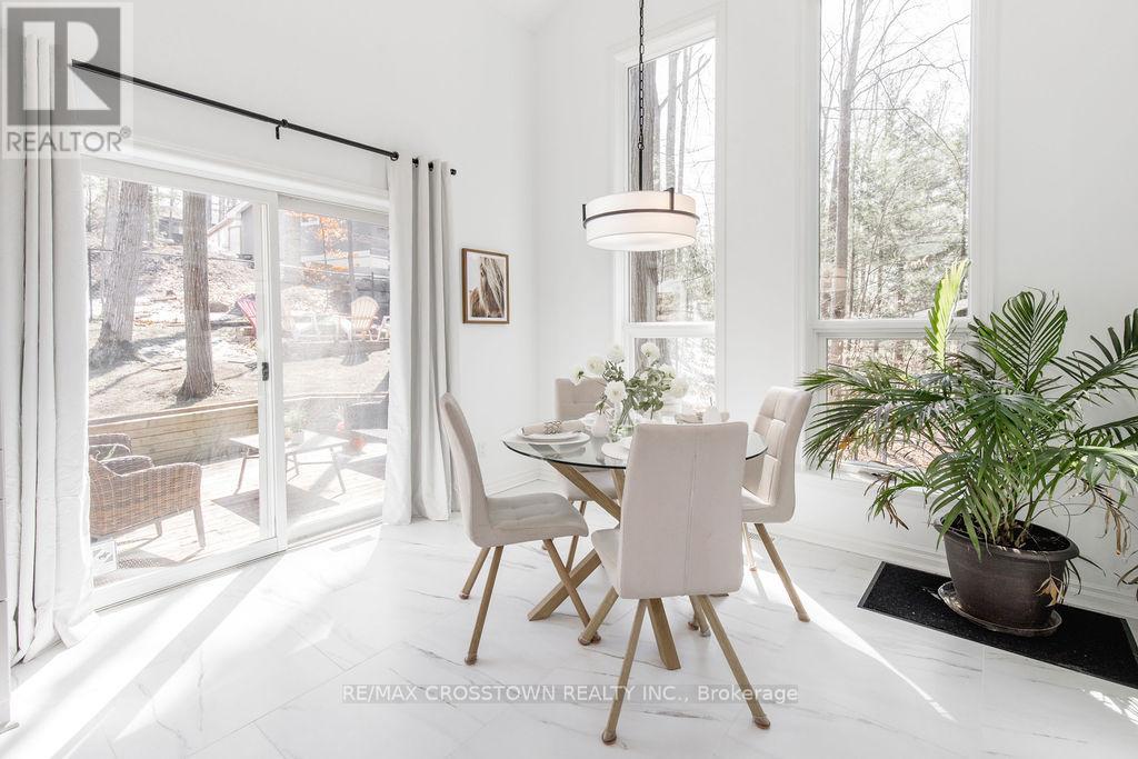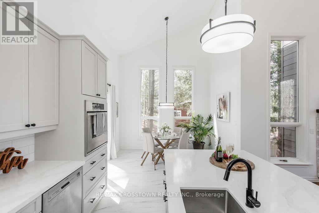 Set into the hillside in the heart of sought-after Horseshoe Valley, this beautifully updated 4-bedroom, 4-bathroom home offers over 4,300 sq ft of finished living space surrounded by nature. curb appeal galore with a long newly paved driveway, 2 car garage and composite siding. Designed to impress, the spectacular great room features soaring cathedral ceilings, rich hardwood floors, and a stunning wall of windows that brings the forest views right into your living space. The spacious, modern completely renovated eat-in kitchen is perfect for both everyday living and entertaining, while every bedroom enjoys its own walkout, seamlessly blending indoor comfort with the outdoors. Recently updated throughout, this home has been freshly painted and enhanced with all new lighting, brand new front door, and within the last 5 year new kitchen, new bathrooms, new flooring, paved driveway, new decking, new furnace, - creating a move-in-ready family home. A major highlight is the fully self-contained 730 s.f., 2-bedroom legal apartment in the lower level featuring a fireplace and 2 walkouts, perfect for multi-generational living, or income potential. The main level has the option of turning the sitting room & bedroom into separate nanny suite, with private entrance, offering incredible flexibility. Step outside to enjoy balconies, decks plus a covered 3 year old hot tub perfectly positioned to take in the peaceful, wooded surroundings. This one-of-a-kind property delivers space, style, and versatility, all the major upgrades have been done for you. located just minutes to golf, skiing, trails, spas, and the best of Horseshoe Valley living. (id:64974)
