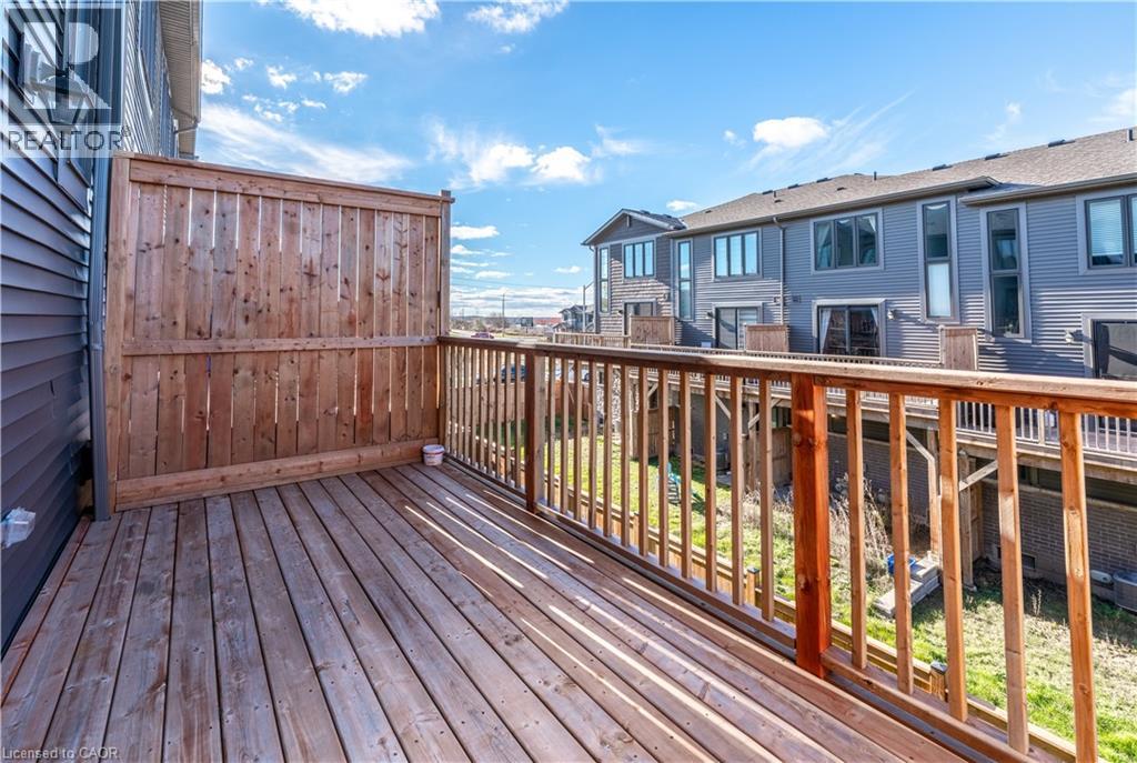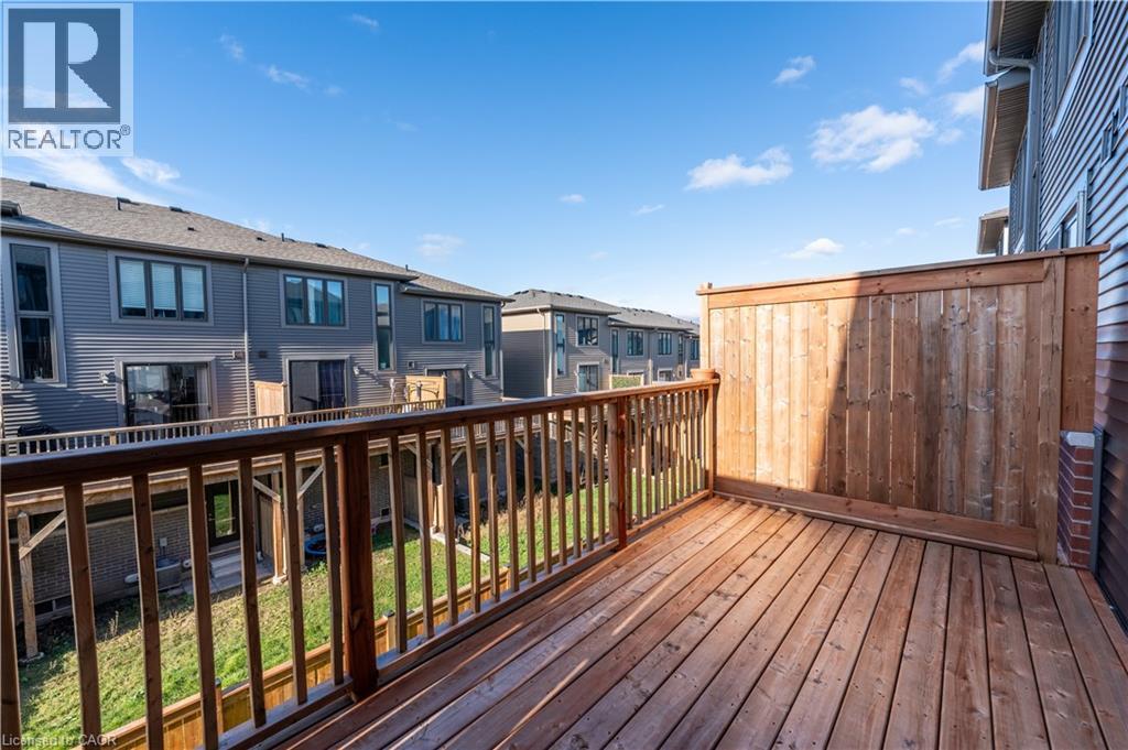 Welcome to this modern townhouse, sits in a sought-after area just south of Highway 401 and Pinebush Road, giving you quick access to everything you need. The main floor feels bright and open, with large windows, hardwood flooring, and a kitchen finished with quartz counters, a stylish backsplash, and stainless steel appliances. Step out to a spacious deck, perfect for relaxed evenings, barbecues, or hosting friends. Upstairs, you’ll find three comfortable bedrooms with good closet space and a full bathroom on the third level. You’re minutes from Conestoga College, close to parks and just a short stroll from the Smart Centre for easy shopping and everyday essentials. All utilities to be paid by the tenant including HVAC by Ener care. (id:64974)