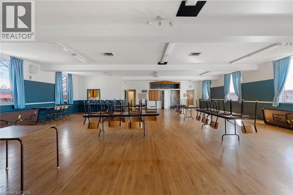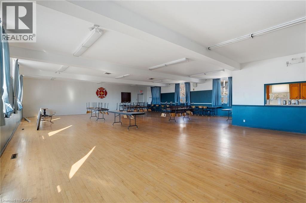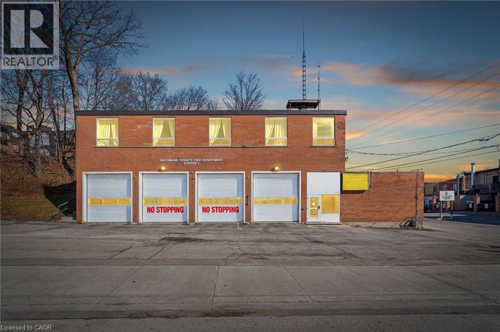 Excellent opportunity to acquire a well-known commercial building in the heart of downtown Caledonia, known as “The Fire Hall. This approximately 6,000 sq/ft building offers an impressive 198+ feet of frontage, providing strong presence and accessibility in a prime location. The main level features approximately 2,100 sq/ft of open garage/shop space with 14 ft ceilings and four 10 ft x 12 ft roll-up bay doors, making it ideal for service, workshop, storage, or many other commercial uses. Additional rooms on the main floor include separate spaces with a side entrance, offering potential for office, retail, or reception areas. The second level offers approximately 2,100 sq/ft of open hall space with hardwood floors, a kitchenette, and two bathrooms, creating a versatile space suitable for studio, office, event, or recreational uses. This level also features beautiful views overlooking the Grand River, adding to the unique appeal of the building. Located in a prime downtown setting, the property benefits from public parking directly across the street and strong visibility within the community. A long-standing staple in Caledonia, this building presents a rare opportunity for investors or end users seeking a versatile commercial property with character and long-term potential. (id:64974)