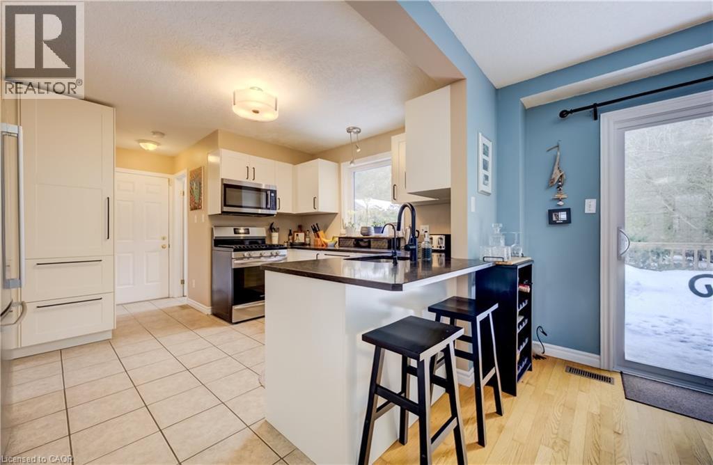 Welcome to this bright and inviting 2-storey home tucked away on a quiet, family-friendly street in the heart of Elora. Step inside to a warm and welcoming open-concept living and dining space, complemented by an updated kitchen and a sun-filled dinette with walkout to the deck — perfect for everyday living and easy entertaining. Step outside to an impressive 194-ft deep backyard offering plenty of space to relax, play, or garden. Mature trees and thoughtful landscaping create a peaceful outdoor setting that feels like your own private retreat. Upstairs features three comfortable bedrooms and a 4-piece bathroom, while the finished basement adds even more versatility with a cozy family room, dedicated office space, and a 3-piece bath — ideal for growing families or those working from home. Located just steps from nearby trails, a playground, and a soccer field, this home offers a fantastic setting for active families and outdoor enthusiasts. Turn-key and ready for its next owners by the end of March. Contact today to book your private showing. (id:64974)