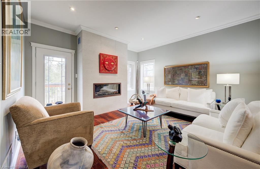 This stunning custom built end unit condo is strategically situated to offer maximum privacy. Step into luxury as you step inside and scan the open concept main level, featuring satiny Brazilian cherry floors and rich custom kitchen cabinetry. Certainly, the main feature is the handsome top of the line fireplace, specifically designed to deliver warmth evenly and with comfort...even if you're relaxing in close proximity. An oversized upper deck is easily accessed from living room. Every attention to detail has been prioritized throuhout this sumptuous home. The spacious primary bedroom features a custom split section window that opens from bottom to allow those fresh spring breezes without disturbing window coverings. Furthermore this primary bedroom adjoins a beautiful bathroom with large stand up shower and ensuite laundry. There is a second bedroom with it's own 2 pc ensuite and also a den with floor to ceiling corner windows (make a great home office) Are you interested in an in-law suite?? the lowr level could easily adapt..with a large rec room/family room, complete with fireplace and ground level walkout to patio, it's perfect for family gatherings and barbeques. On this level is a second fully equippped kitchen plus 2 more bedrooms, full bathroom and in suite laundry. There is a 2 pc bath for the 2nd bedroom. Enjoy this totally finished lower level yourself or for that inlaw suite you've been thinking of... Finally, in keeping with the well thought out design there are extra large windows to allow maximum natural light and walkouts on both levels. This one owner home is being offered for first time and and won't last long. Parking for 3 cars plus street parking, new windows 2018, recently replaced roof shingles and furnace has been well maintained. (Permits and maintenance records are available) (id:64974)