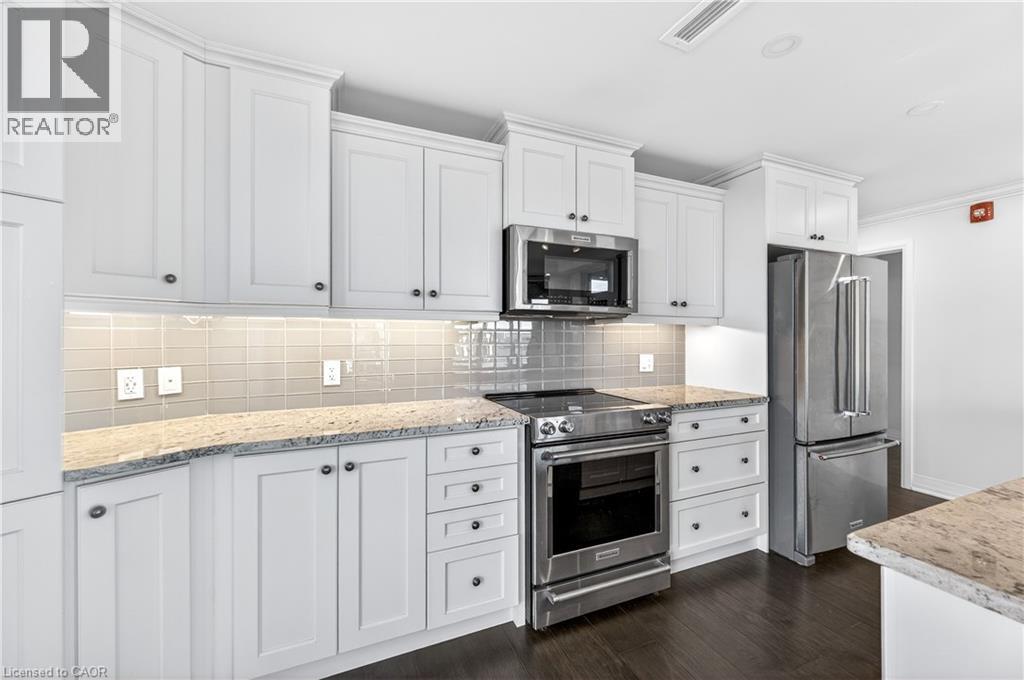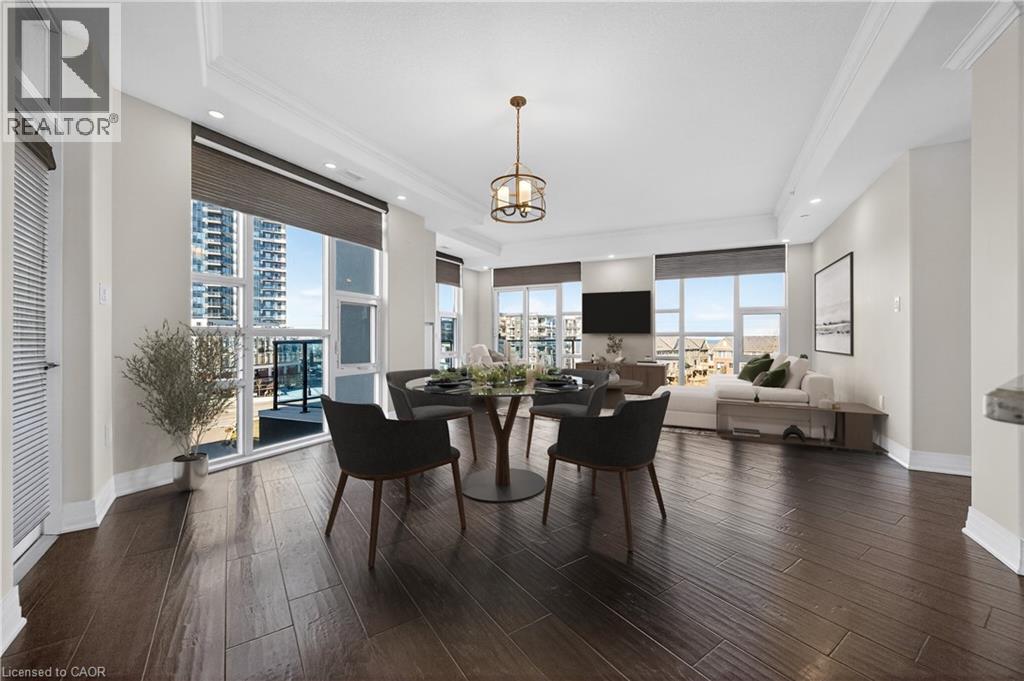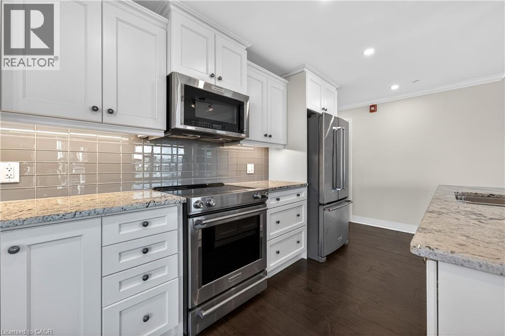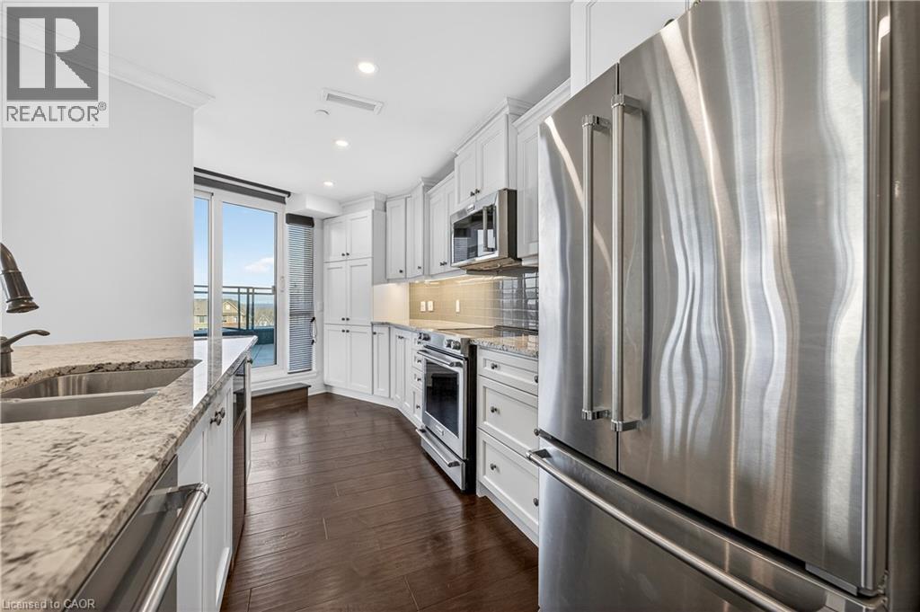 LUXURIOUS APARTMENT CONDO LOCATED IN MODERN BUILDING IN GRIMSBY ON THE LAKE!! Spacious corner unit offering approximately 1500 sqft with floor to ceiling, wall to wall windows, providing spectacular views of the lake and Toronto skyline. Open concept design with spacious foyer, hardwood floors, crown mouldings and recessed lighting. 3 underground parking spaces. Gourmet kitchen, large island, abundant cabinetry, granite counters and stainless-steel appliances. Enjoy the two separate balconies plus the expansive terrace offering a great space for relaxation and taking in the Lake views. The elegant primary bedroom suite has 2 walk-in closets, luxurious ensuite bath with jetted tub and glass doors to the terrace. Second bedroom with full ensuite bath, walk-in closet. OTHER FEATURES INCLUDE: Newer secured building, 2.5 baths with granite counters, in-suite laundry with washer & dryer, central air, custom window treatments, hardwood floors, wine cooler, kitchen appliances. Condo amenities include party room, roof top lounge, workout facilities, meeting room, car wash station, private locker, ample visitor parking. Quality finishes throughout this unit. Steps to waterfront trail, beach, fine dining and shopping and less than 10 minutes to wineries. Carefree living at its best awaits you. A must see! (id:64974)