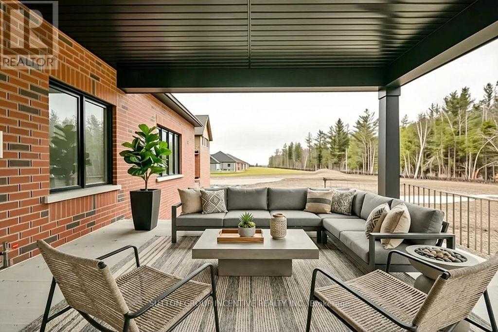 Welcome to Anten Mills Estates! This exceptional 1,915 sq. ft. bungalow offers immediate occupancy on a premium 100' x 213' lot backing onto environmentally protected land, providing privacy and a picturesque natural setting. Featuring a large 3-car garage, this home combines functionality with upscale living.The spacious, open-concept layout is highlighted by a large kitchen with abundant cabinetry, ideal for both everyday living and entertaining. The inviting family room opens onto a covered porch, perfect for enjoying the peaceful surroundings year-round.This thoughtfully designed home offers 2 bedrooms, including a generous primary suite complete with a walk-in closet and a large ensuite bath featuring an oversized shower.The basement is ready for development, with a bedroom and bathroom already framed-offering excellent potential for additional living space tailored to your needs.A fantastic opportunity to own a quality-built home in a sought-after community just minutes from Barrie and commuter routes. Home is covered under Tarion. NOTE: LISTING PRICE IS INCLUSIVE OF HST TAX REBATE. (id:64974)