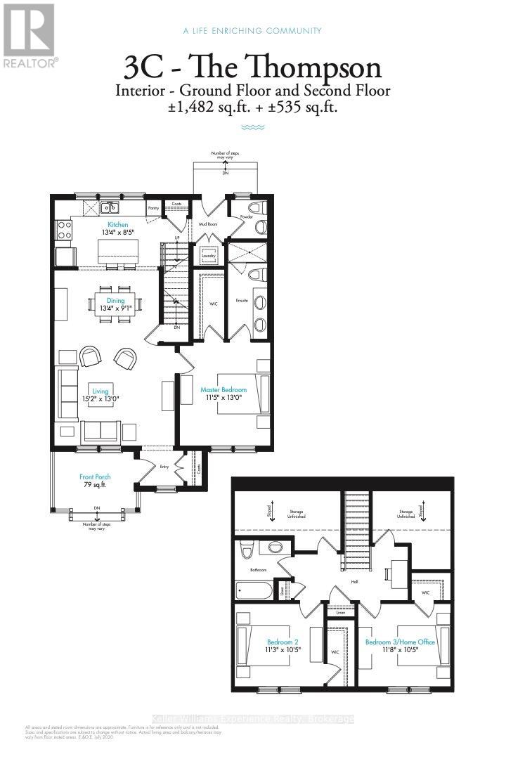 Welcome to this well-designed 3-bedroom townhouse offering the convenience of a main-floor primary suite and flexible space throughout. The open-concept main level features a bright living and dining area flowing into the kitchen with upgraded gas stove, fridge with water dispenser and custom shutters and cascade blinds. The primary bedroom includes a walk-in closet and private ensuite, along with main-floor laundry and a powder room for added ease. Upstairs offers two additional bedrooms, a full bath, and two oversized bonus rooms ideal for storage, office, or hobby space. The full unfinished basement with bathroom rough-ins provides excellent future potential. Enjoy front and rear patio areas, plus two private side-by-side parking spaces. Located minutes from Little Lake and Georgian Bay, and close to shopping, dining, trails, hospital, and more, this low-maintenance condo lifestyle includes exterior upkeep, snow removal, and grass cutting - perfect for downsizers seeking comfort and convenience. (id:64974)