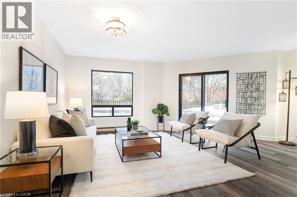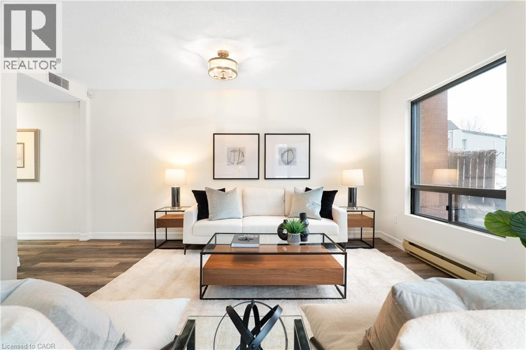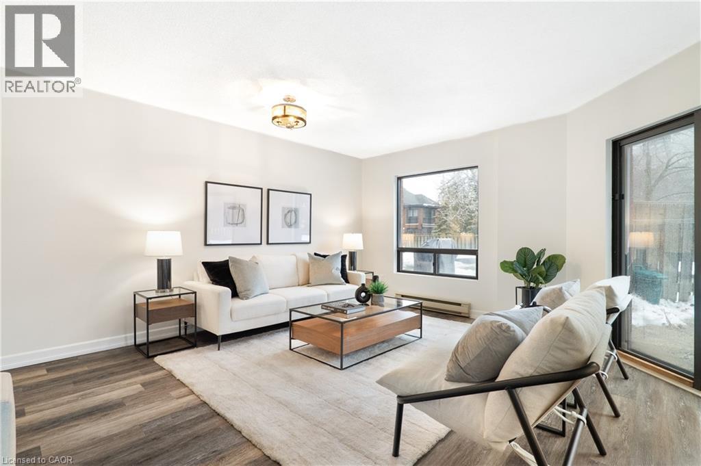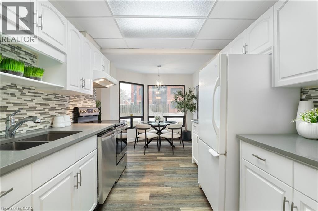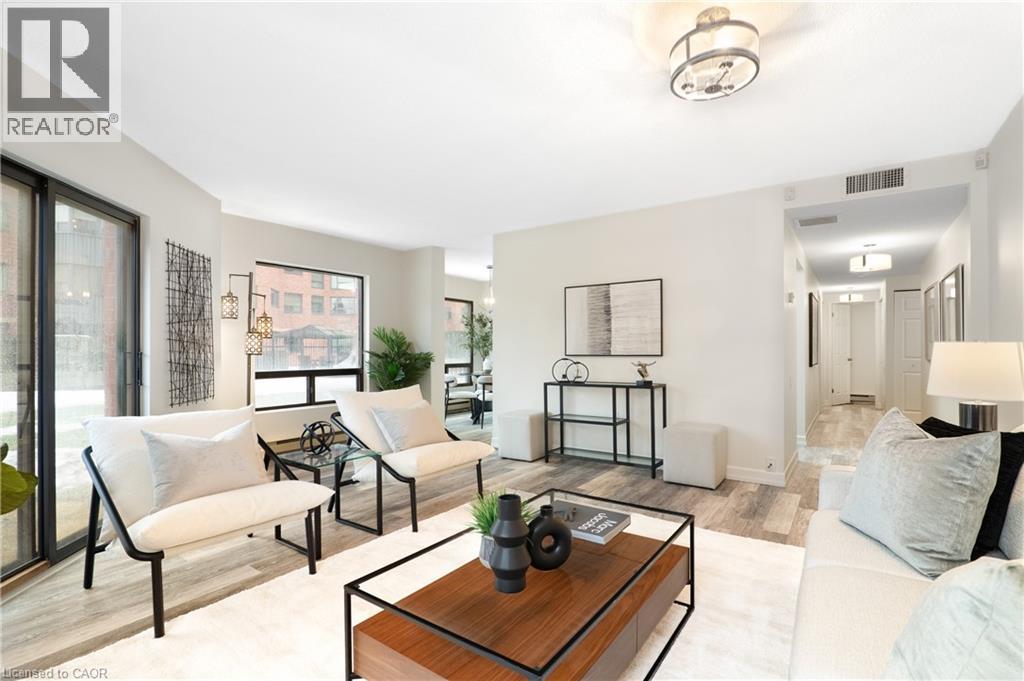 Welcome to Unit 107 at 10 Ellen Street East. What if you could live steps from the core — without sacrificing space, storage, or comfort? Here, you get a ground-floor walkout patio, functional living space, real storage, and a layout that just makes daily life smoother. Check out the TOP 6 reasons this one stands out. #6: DOWNTOWN LIVING: You’re truly connected here. Steps from Centre in the Square, the Kitchener-Waterloo Art Gallery, Kitchener Public Library, Kitchener's Farmers Market, cafés and the LRT - it’s everyday convenience, right in the core. #5: BUILDING AMENITIES: Enjoy access to a fitness room and party space — without ever leaving the building. The private, oversized storage room is about the size of a small bedroom or office - a rare asset for condo living. #4: A LAYOUT THAT WORKS: Ground-floor living means almost no elevators. Patio doors open directly to the private patio and shared green space — a meaningful advantage for pet owners or anyone who values quick outdoor access. The only time you’ll need to use the elevator is to access the private storage room or the underground parking space. Inside, the carpet-free living and dining areas are filled with natural light from large windows. The layout is efficient, comfortable, and easy to live in. #3: EAT-IN KITCHEN: The bright eat-in kitchen offers ample cabinetry and prep space, with quartz countertops, mosaic backsplash, a double stainless-steel sink, and an adjacent dinette perfect for everyday meals. #2: BEDS & BATH: Enjoy 2 generous bedrooms. The primary features a walk-in closet and privilege 5-piece ensuite with double sinks and a shower/tub combo. #1: LAUNDRY & PARKING: In-suite laundry and underground parking — no shared machines, no scraping ice in the winter. Just easy, secure everyday living. (id:64974)