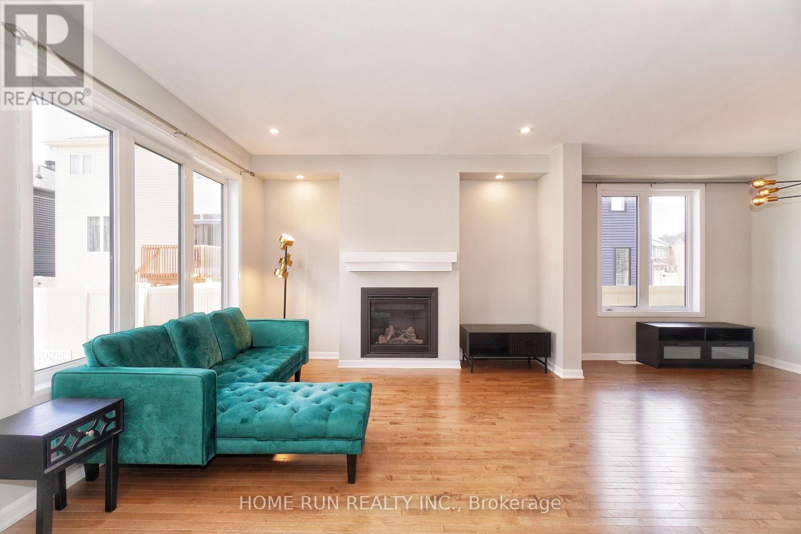 Stunning single detached home in the sought-after Arcadia community of Kanata Lakes. In like-new condition, this property features extensive upgrades throughout-completely turnkey and move-in ready. The charming exterior includes a covered front porch that sets a warm and welcoming tone. Inside, the sun-filled main floor offers a spacious foyer and an open-concept layout that flows seamlessly from the dining area to the bright living room, complete with large windows and a cozy fireplace-perfect for everyday living and entertaining. The upgraded kitchen is a chef's dream, featuring rich wood cabinetry, quartz countertops, stainless steel appliances, and a large center island with a breakfast bar. Beautiful hardwood stairs lead to the upper level, where hardwood flooring continues throughout the hallway. The spacious primary suite includes a large walk-in closet and a beautifully appointed 4-piece ensuite. The upper level also offers two additional bedrooms, a second 4-piece full bathroom-both bathrooms with quartz countertops-and a convenient laundry room. The basement provides excellent potential for storage or future development. Step outside to a fully PVC-fenced backyard-low-maintenance and private. This home is surrounded by top-ranking schools including Earl of March Secondary School, All Saints High School, and Kanata Highlands Public School. Located just minutes from Kanata's high-tech hub, Centrum shopping, Costco, Tanger Outlets, the Canadian Tire Centre, Highway 417, public transit, parks, and trails. Walk to Paine Pond, nearby parks, and tennis courts just 300m away. An exceptional opportunity in one of Kanata's most desirable neighborhoods-perfect for professionals, young families, or first-time buyers seeking style, comfort, and convenience.. (id:64974)