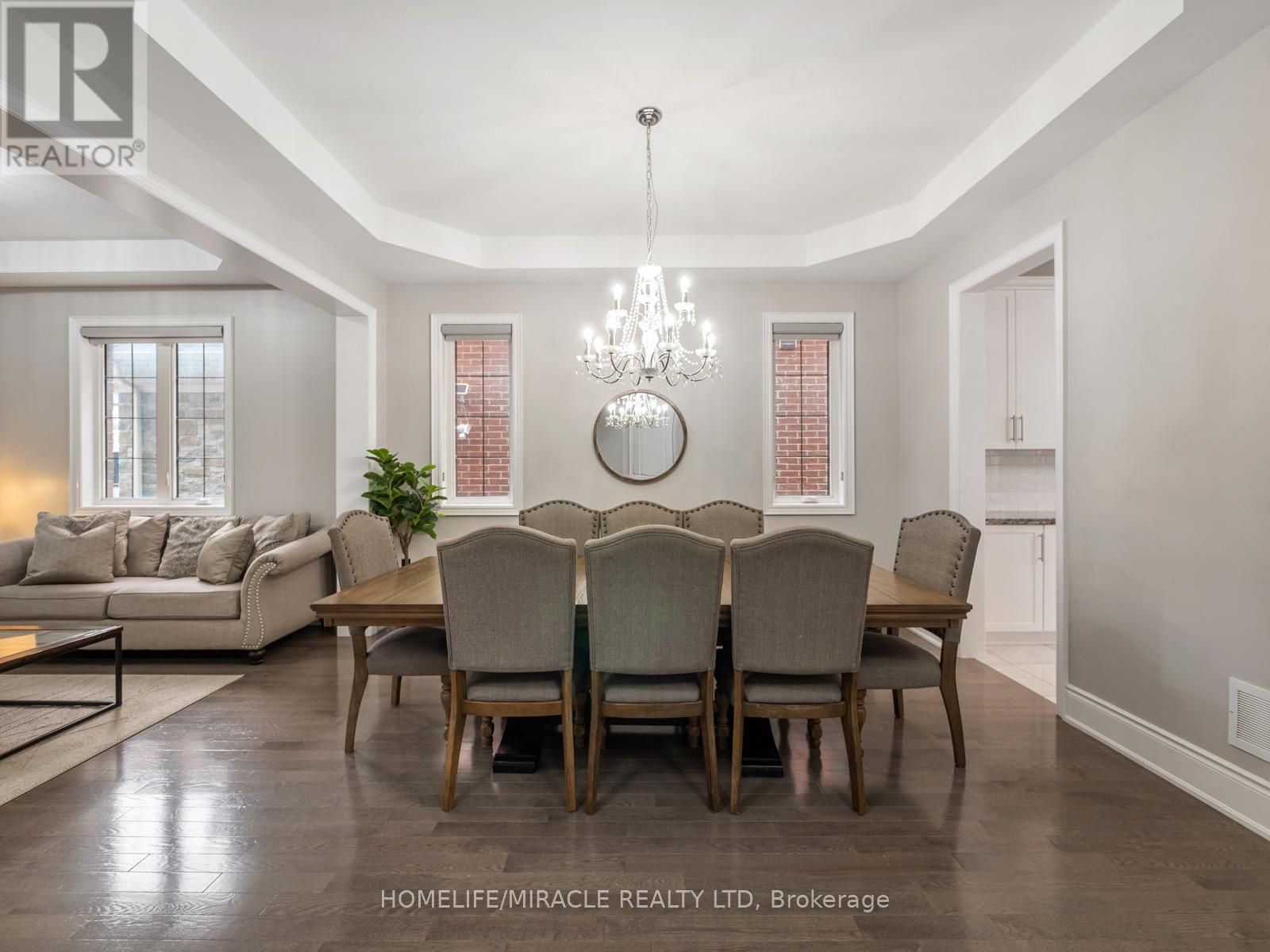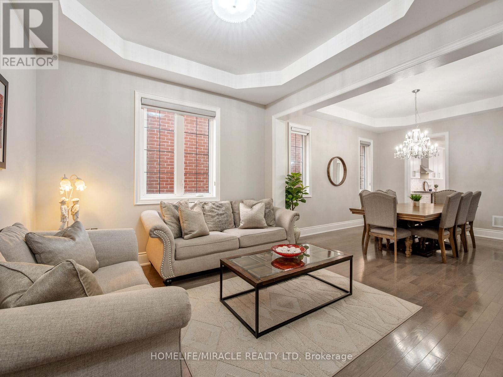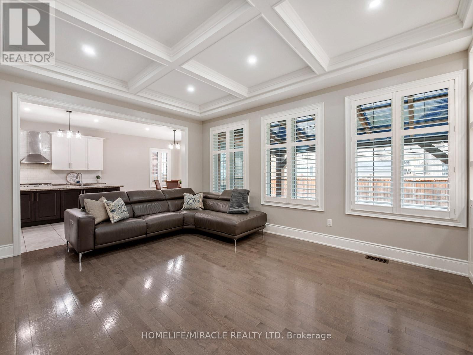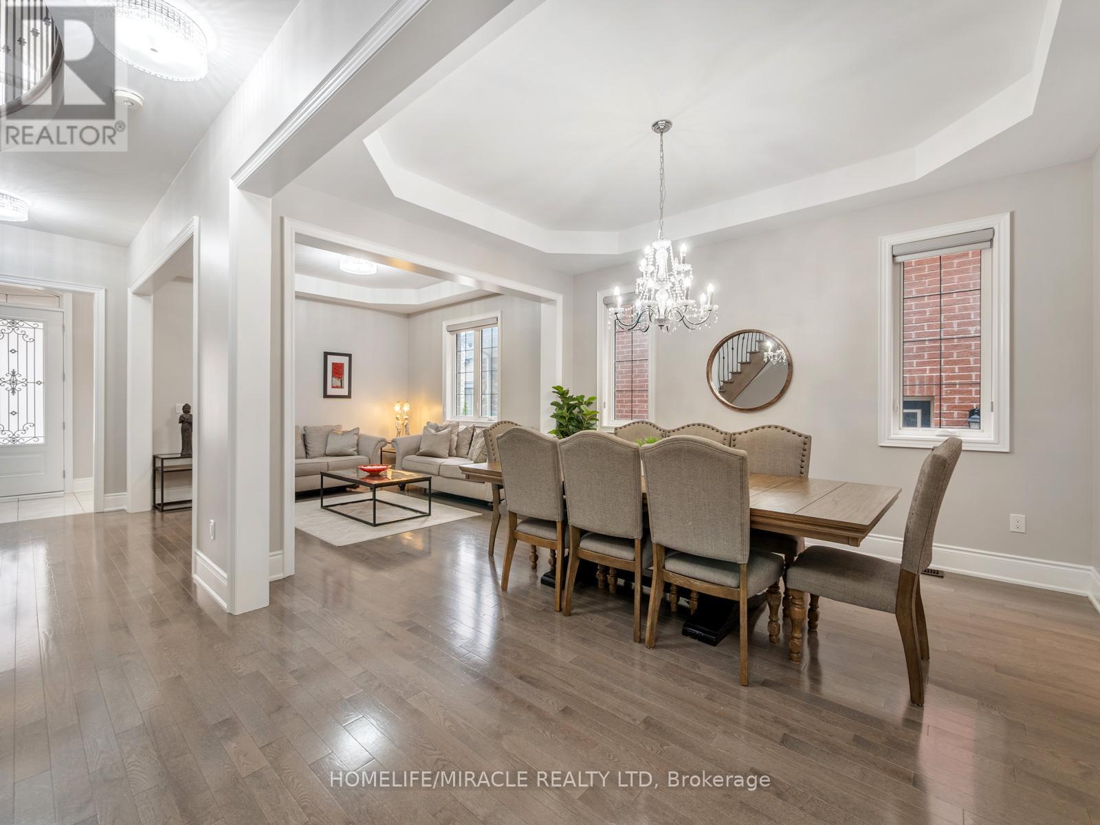 Welcome to luxury living at its finest in this stunning Brampton residence, ideally situated on a quiet, family-friendly crescent and offering approximately 6,000 sq ft of beautifully finished living space designed for both elegance and functionality; this exceptional home features 4 spacious bedrooms and 5 luxurious washrooms, with hardwood flooring throughout and high-end finishes that elevate every room, while the bright, open-concept main living areas are perfect for both everyday living and entertaining; the fully finished basement is a standout, complete with a private theater room, modern kitchen, and fully equipped gym, creating the ultimate in-home lifestyle experience; outside, enjoy professionally landscaped grounds with premium interlocking in both the front and backyard, complemented by sleek glass railings that enhance the home's contemporary curb appeal; additional highlights include a 3-car tandem garage with parking for 4 more vehicles in the driveway (7 total parking spaces), a central vacuum system, and all brand-new appliances under warranty, making this a rare turnkey opportunity in one of Brampton's most desirable neighborhoods. (id:64974)