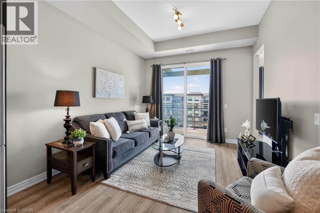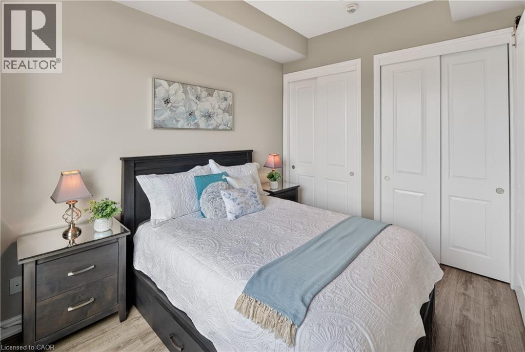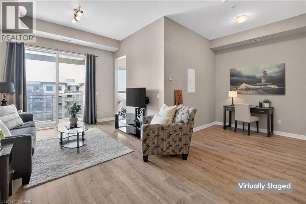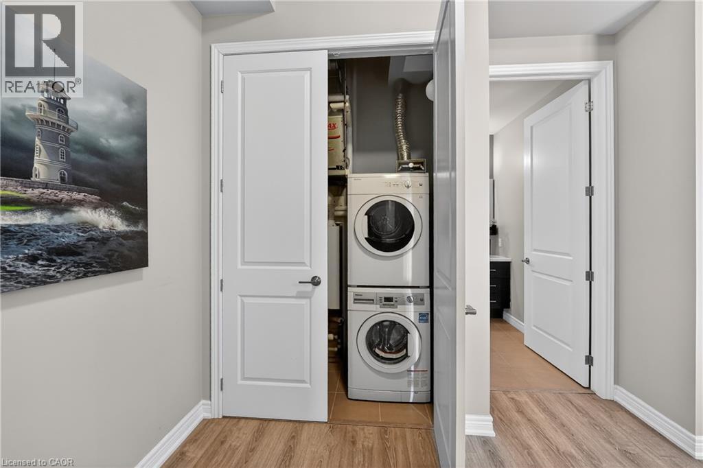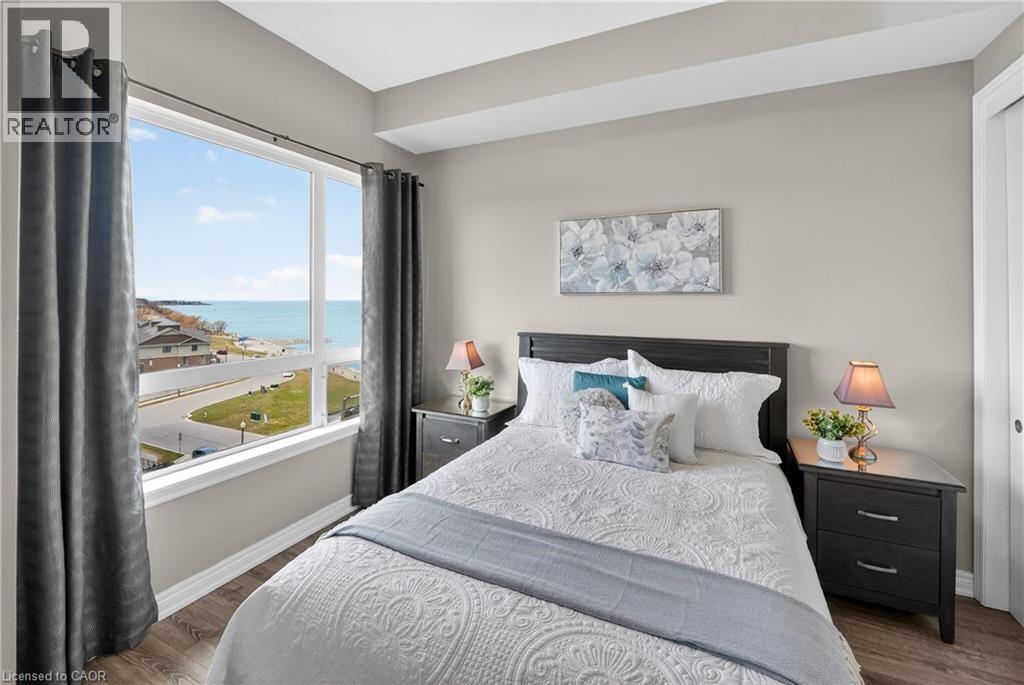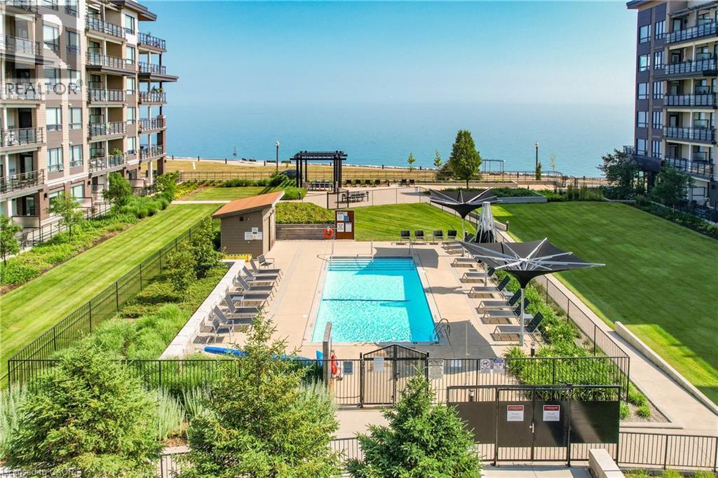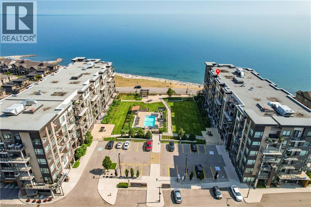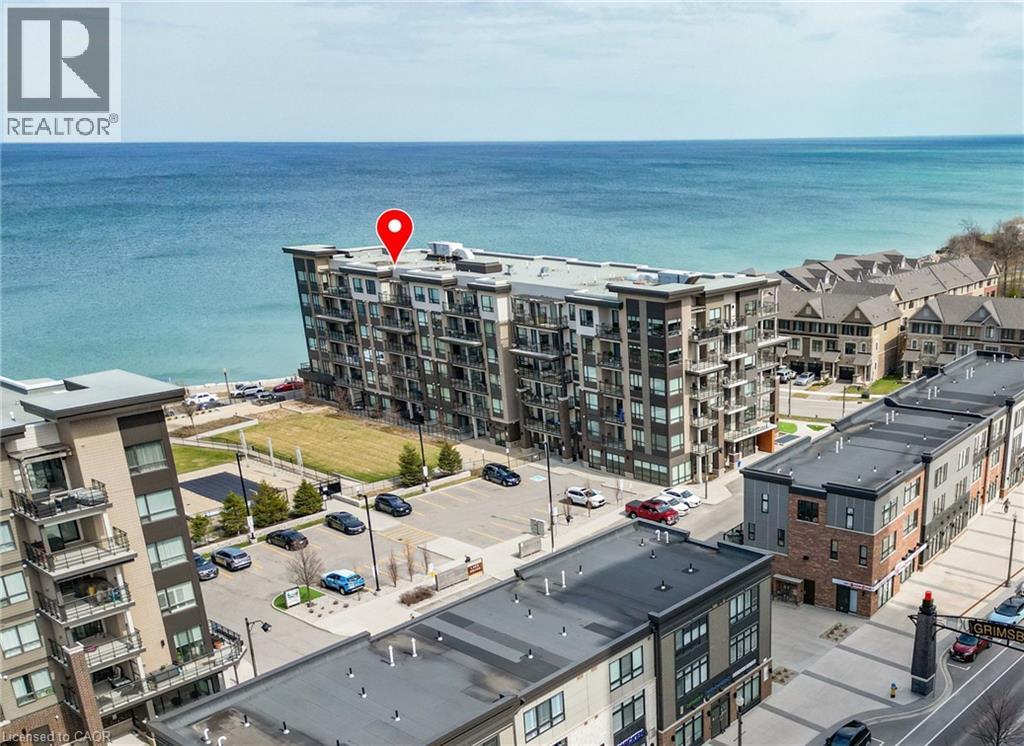 ELEGANT PENTHOUSE LIVING … Perched on the top floor, this stunning LAKESIDE CONDO at 602-10 Esplanade Place captures the essence of effortless, CAREFREE, WATERFRONT living in the heart of Grimsby. With 10’ ceilings and an abundance of natural light, this thoughtfully designed 1-bedroom PLUS DEN layout offers both comfort & style complemented by a 65 sq ft PRIVATE BALCONY showcasing breathtaking POOL & LAKE VIEWS. The open-concept living space is finished with sleek vinyl flooring and anchored by a modern kitchen featuring built-in appliances, QUARTZ countertops, tile backsplash, under-cabinet lighting, and potlights - creating a clean, contemporary feel ideal for everyday living or entertaining. The spacious primary bedroom is complete with double closets and LAKE VIEWS, while the versatile den offers flexibility for a home office or guest space. Convenience is key with IN-SUITE STACKABLE LAUNDRY, a well-appointed 4-pc bath, and ample storage solutions including locker (#198) and dedicated underground bike storage. Parking is a breeze with an UNDERGROUND SPACE (#128). Beyond the unit, residents enjoy access to a FULL SUITE OF AMENITIES, including a fitness centre, dog wash, party room, pool, PLUS VISITOR PARKING - enhancing the lifestyle experience this building has to offer. Set just steps from the waterfront, scenic trails, Grimsby Public Beach, and a vibrant mix of boutique shops & restaurants, this location balances relaxation with everyday convenience. With highway access just one minute away, commuting is seamless while still enjoying the charm of LAKESIDE LIVING. A rare opportunity to own a penthouse-level suite in one of Grimsby’s most desirable waterfront communities. CLICK ON MULTIMEDIA for virtual tour, floor plans, drone photos & more. (id:64974)