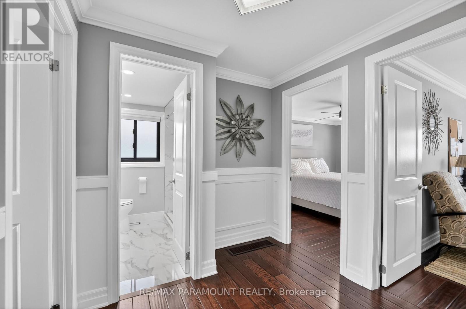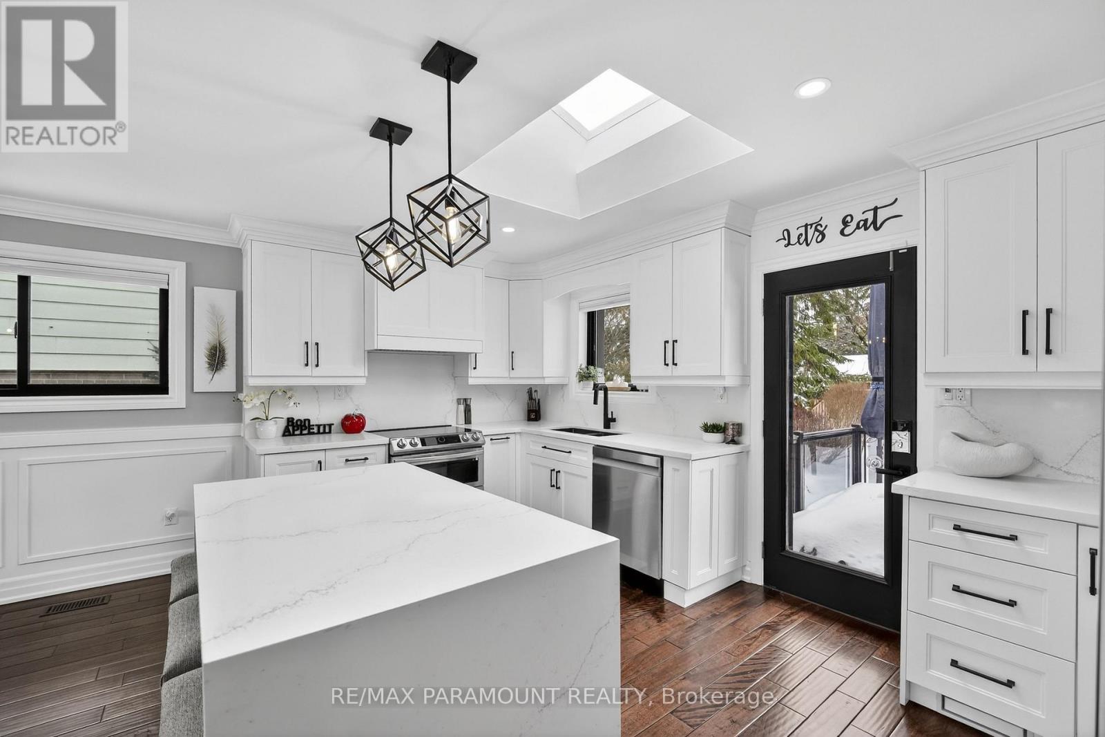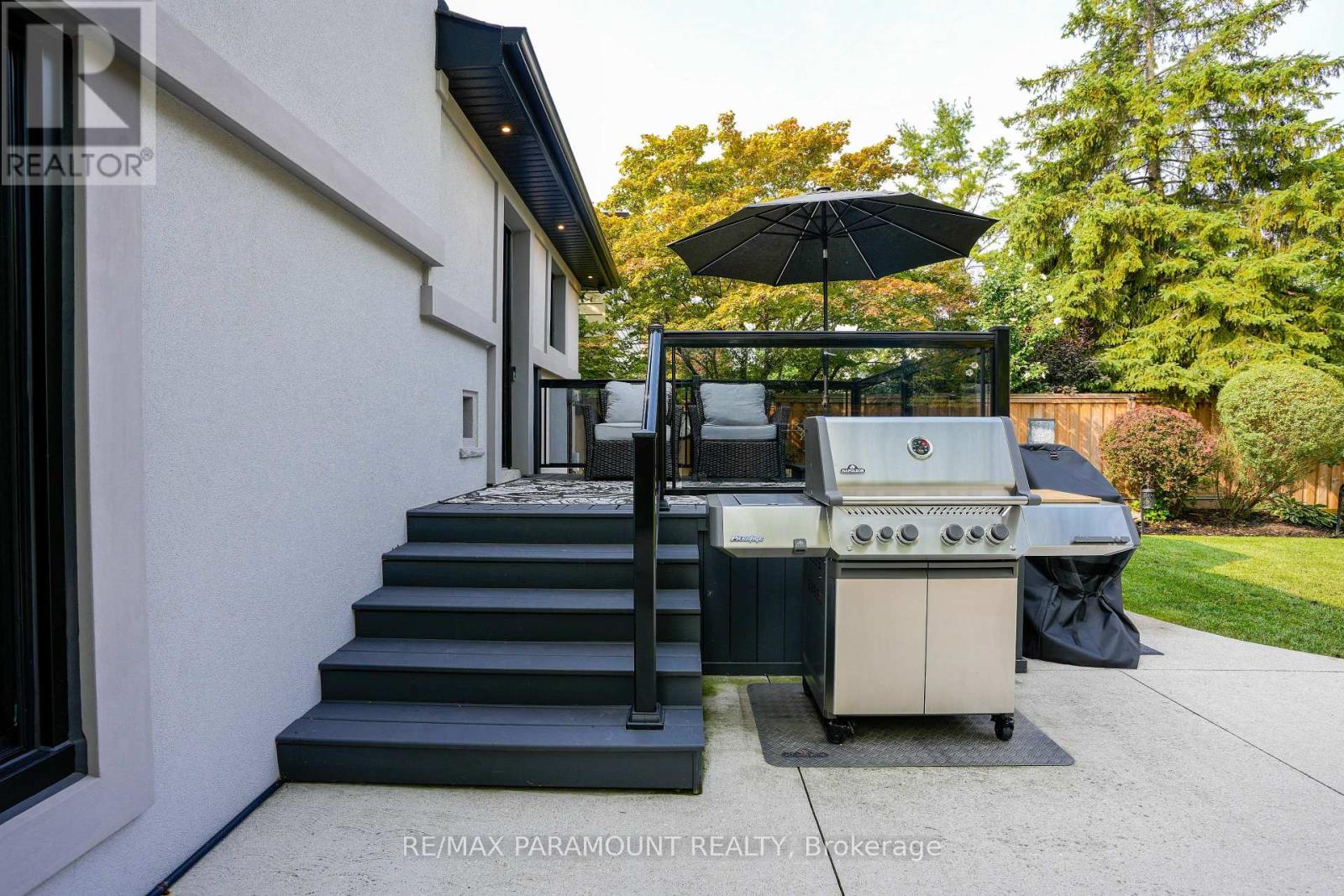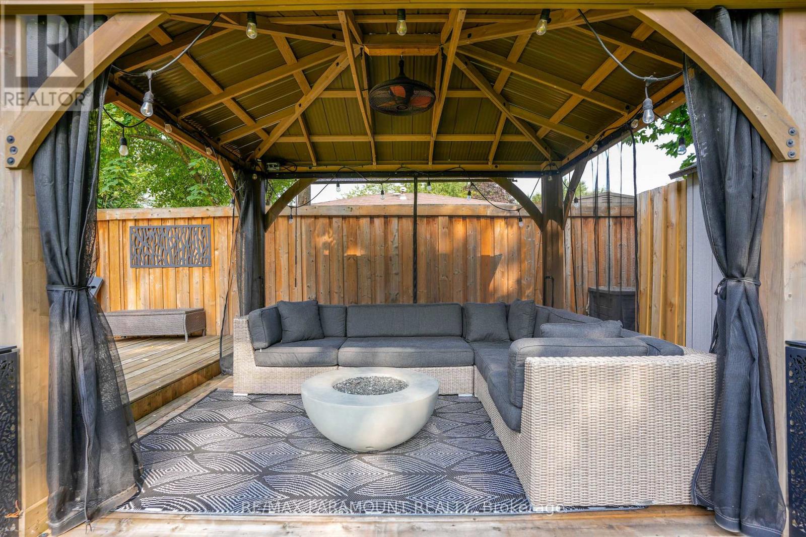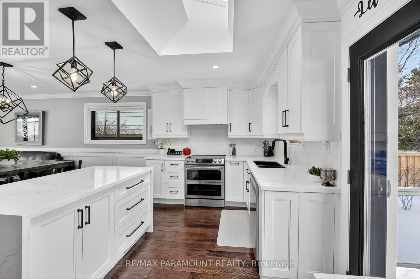 A True Showstopper! Extensively renovated with premium luxury finishes, This stunning 4-Level Side-Split Detached home is situated on 50 x110 Ft lot (Total 1800+ SF Incl. BSMT) offering exceptional space, comfort & modern living Inside & Out.Nestled in a quiet, highly desirable family-friendly neighborhood of Peel Village.Step inside to experience thoughtful design and quality craftsmanship throughout.The ground level welcomes you with a spacious bedroom featuring a private ensuite bathroom, along with a separate powder room-perfect for guests,in-laws, or multi-generational living.The open-concept main floor showcases a sun-filled living room highlighted by a huge picture window, creating a warm and inviting atmosphere.The beautifully upgraded eat-in kitchen features with brand-new stainless steel appliances, under-mount lighting, modern cabinetry, sky light and premium finishes,with a seamless walk-out to a large deck.The upper level offers three generously sized bedrooms and two fully renovated bathrooms, including a relaxing primary bedroom with a private 4-piece ensuite.Fully finished basement provides a huge recreational area, along with a dedicated laundry room, storage, and excellent future potential.Finished 1 Car Garage with epoxy flooring & screen doors.Driveway W/Total 5 Parking Spaces. Outside, enjoy Backyards Oasis with professionally designed two decks(one with glass railings), Storage Shed, complemented by a well maintained front and backyard with beautiful landscaping and In-Ground Sprinkler System for your convenance, Backyard & Soffit Potlights, adding incredible curb appeal day & night. Minutes away from to schools, parks, transit, GO Station & highways, convenience truly meets lifestyle here.Don't Miss This Rare Opportunity -Fall In Love The Moment You Walk In.*EXTRAS* Kitchen, Bathrooms, BSMT & Laundry Room Upgrades, All Appliances, Washer & Dryer, All New Windows By Anderson, Custom Hunter Douglas Blinds-All in 2022.OPEN HOUSE- SAT 2PM To 4 PM (id:64974)
