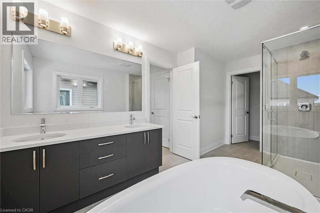 Move in Ready Brand New Home! No waiting you can move in now! The Valerie T design boats 2,365 sq ft 4 bedroom 2 1/2 bath, double car garage in the premium Doon South community, minutes from Hwy 401, parks, nature walks, shopping, schools, transit & more. Beautifully designed with quality finishes by the builders design team. Main floor is carpet free, features an open concept living area, 9 ft ceilings, large custom eat-in kitchen w/quarts counters & 6’ patio doors. Spacious living room / dining room & powder room conveniently located in the front hall. Large mudroom at the entrance to the garage with an oversized walk-in closet. Second Floor features 4 bedrooms & 2 full baths. Main bath includes a his & her's sinks w/quarts counters, separate toilet & tub/shower combo. Primary suite includes a large walk in closet & a Luxury Ensuite complete w/standalone soaker tub & walk-in tile shower w/glass enclosure, double sink vanity & quartz counters. Unfinished basement includes a higher ceiling 9ft (finished height 8' 7) & rough-in for future 3pc bath. Enjoy the benefits and energy savings of a NetZero Ready Home. A quieter, healthier living! Book your showing & bring us an offer today! (id:64974)
