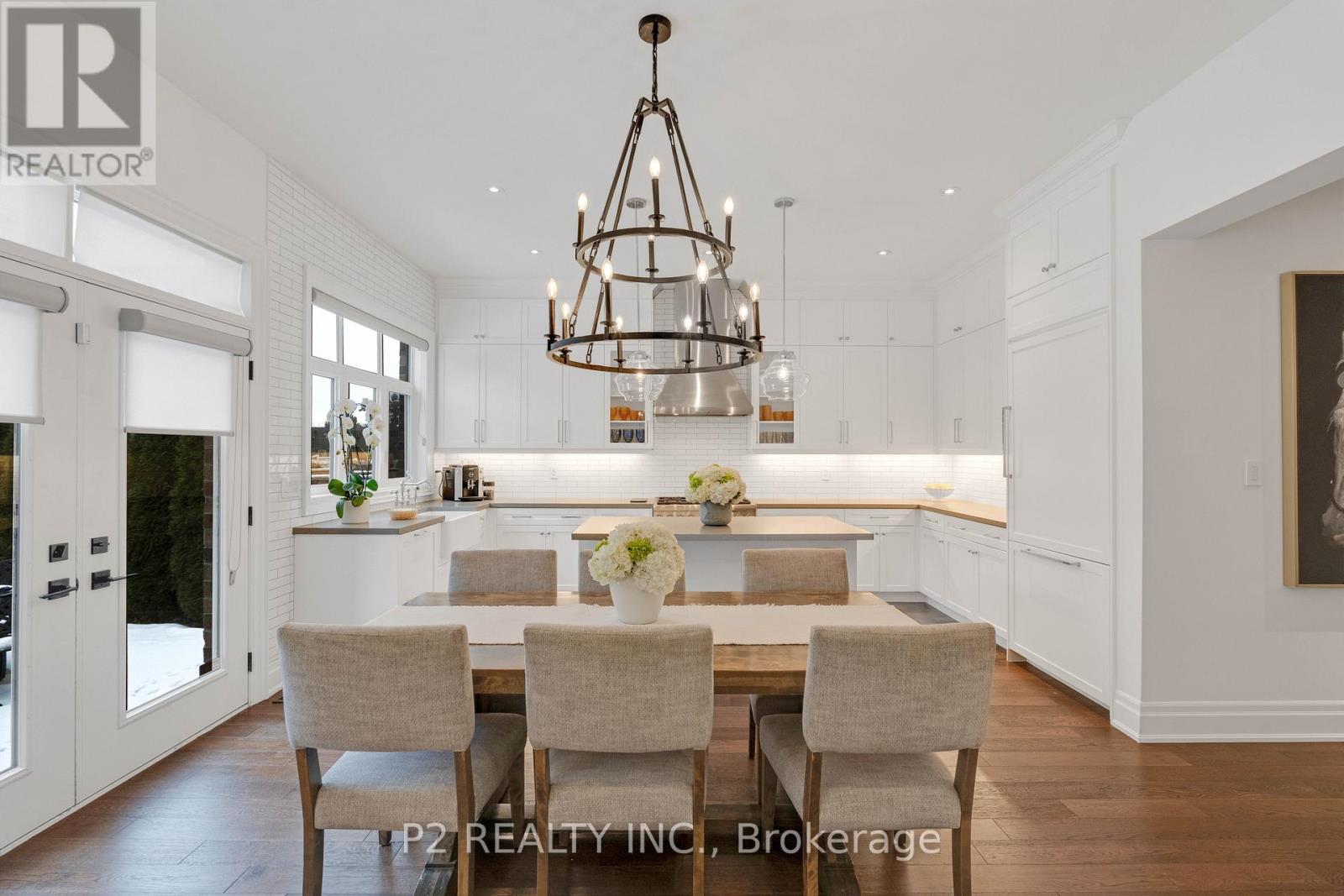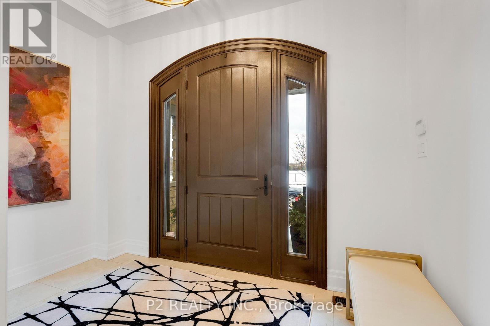Stunning stone & brick home in the heart of King City offering over 4,000 sq ft of finished luxury living space. Over $250,000 in upgrades Featuring 5 bedrooms, 6 bathrooms, 10 ft ceilings on the main, 9 ft on the second and basement, 8 ft interior doors, 24 x 24 porcelain tiles on main, 5" wire-brushed hardwood flooring on main and second, crown moulding, wainscoting, and designer lighting throughout. Modern custom kitchen with extended uppers, farmers sink, and premium Thermador appliances. Spacious living area with floor-to-ceiling marble gas fireplace. Main floor office with double french glass doors. All bedrooms include their own upgraded bathrooms with quartz counters, 12x24 tiles, and frameless glass doors. Primary suite features a freestanding tub, double vanity, and frameless glass shower. Professionally landscaped front & back yard with gas BBQ hookup, outdoor landscape lighting, and 2 EV plugs in garage. Finished basement includes a fitness room, large recreation area, Great room with electric fireplace, storage rooms, cantina, and 3-pc bath. Additional features include custom closet organizers, upgraded window coverings, second-floor laundry, solid 3-lock fiberglass main door, and 200-amp electrical panel. Premium lot with unobstructed east views-luxury living in a prime King City location. (id:64974)