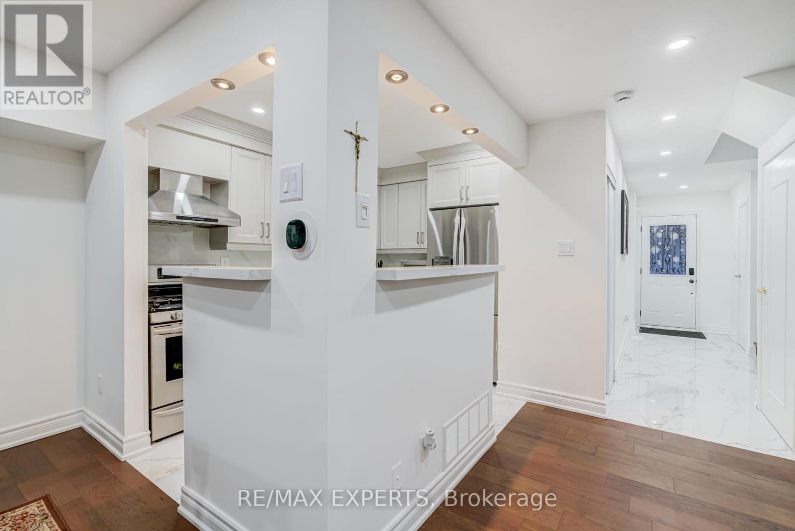 The perfect starter home! Bright and open-concept, this beautifully updated home features thousands of dollars spent on top-to-bottom upgrades-move in and enjoy with no renovation stress.The upgraded kitchen boasts Modern Cabinets, quartz countertops and a stylish backsplash, while gleaming hardwood floors run throughout the main level. Large 12" x 48" porcelain tiles enhance the main floor with a modern touch. The refreshed primary ensuite includes a sleek glass shower and contemporary vanity. Smooth ceilings and pot lights add to the home's elegant appeal. The finished basement offers versatile space for a home office, playroom, Bedroom or potentialin-law suite. A rare bonus for a condo townhome-enjoy your own private backyard garden. Locatedin a highly walkable neighborhood close to top-rated schools, the hospital, GO Train, MarkvilleMall, transit, Hwy 407, and more.Move-in ready and not to be missed! (id:64974)
