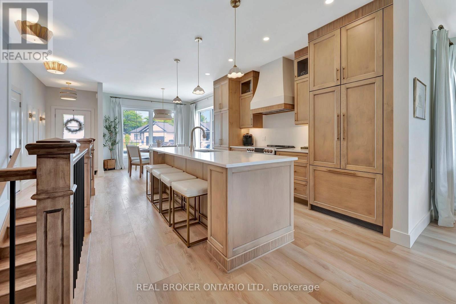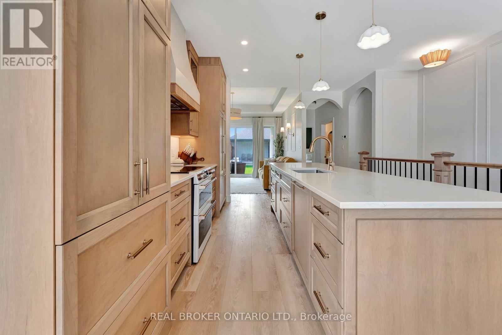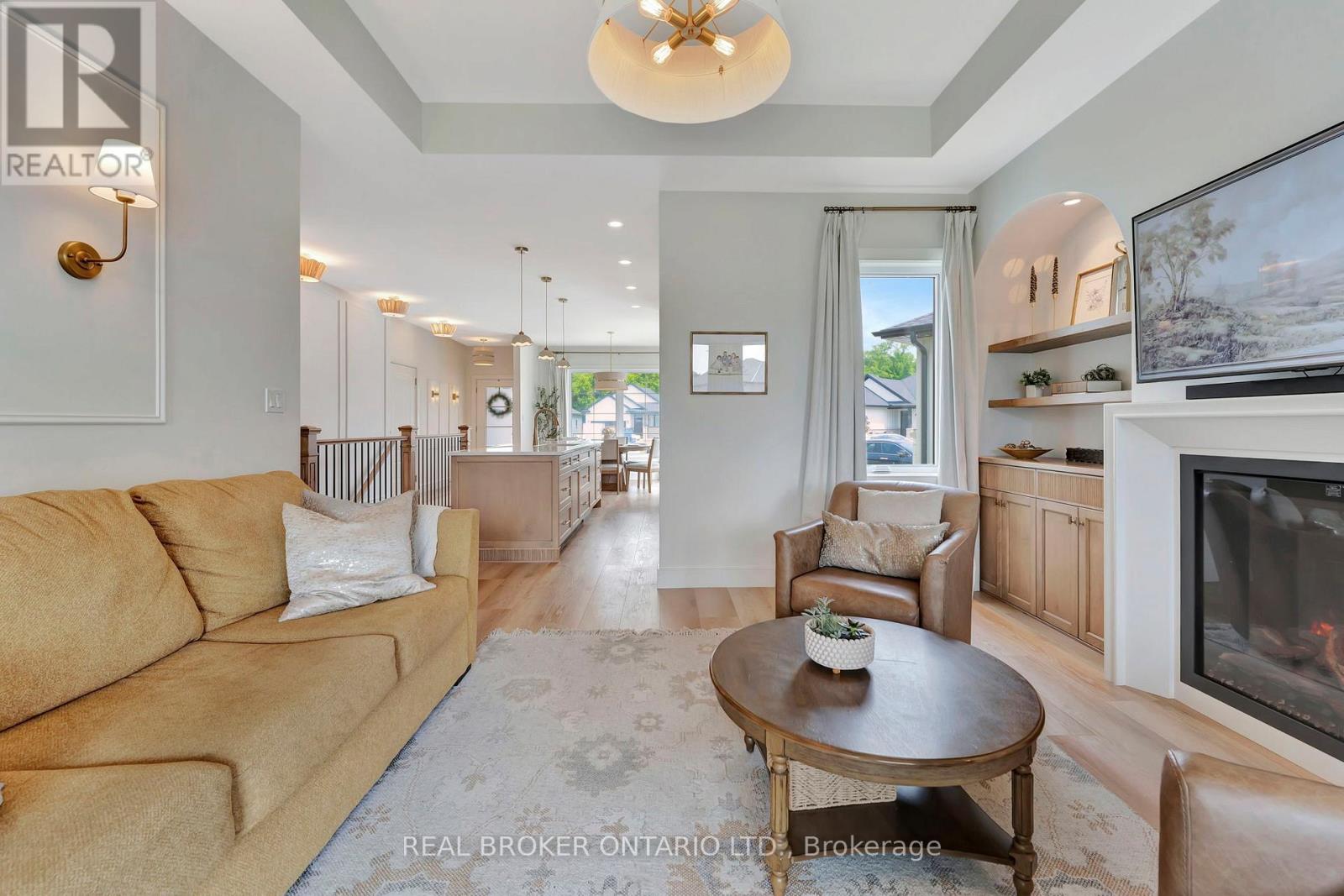 Welcome to your dream home located in the charming lakeside town of Port Burwell! This stunning, move-in-ready home showcases a perfect blend of elevated design, functionality, and timeless warmth. Step inside to find luxury vinyl plank flooring throughout and a custom kitchen featuring Pioneer Cabinetry, seamlessly blending high-end style with everyday practicality. The kitchen boasts Level 4 quartz countertops, a built-in panel-front KitchenAid dishwasher, GE Café stove, and an elegant Fisher & Paykel refrigerator-all surrounded by floor-to-ceiling cabinetry that creates a designer, built-in aesthetic. The open-concept main living space is a showstopper with arched custom built-ins, a cozy fireplace, and large windows that bathe the room in natural light. The fully finished basement adds even more functional living space, with two bedrooms, a full bath, and a spacious rec room-perfect for a home gym, media space, or playroom. Walk out through sliding patio doors to your private oasis (id:64974)