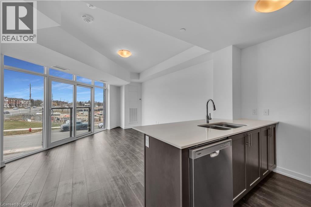 Sun-filled corner unit one bedroom + Den condo comes with one underground parking spot, one storage locker, and features a state of the art Geothermal Heating and Cooling system which keeps the hydro bills low!!! Includes upgraded flooring throughout, open concept kitchen and living room with upgraded appliances. The condo is complete with in-suite laundry, a 3-pc bathroom with a stand-up shower, and a spacious Den perfect for your home office needs. Enjoy all of the fabulous amenities that this building has to offer; including party rooms, modern fitness facilities, rooftop patios and bike storage. Situated in the desirable Waterdown community with fabulous dining, shopping, schools and parks. 5 minute drive to downtown Burlington or the Aldershot GO Station, 20 minute commute to Mississauga. (id:64974)