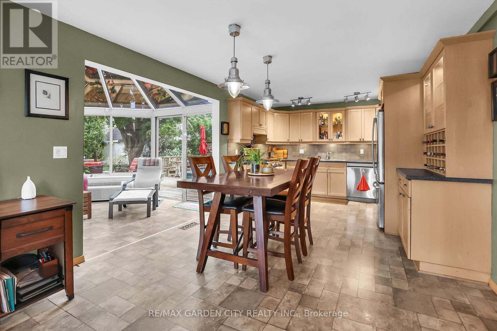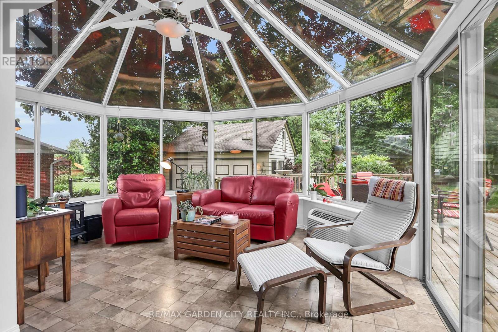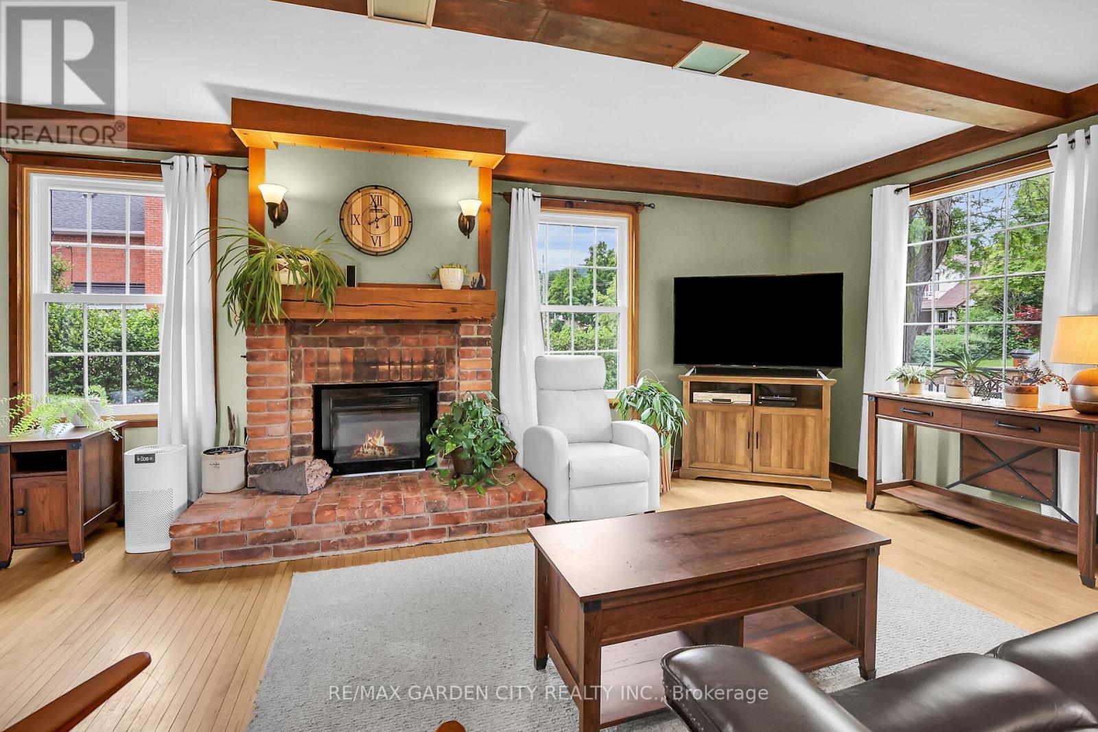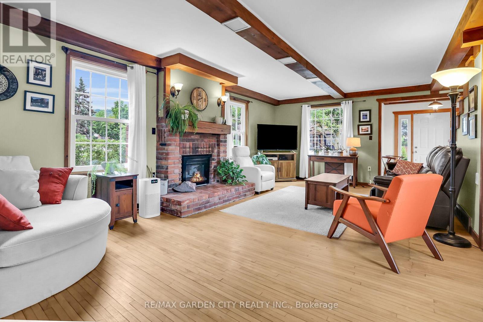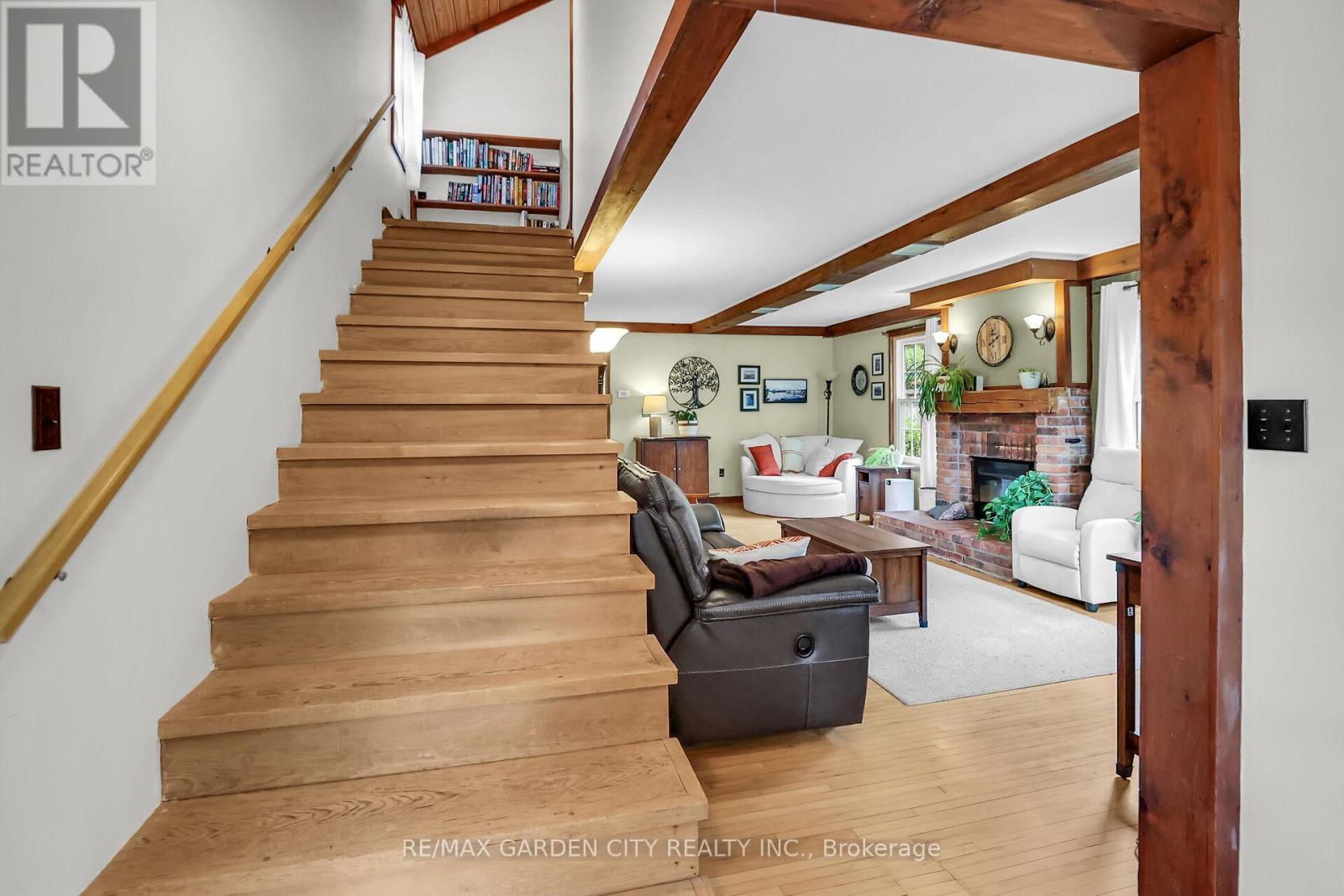 Discover the warmth, character, and modern comfort of this beautifully maintained 2-storey century home, perfectly situated on a generous lot just minutes from vibrant downtown Grimsby. With more than 100 years of history, this timeless residence seamlessly blends original charm with thoughtful contemporary updates. Step inside to a vaulted entryway accented with rich wood details that continue throughout the home, creating an inviting and cohesive feel. The main floor offers an open-concept kitchen and dining area that leads into a cozy year-round sunroom-an ideal spot for morning coffee, quiet evenings, or enjoying views of the backyard in every season. The spacious living room, anchored by a classic fireplace, adds even more warmth and character. Upstairs, you'll find two bedrooms, including a large primary retreat complete with a walk-in closet and an impressive bathroom featuring a walk-in shower and ample room to unwind. Outside, the property shines with multiple decks, a relaxing hot tub, and a charming pergola-perfect for summer entertaining or peaceful outdoor escapes. The detached double garage (24' x 22' exterior) includes a workshop for hobbyists and a loft for additional storage or creative use. With its walkable location near shops, restaurants, and parks, this unique home offers the very best of Grimsby living. Don't miss your chance to own a beautifully cared-for piece of local history! (id:64974)