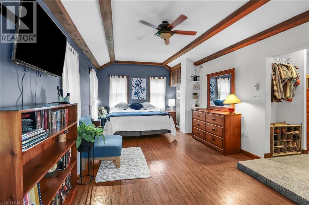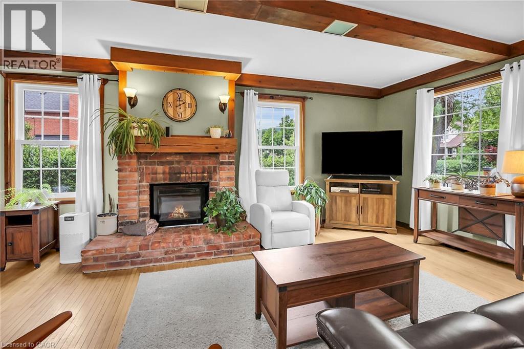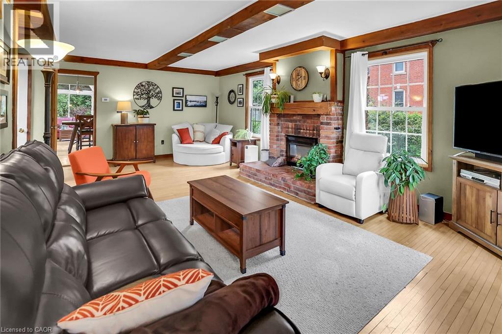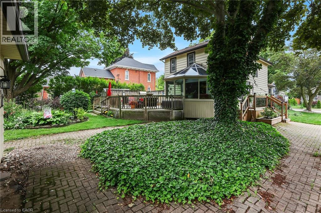 Discover the warmth, character, and modern comfort of this beautifully maintained 2-storey century home, perfectly situated on a generous lot just minutes from vibrant downtown Grimsby. With more than 100 years of history, this timeless residence seamlessly blends original charm with thoughtful contemporary updates. Step inside to a vaulted entryway accented with rich wood details that continue throughout the home, creating an inviting and cohesive feel. The main floor offers an open-concept kitchen and dining area that leads into a cozy year-round sunroom—an ideal spot for morning coffee, quiet evenings, or enjoying views of the backyard in every season. The spacious living room, anchored by a classic fireplace, adds even more warmth and character. Upstairs, you'll find two bedrooms, including a large primary retreat complete with a walk-in closet and an impressive bathroom featuring a walk-in shower and ample room to unwind. Outside, the property shines with multiple decks, a relaxing hot tub, and a charming pergola—perfect for summer entertaining or peaceful outdoor escapes. The detached double garage (24' x 22' exterior) includes a workshop for hobbyists and a loft for additional storage or creative use. With its walkable location near shops, restaurants, and parks, this unique home offers the very best of Grimsby living. Don’t miss your chance to own a beautifully cared-for piece of local history! (id:64974)