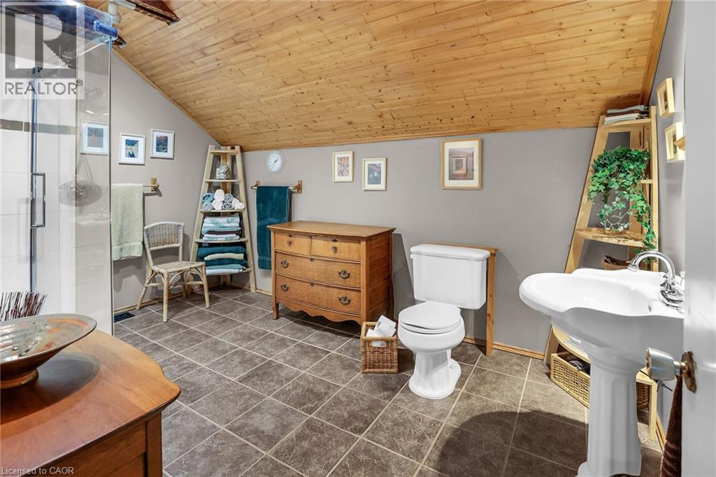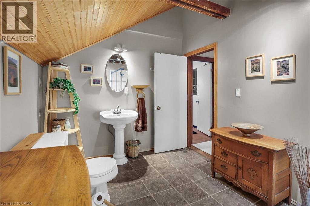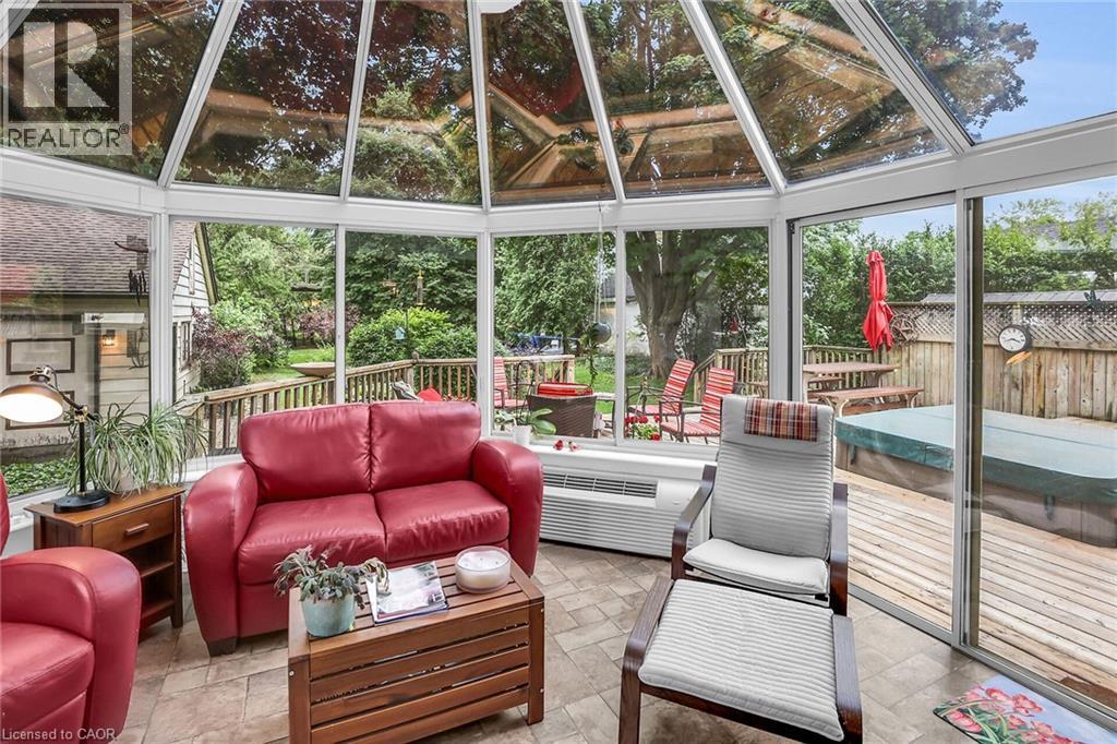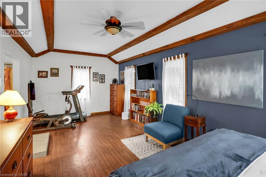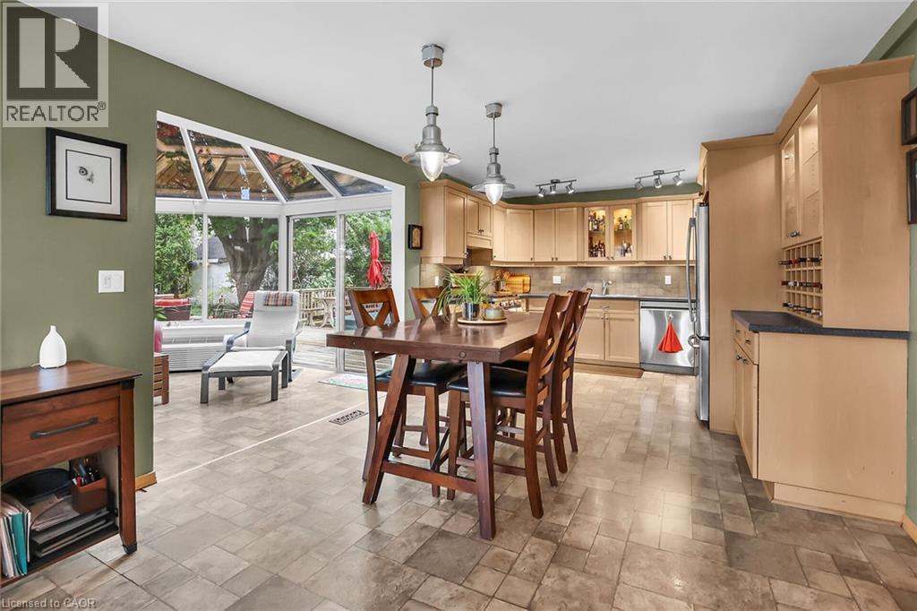 Discover the warmth, character, and modern comfort of this beautifully maintained 2-storey century home, perfectly situated on a generous lot just minutes from vibrant downtown Grimsby. With more than 100 years of history, this timeless residence seamlessly blends original charm with thoughtful contemporary updates. Step inside to a vaulted entryway accented with rich wood details that continue throughout the home, creating an inviting and cohesive feel. The main floor offers an open-concept kitchen and dining area that leads into a cozy year-round sunroom—an ideal spot for morning coffee, quiet evenings, or enjoying views of the backyard in every season. The spacious living room, anchored by a classic fireplace, adds even more warmth and character. Upstairs, you'll find two bedrooms, including a large primary retreat complete with a walk-in closet and an impressive bathroom featuring a walk-in shower and ample room to unwind. Outside, the property shines with multiple decks, a relaxing hot tub, and a charming pergola—perfect for summer entertaining or peaceful outdoor escapes. The detached double garage (24' x 22' exterior) includes a workshop for hobbyists and a loft for additional storage or creative use. With its walkable location near shops, restaurants, and parks, this unique home offers the very best of Grimsby living. Don’t miss your chance to own a beautifully cared-for piece of local history! (id:64974)