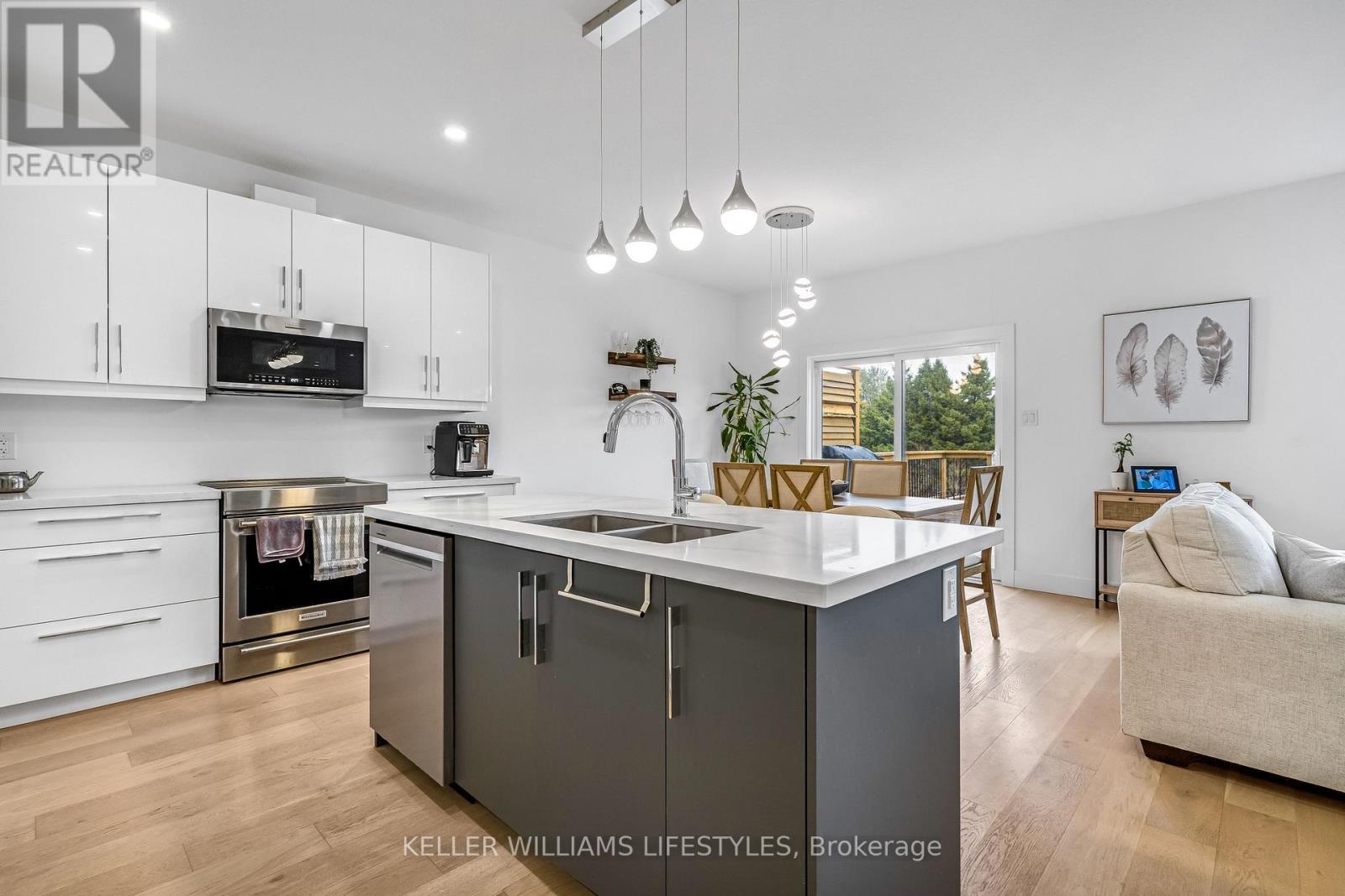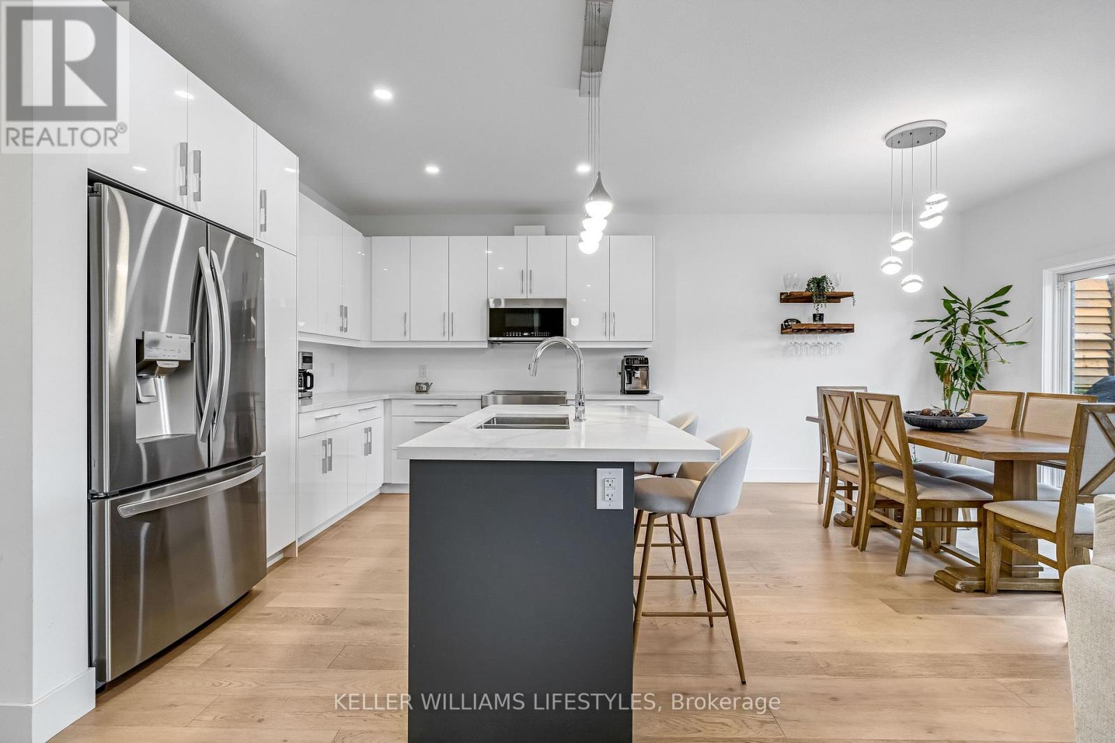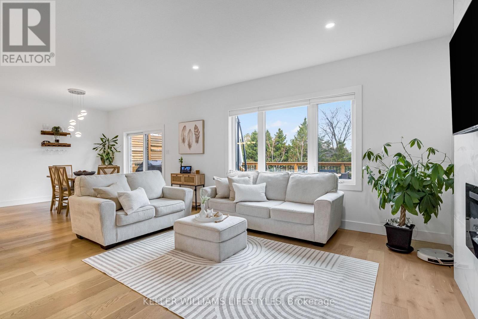 Welcome to Mount Brydges-where small-town charm meets modern family living, just 15 minutes from London and 10 minutes to Strathroy. This beautifully maintained home backs onto a peaceful ravine, offering privacy and a natural backdrop. Inside, enjoy a bright, open-concept layout with large windows and modern finishes-perfect for busy family life and entertaining. The kitchen flows seamlessly into the living space, keeping everyone connected. Upstairs features 3 spacious bedrooms, all with walk-in closets, plus the convenience of second-floor laundry. The primary suite includes a walk-in closet and private ensuite. The newly finished basement adds flexibility with an extra bedroom, 3-piece bath, and rec room with roughed-in wet bar. Complete with a large deck and great yard-this is the perfect move-in ready family home. (id:64974)
