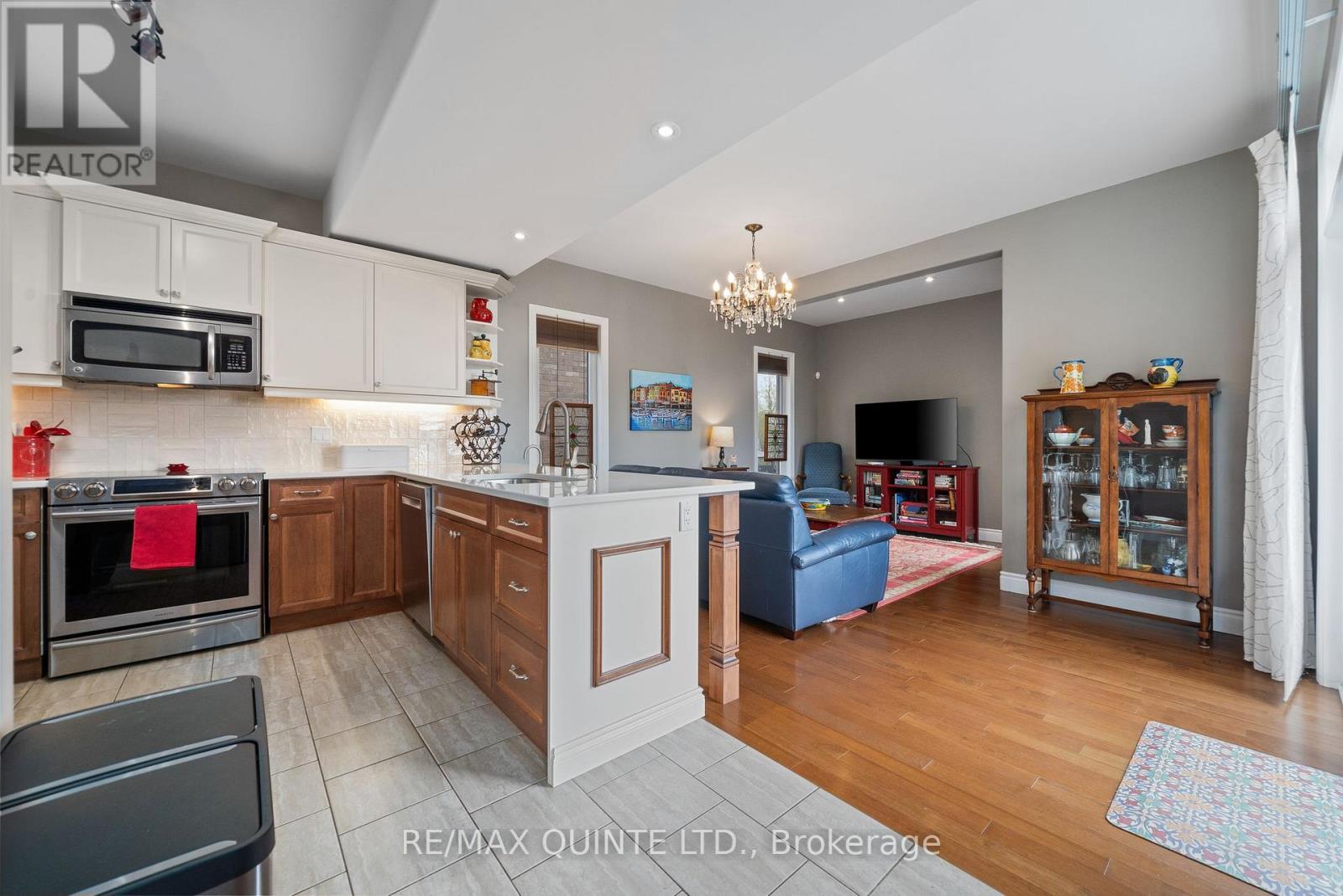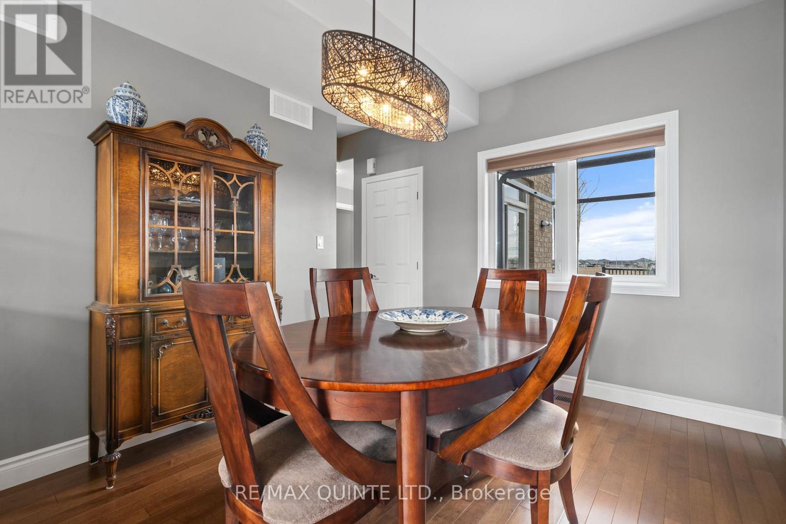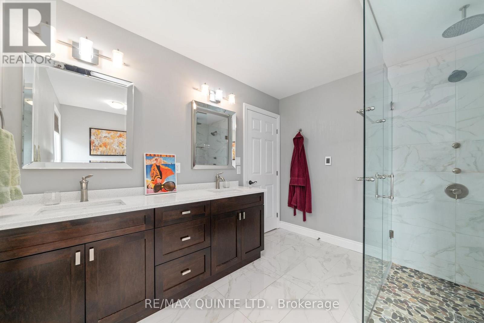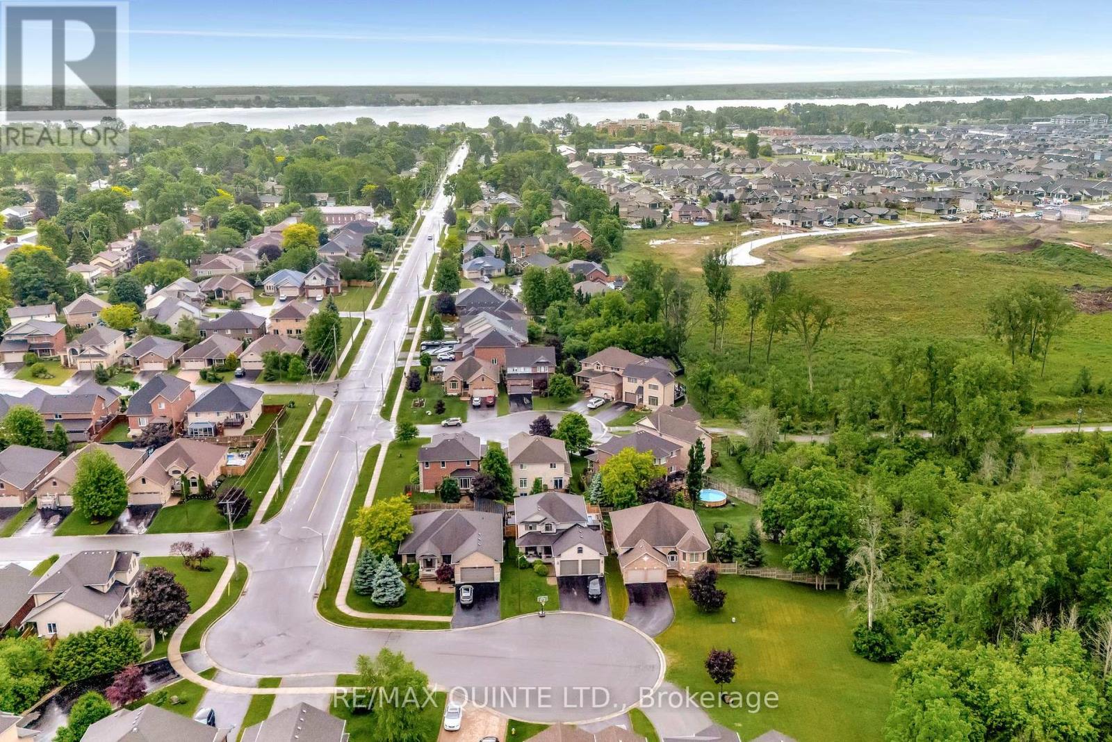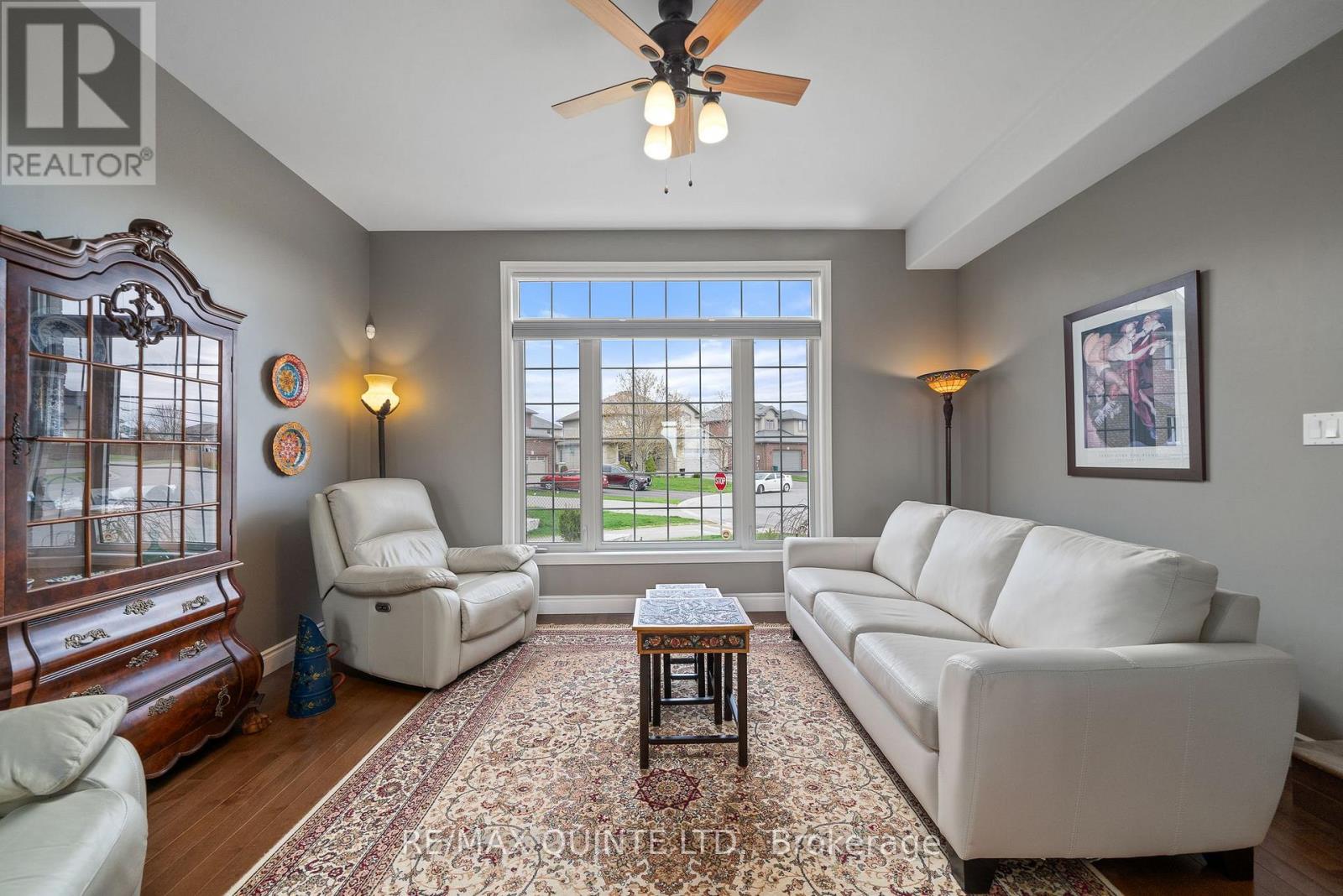Welcome to this exceptional all-brick 4 bedroom, 3 bathroom two-storey home, tucked into Belleville's sought-after West End and perfectly positioned beside tranquil walking trails in a warm, family-friendly neighborhood. From the moment you step inside, you'll feel the seamless blend of comfort, character, and thoughtful upgrades throughout. Hardwood and ceramic floors guide you to a sunken living room flooded with natural light-an inviting space to unwind or gather with guests. At the heart of the home is a beautifully designed kitchen, complete with custom cabinetry, quartz countertops, and an on-demand hot water tap-perfect for morning coffees and afternoon teas alike. The cozy family room and breakfast nook open through two patio doors to a stunning multi-level composite deck, setting the stage for summer BBQs, quiet mornings, and evening entertaining under the stars. The fully fenced backyard is lush yet low-maintenance, enhanced by an in-ground sprinkler system to keep everything effortlessly green. Upstairs, the spacious primary suite offers a true retreat with a walk-in closet and a spa-inspired 5-piece ensuite featuring heated floors, a custom tile shower, and luxurious finishes. With four bedrooms and three bathrooms, there's room for everyone to live comfortably. The fully finished basement delivers the perfect balance of fun and function-ideal for movie nights, game days, or relaxing at the wet bar, complete with built-in candy dispensers the kids will adore. With tasteful updates, ample storage, and a prime location that blends community charm with everyday convenience, this is a home that truly has it all-style, comfort, and heart. (id:64974)