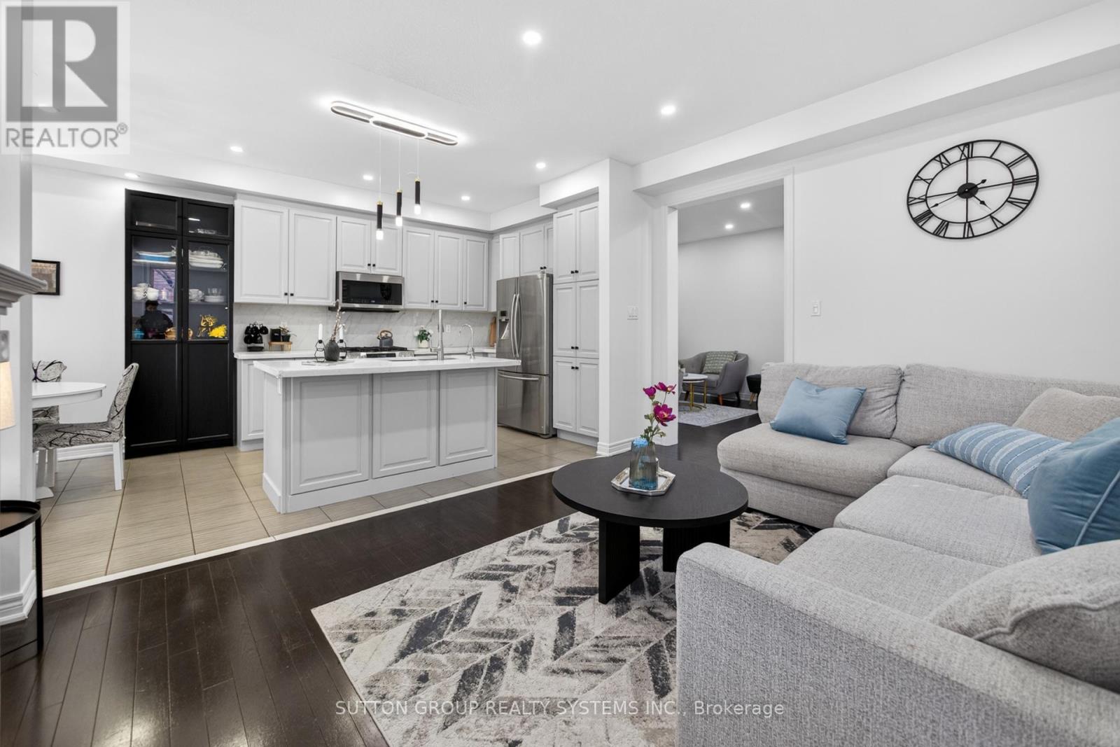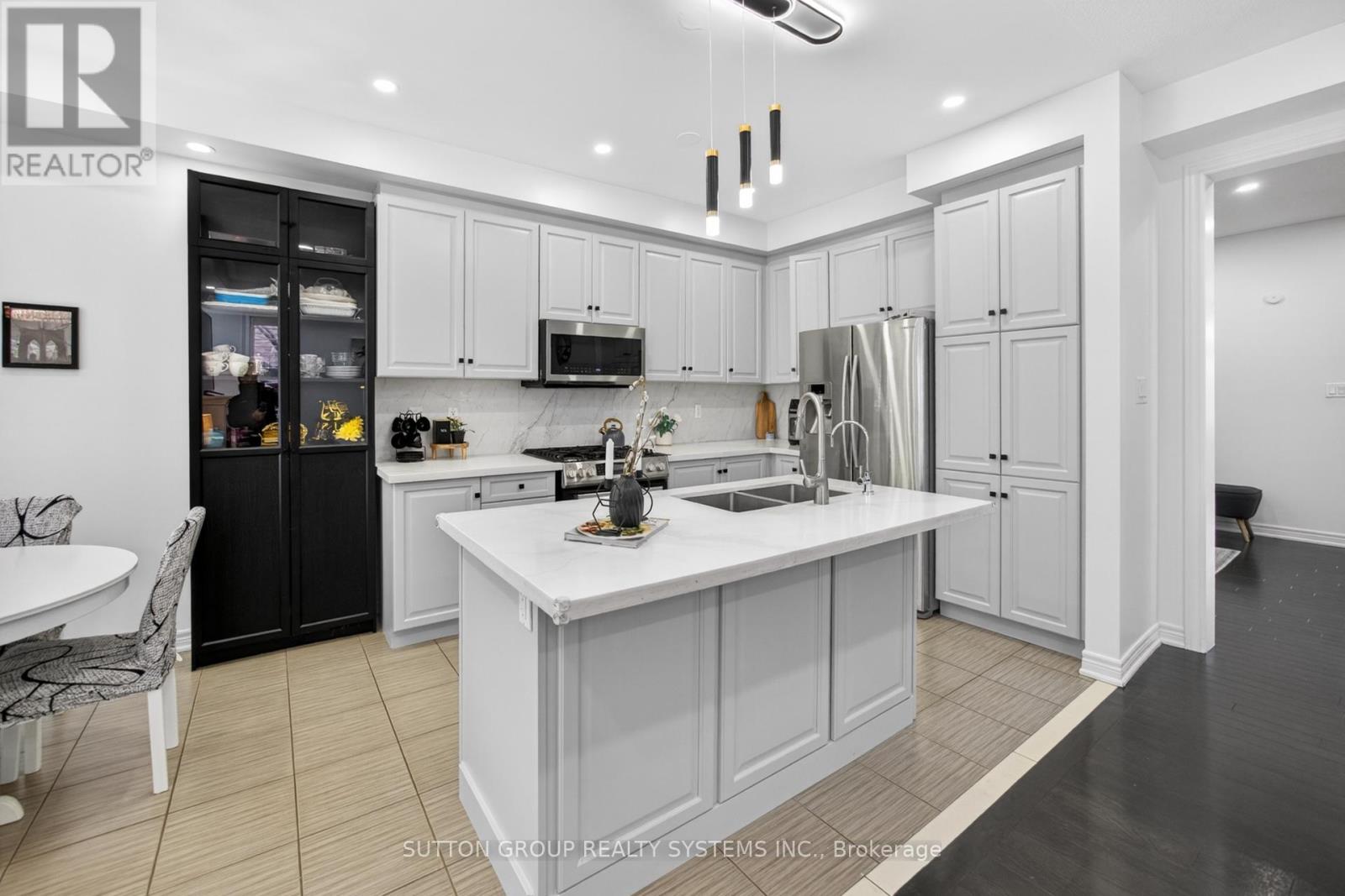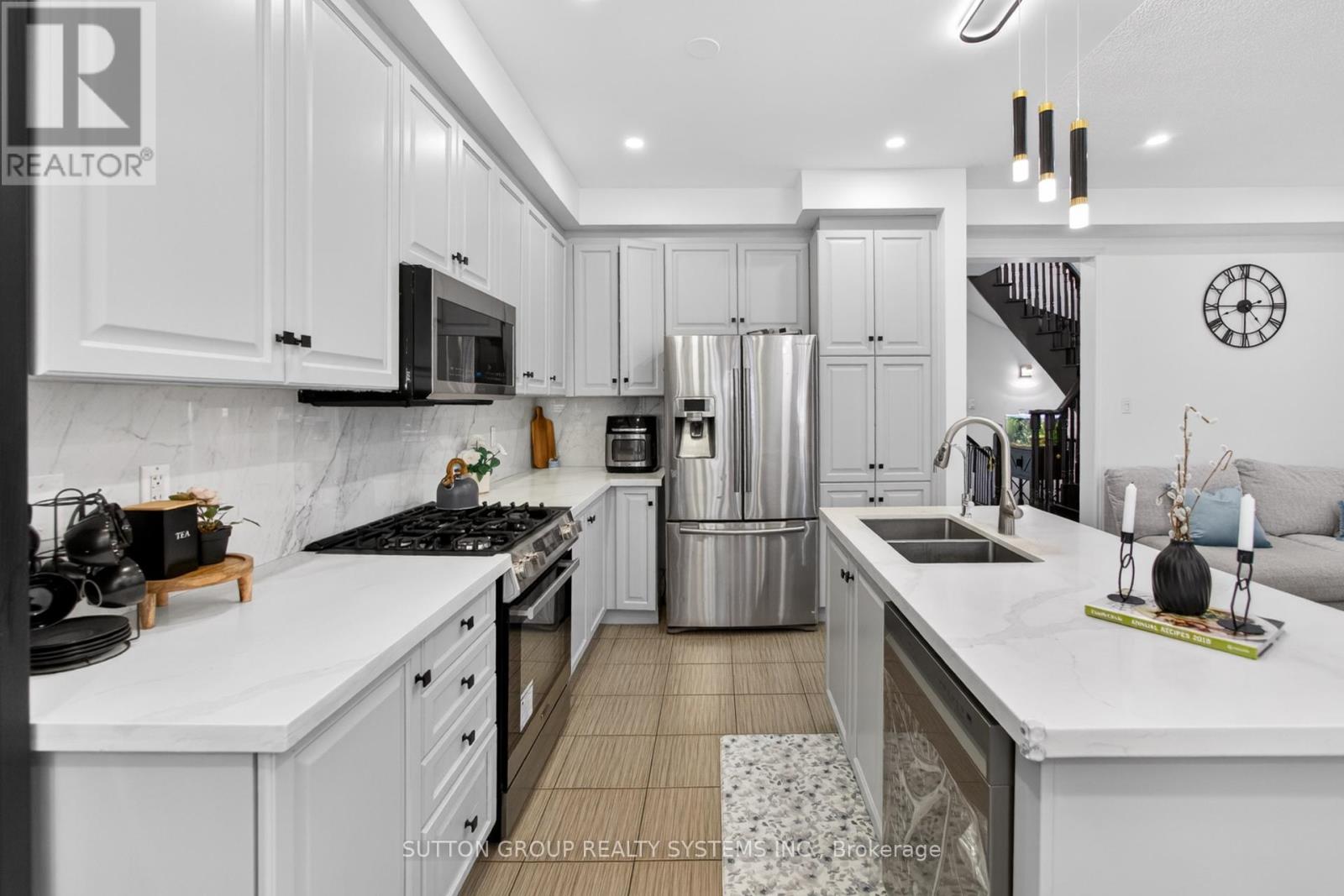 Gorgeous end-unit freehold townhome that feels like a semi-detached, offering approximately 1,824 sq ft plus a fully finished basement, located in the highly desirable Willmott community of Milton. This beautifully maintained home features a highly practical layout with separate, spacious living and family rooms-perfect for entertaining or family gatherings. Enjoy 9 ft ceilings, hardwood flooring, pot lights, and upgraded light fixtures throughout, all enhanced by fresh neutral paint for a bright and inviting atmosphere. So much daylight is pouring in from the big windows because of the end unit townhouse. The massive open-concept kitchen is a true highlight, complete with quartz countertops, an under-mount sink, stylish backsplash, stainless steel appliances (gas stove 2025, dishwasher 2025, microwave 2023), a pantry, and a separate breakfast area overlooking a large deck-ideal for indoor-outdoor living. A striking spiral hardwood staircase with wood spindles leads to the upper level, where you'll find 3 generously sized bedrooms and 3 upgraded washrooms, all featuring quartz countertops and modern finishes. The convenience of a second-floor laundry room makes everyday living effortless. The spacious primary bedroom offers ample space for a king-sized bed and additional furniture, filled with natural light, and includes a large walk-in closet and a luxurious 4-piece ensuite with tub and standing shower. The second and third bedrooms are equally well-sized, each with double-door closets. Step outside to enjoy a huge deck, perfect for entertaining, barbecues, or simply relaxing outdoors. The home is filled with abundant natural light throughout. Ideally located within walking distance to transit, shopping, Milton District Hospital, the Velodrome, and the future Wilfrid Laurier University campus. Easy access to major highways, including 401, 407, 403, and QEW. (id:64974)