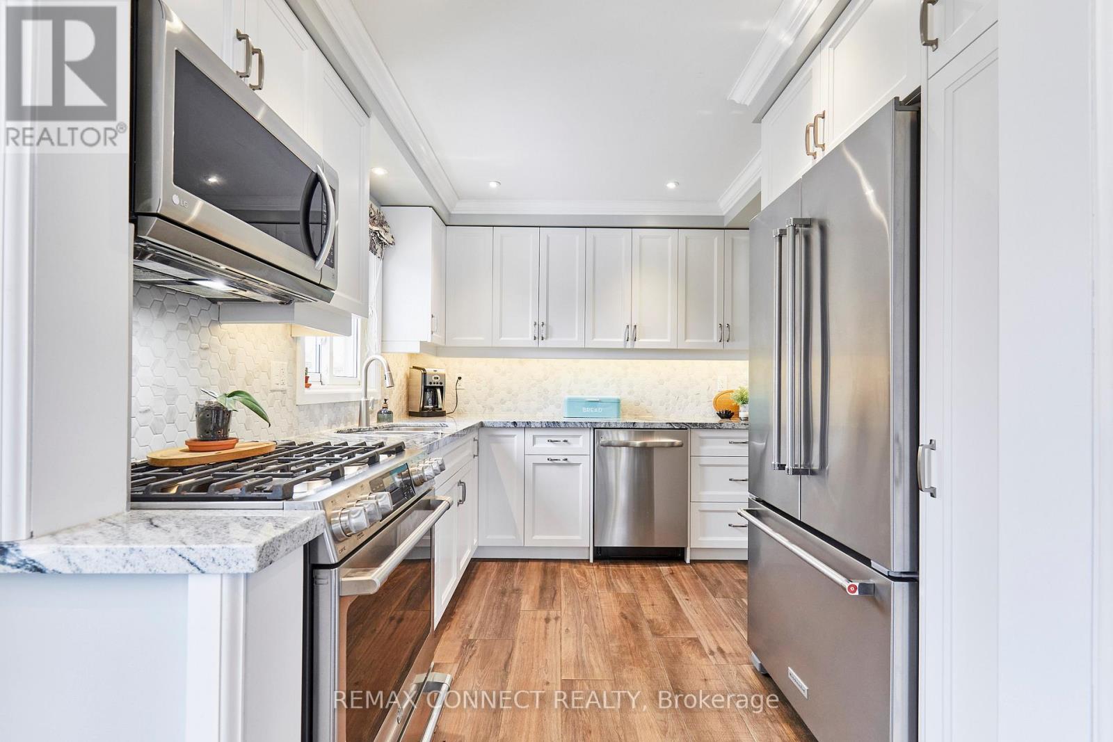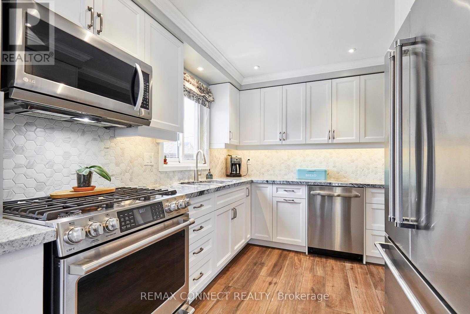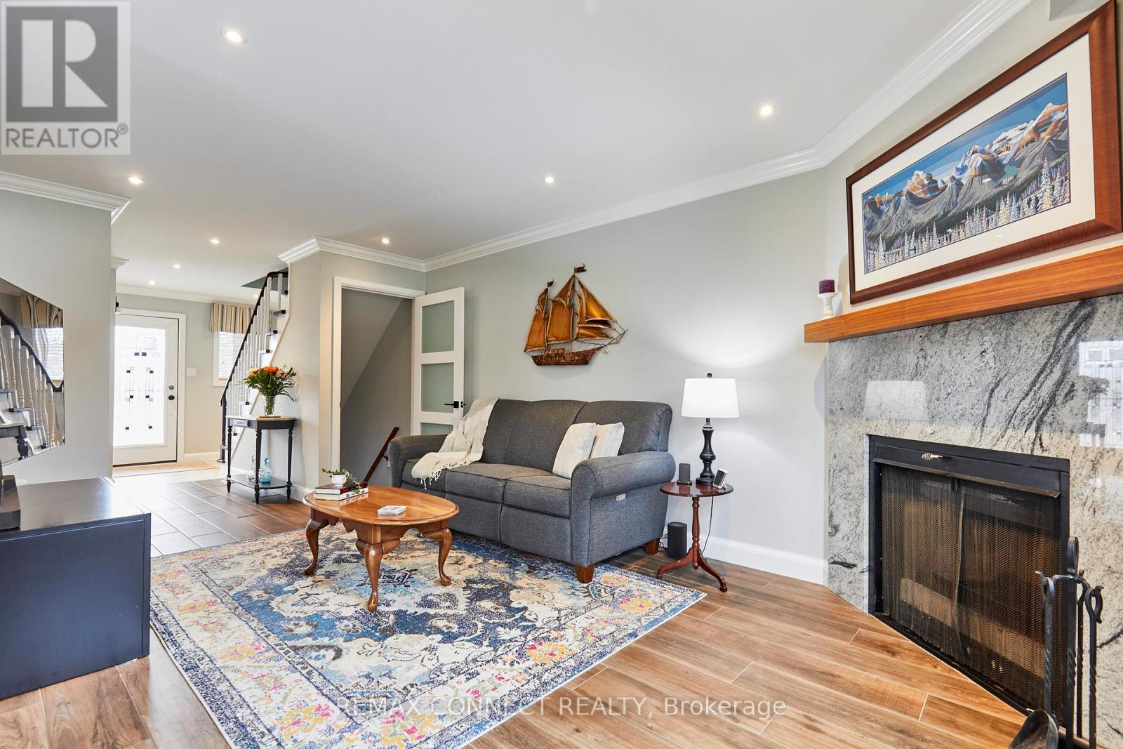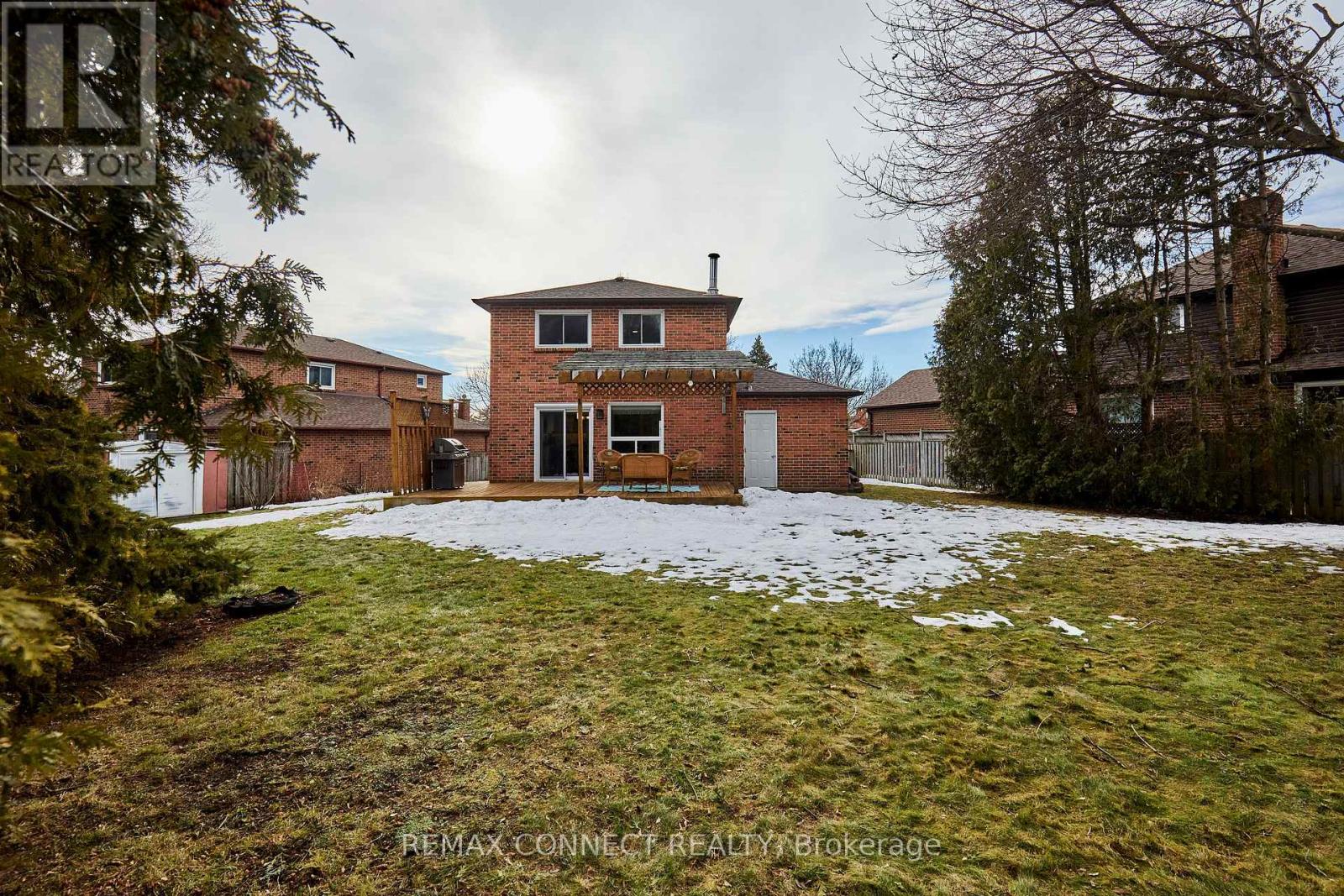 Renovated with High Quality Craftsmanship, this All Brick 3 Bedroom Home is the Ideal Place to Raise a Family! Quiet Cul-de-Sac, Steps from Westney Heights Public School. Exceptional Pie-Shaped Lot with Mature Trees & a Fenced Backyard Measuring 120' Wide Across the Back - Picture Friends & Family Gathering on the Deck, Kids Playing in the Yard! No Sidewalks to Shovel - Room for 4 Vehicles in the Driveway. Extra Deep 30' Long Garage with Yard Access for Convenient Storage of Sports Equipment & Tools. Inside, the Home Feels Modern, Warm and Bright. The Kitchen Sparkles with Granite Counters, Soft Close Cupboards, Stainless Steel Appliances, Pot Lights, & Crown Moulding. A Matching Custom Cabinet in the Dining Room Extends the Efficient Use of Space. Separate Office/Den. Stylish & Durable Porcelain Tile Floor on the Main Level & Luxury Vinyl Plank Flooring Upstairs. Rec Room with Gas Fireplace Makes a Cozy Retreat. Convenient to the 401, GO Transit, Shops & Restaurants. A Move-in Ready Home Designed for Your Next Chapter! Extras: Main Bathroom Update 2026, Primary Bedroom Closet Barn Door 2026, SS Dishwasher 2026, Washer 2026, Furnace 2025, Luxury Vinyl Plank Flooring 2025, Garage Door 2019, Main Floor Renovation 2018, Roof Shingles & 5" Eavestrough 2016, Interlock Stone Landscaping & Driveway Paved 2014, Windows 2007. House Built with Noise Reducing Concrete Main Floor. (id:64974)
