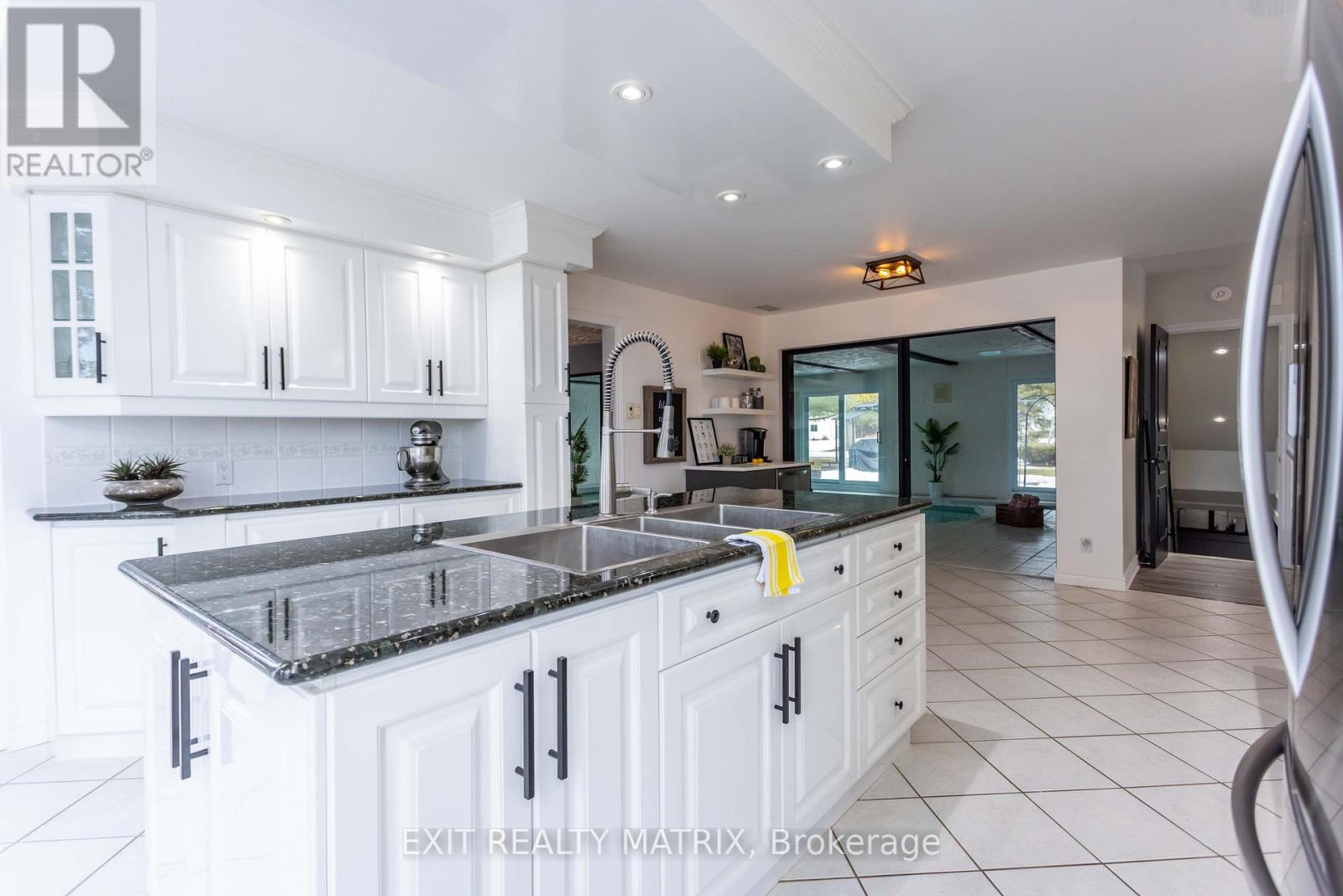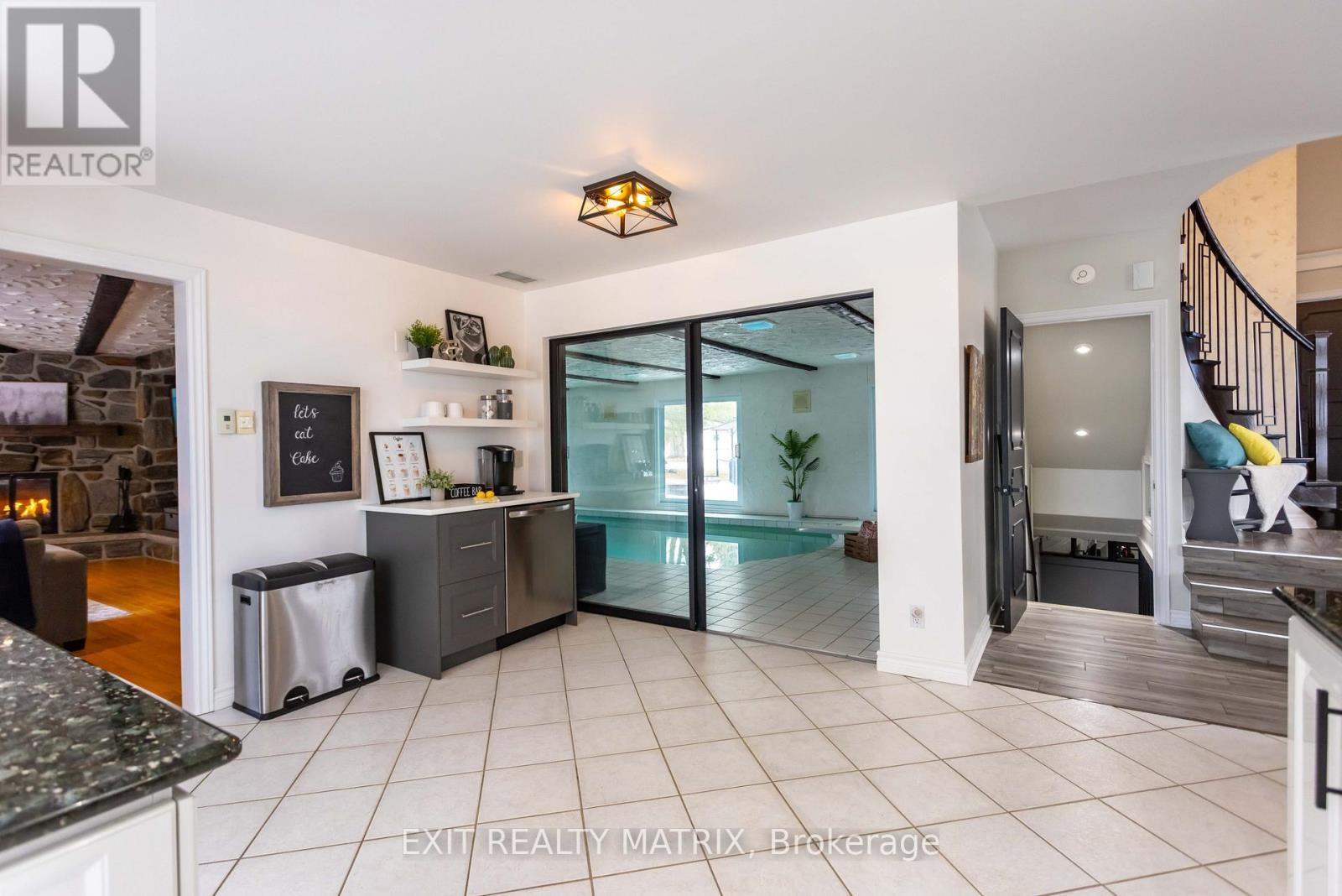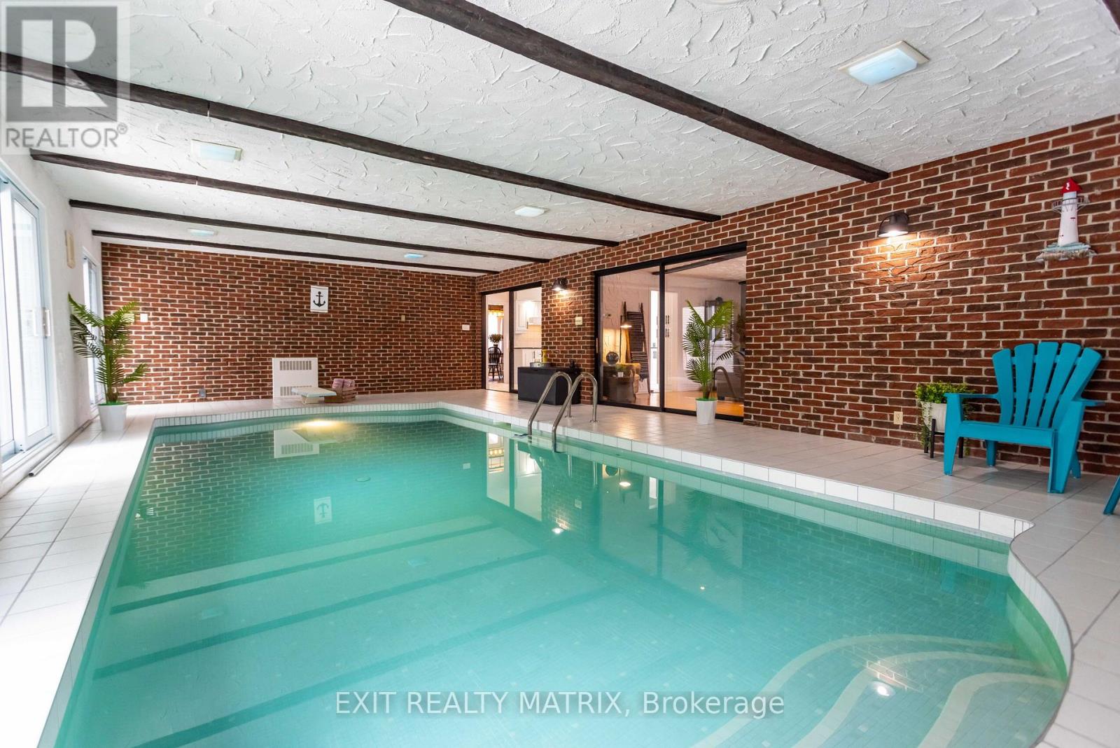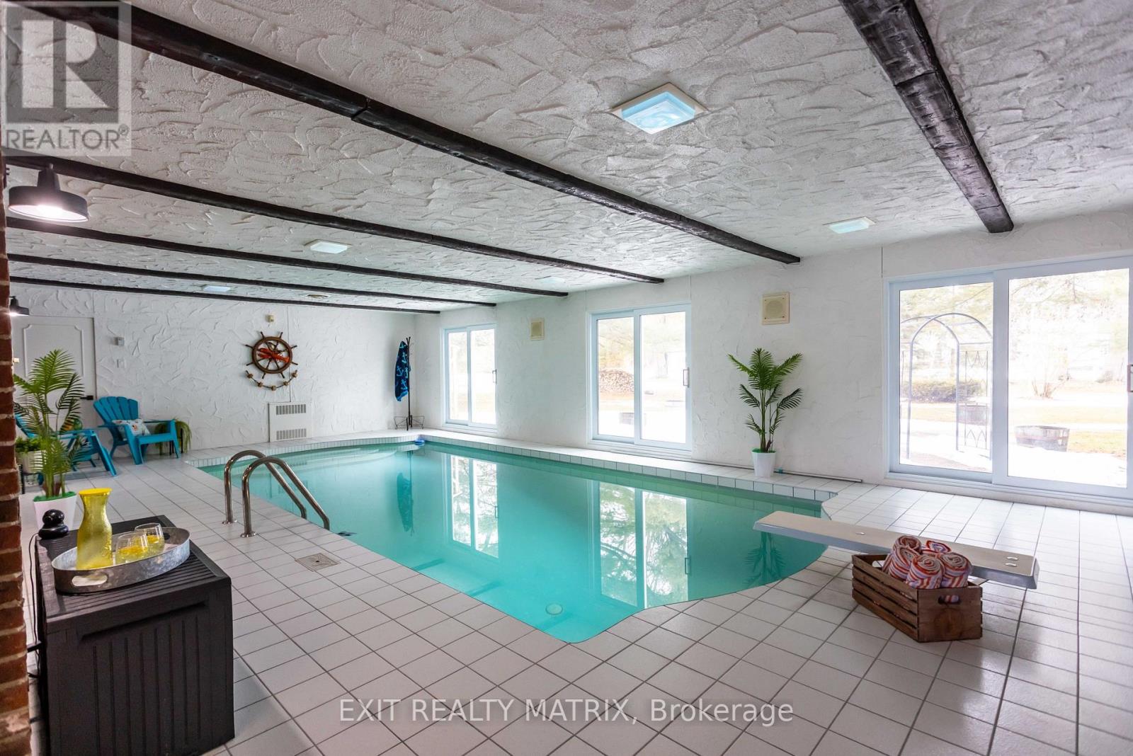 Welcome to a truly one-of-a-kind estate property in the heart of Casselman, where timeless elegance meets an outdoor lifestyle that is simply unmatched. Set on almost 2 acres, with a conservation area at the front and no rear neighbours, this remarkable, updated 4-bed, 5-bath home offers space, privacy, and an incredible connection to nature. From the moment you arrive, the home makes a lasting impression with its striking Vermont White Marble exterior & 4 car attached garage. A grand circular driveway welcomes you home, offering parking for family, guests, and all your recreational toys with ease. Step inside to discover an expansive layout designed for everyday living and unforgettable entertaining. The main level features a formal living and dining area, a spacious sun-filled gourmet kitchen with in-floor radiant heating, an island, gorgeous granite counters, abundant cabinetry, a coffee station, and a bright eat-in area. One of the most exceptional features is the indoor, heated inground pool. Imagine morning swims, evening relaxation, and entertaining in a space that feels like your own personal resort, no matter the season. Upstairs, the home continues to impress with generously sized bedrooms, including a stunning primary suite complete with a walk-in closet, and spa-like ensuite. The fully finished lower level expands your living space even further, with a large recreation room, two offices, a gym and ample storage. A 3-car detached garage is perfect for your toys. With direct proximity to green space, nearby trails, and access to a public dock and boat ramp, this property is perfectly suited for outdoor enthusiasts-whether it's kayaking, fishing, snowmobiling, or simply enjoying the tranquillity of your surroundings. With potential for 2 lots to be severed and located just steps from local amenities. You'll enjoy the quick 20-min commute to Ottawa. This home offers the perfect balance of rural serenity and commuter convenience. (id:64974)