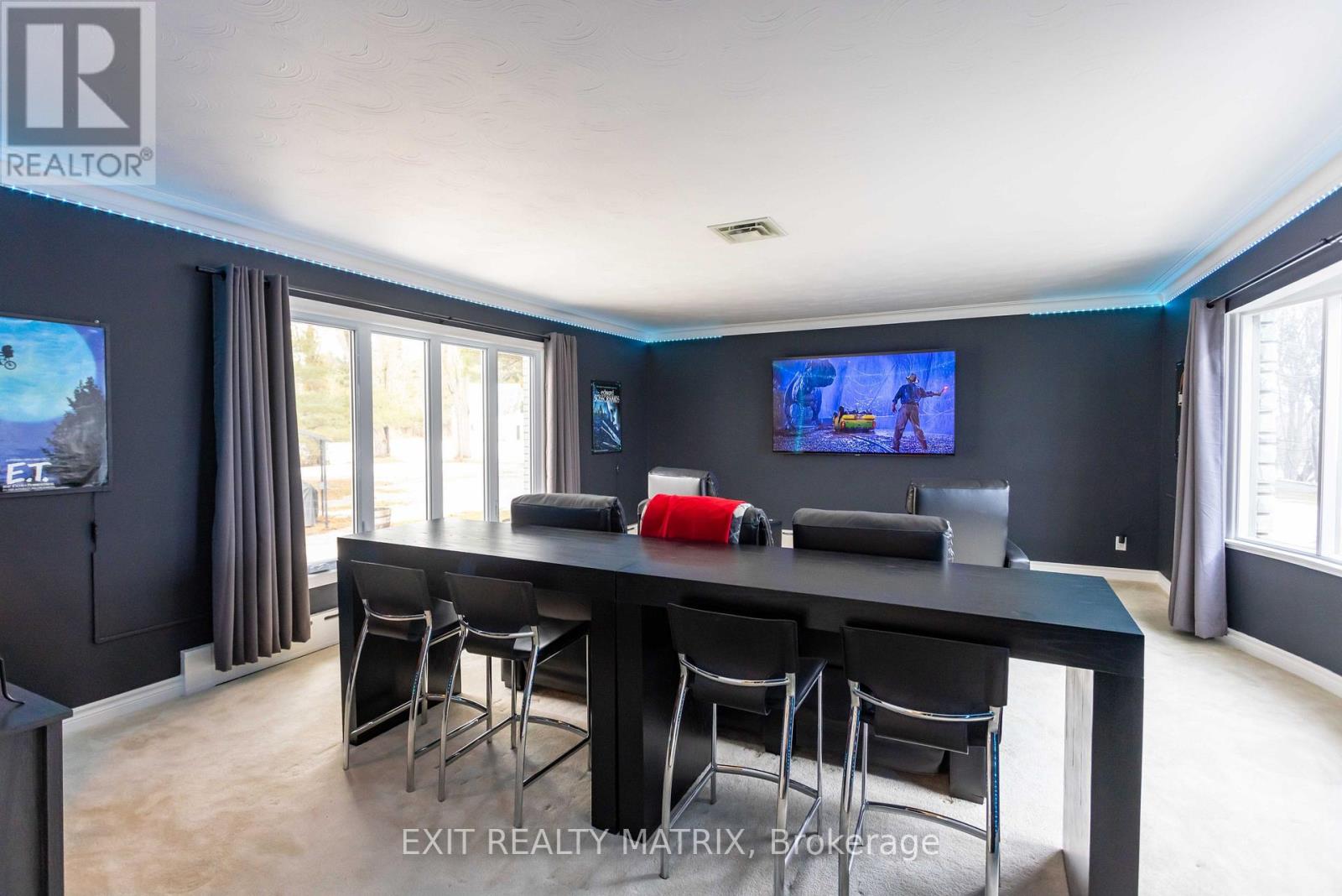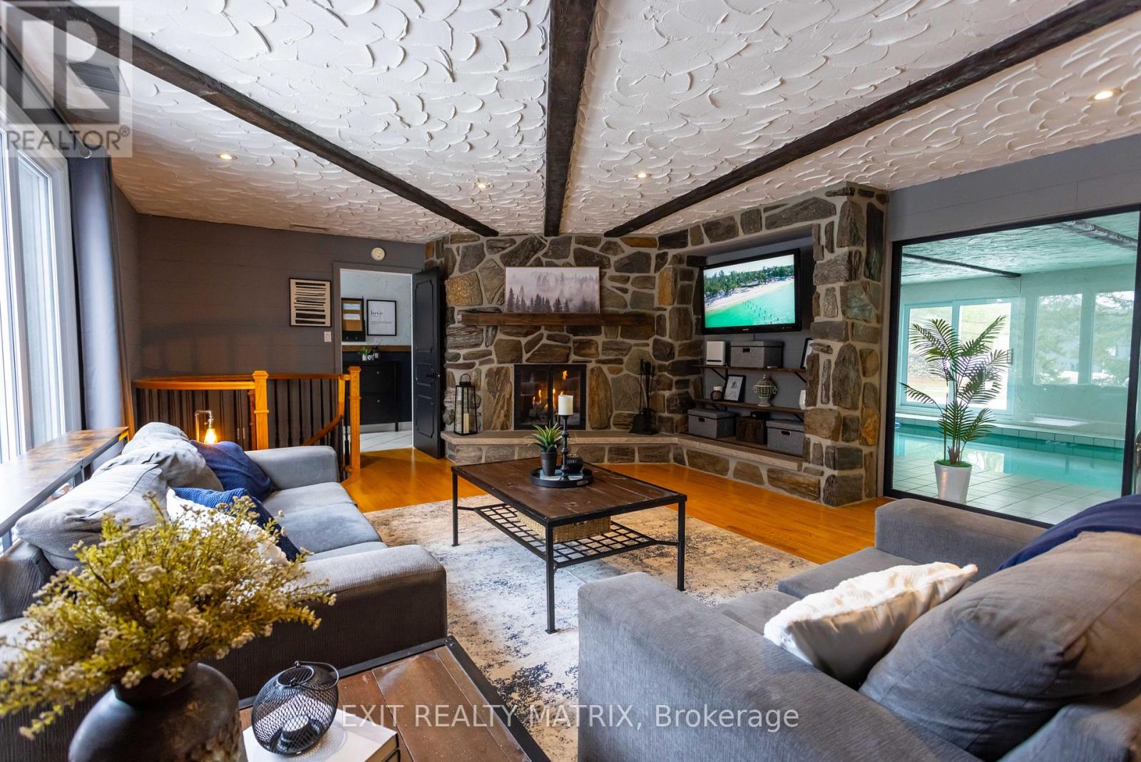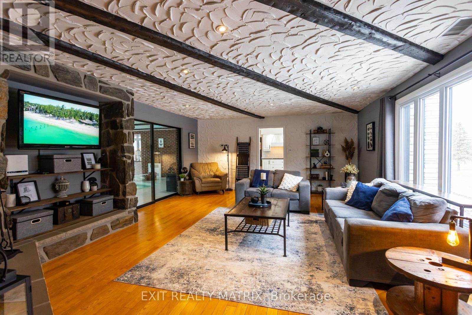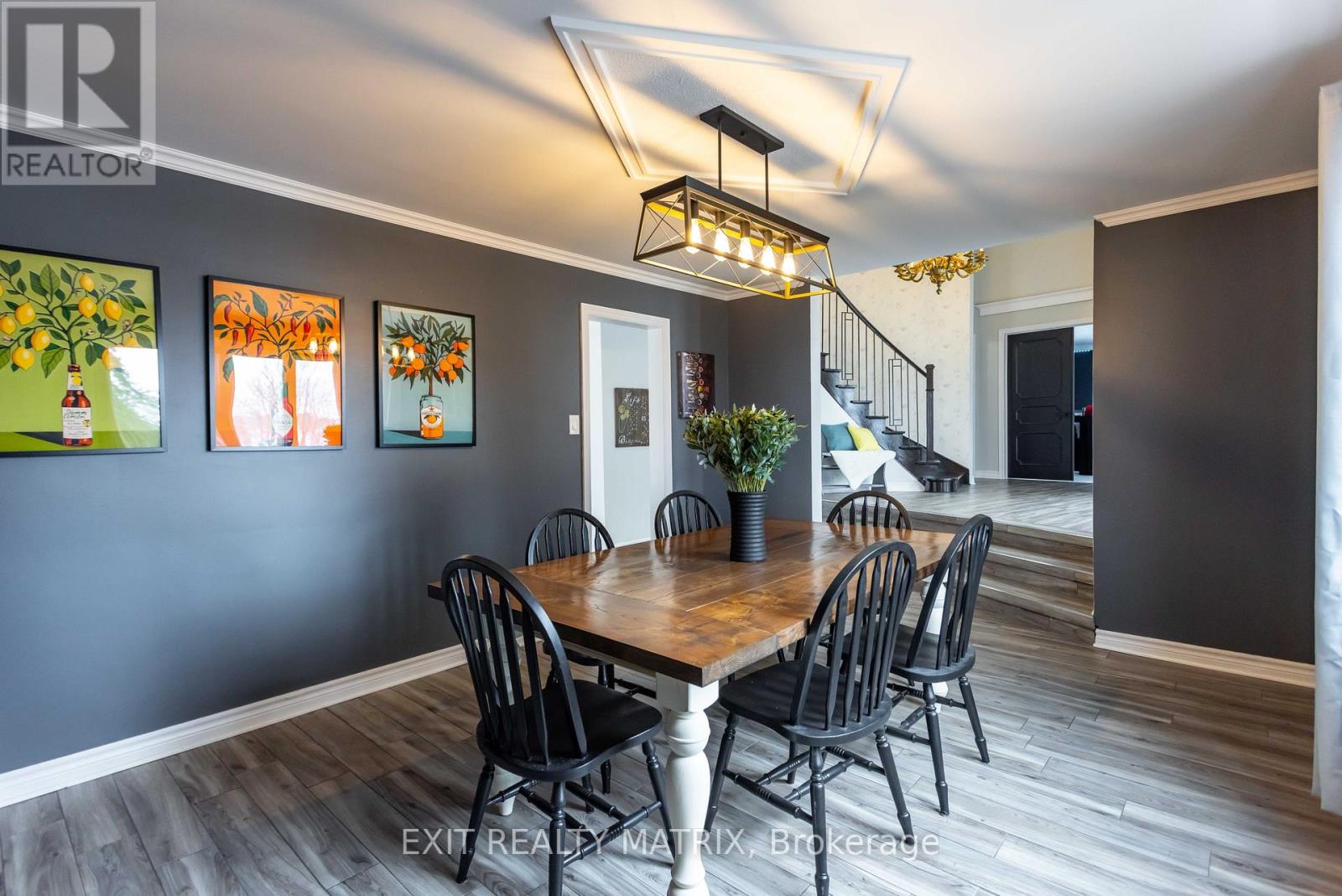 Welcome to a truly one-of-a-kind estate property in the heart of Casselman, where timeless elegance meets an outdoor lifestyle that is simply unmatched. Set on almost 2 acres, with a conservation area at the front and no rear neighbours, this remarkable, updated 4-bed, 5-bath home offers space, privacy, and an incredible connection to nature. From the moment you arrive, the home makes a lasting impression with its striking Vermont White Marble exterior & 4 car attached garage. A grand circular driveway welcomes you home, offering parking for family, guests, and all your recreational toys with ease. Step inside to discover an expansive layout designed for everyday living and unforgettable entertaining. The main level features a formal living and dining area, a spacious sun-filled gourmet kitchen with in-floor radiant heating, an island, gorgeous granite counters, abundant cabinetry, a coffee station, and a bright eat-in area. One of the most exceptional features is the indoor, heated inground pool. Imagine morning swims, evening relaxation, and entertaining in a space that feels like your own personal resort, no matter the season. Upstairs, the home continues to impress with generously sized bedrooms, including a stunning primary suite complete with a walk-in closet, and spa-like ensuite. The fully finished lower level expands your living space even further, with a large recreation room, two offices, a gym and ample storage. A 3-car detached garage is perfect for your toys. With direct proximity to green space, nearby trails, and access to a public dock and boat ramp, this property is perfectly suited for outdoor enthusiasts-whether it's kayaking, fishing, snowmobiling, or simply enjoying the tranquillity of your surroundings. With potential for 2 lots to be severed and located just steps from local amenities. You'll enjoy the quick 20-min commute to Ottawa. This home offers the perfect balance of rural serenity and commuter convenience. (id:64974)