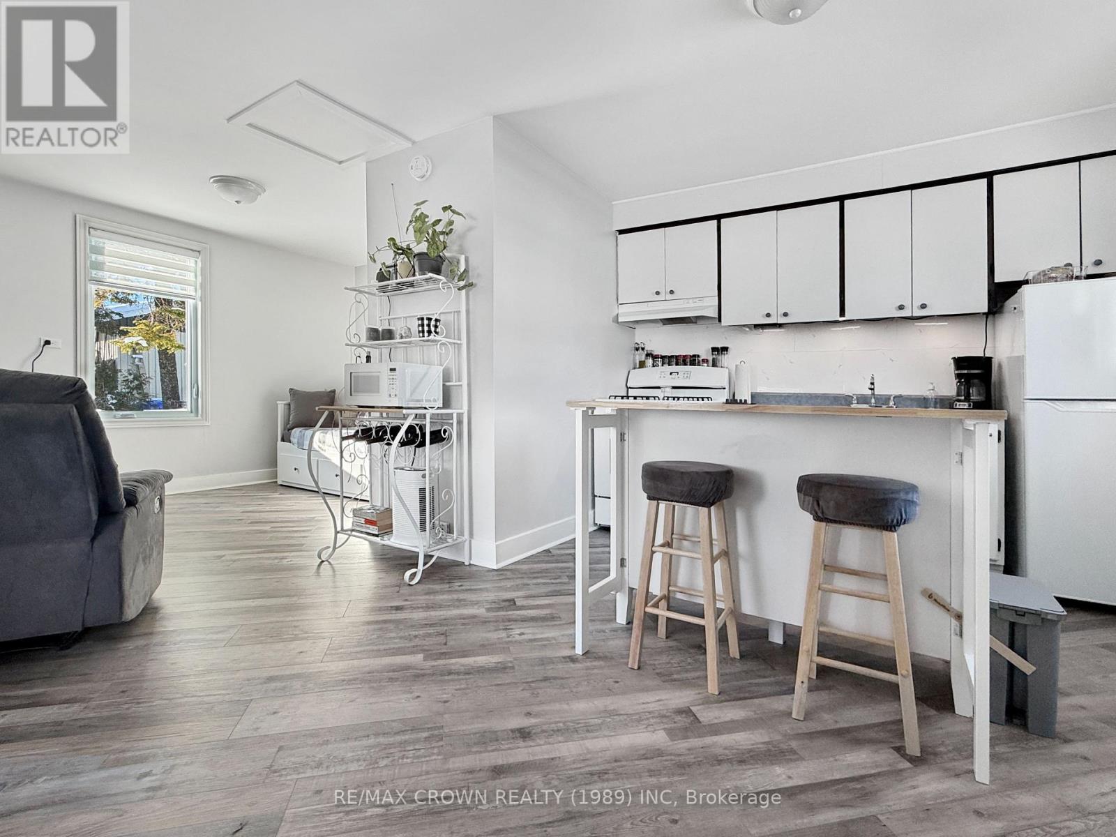 Tucked away on a spacious, tree lined lot, this charming tiny home invites you to slow down, simplify, and enjoy a lifestyle built around freedom and flexibility. Whether you are a seasonal worker, a snowbird chasing warmer days, or someone ready to trade upkeep for adventure, this cozy one storey bachelor offers the perfect place to land. Inside, the space has been lovingly refreshed from top to bottom, creating a warm and welcoming interior where everything feels just right. Natural light pours through brand new windows, the renovated kitchen flows effortlessly into the living area with its island ready for morning coffee or late night conversations, and the three piece bathroom feels clean, modern, and comfortable. Every update was chosen with ease and comfort in mind, allowing you to move in and simply start living. Step outside and you will find a yard that feels like a quiet retreat, with crab apple trees and lilacs that steal the show when they bloom, filling the air with colour and fragrance. A spacious shed waits nearby, ready to store all your recreational gear and travel essentials. This is more than a home, it is a place that supports a lighter, more intentional way of living, where low responsibility opens the door to more time, more travel, and more of what matters most. (id:64974)