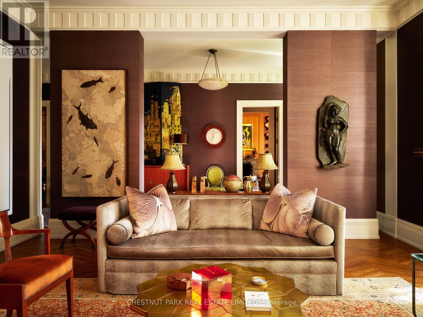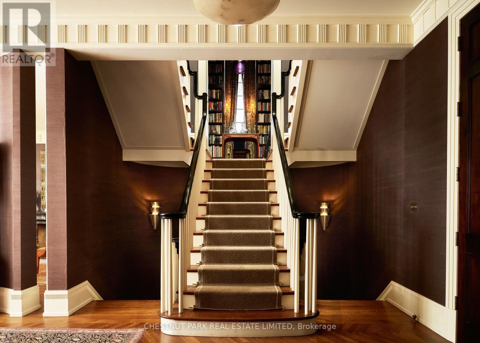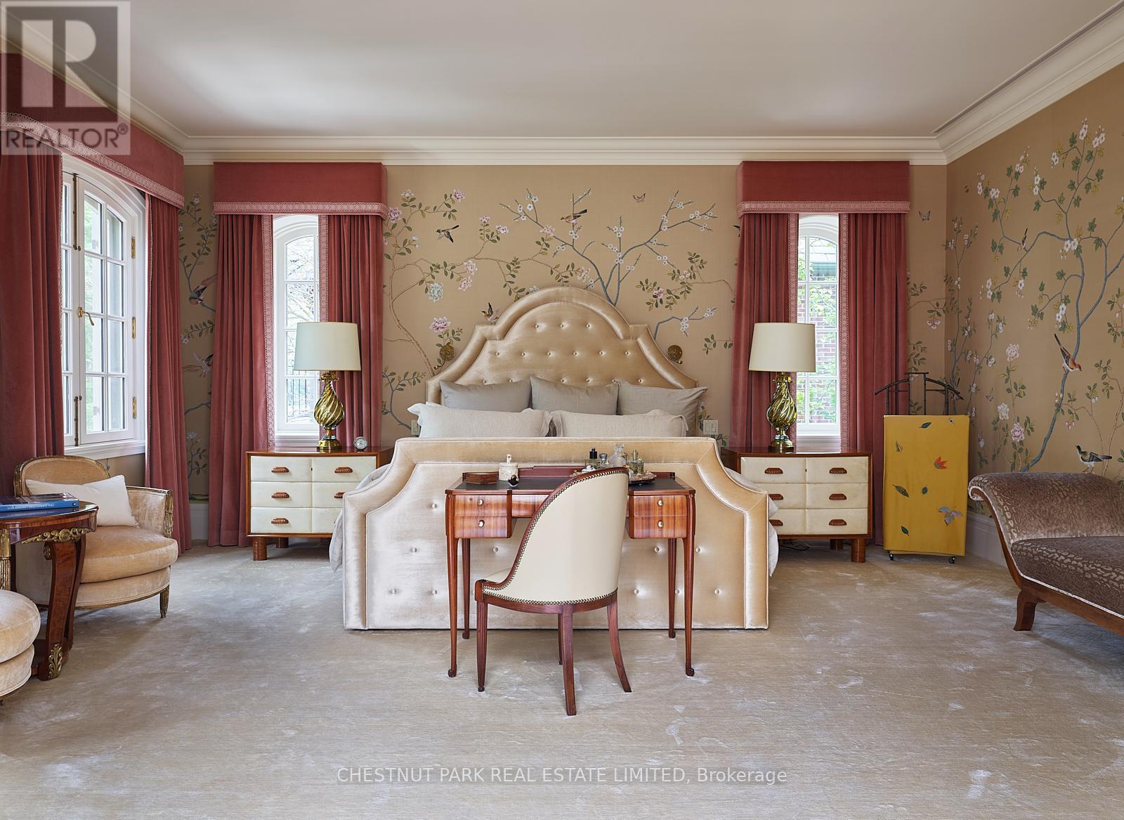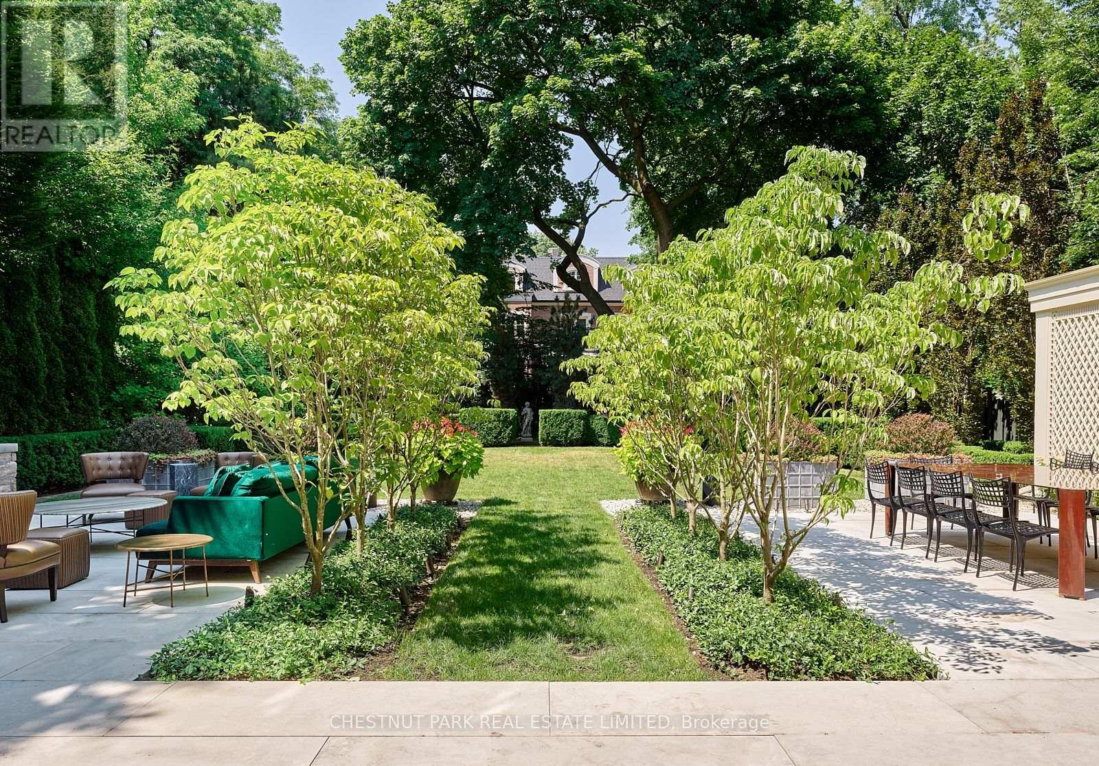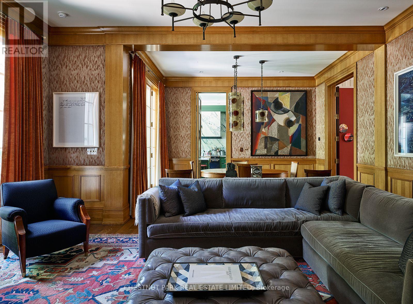 This remarkable residence stands apart among Forest Hill's most architecturally sophisticated homes. Designed & lived in by the current owners for their young family, its adaptable 8,345' layout easily accommodates executive lifestyles-from entertaining with ease to family-focused living where the stunning Kit can seamlessly open to the adjoining DR & Fam areas, & the lower media room/play room may be a children's play room or creative studio. Balancing warmth with precision, the interiors evoke serene modernism through tactile finishes & finely measured detail. Pale oak, bronze fixtures, honed limestone, & softly textured surfaces create a natural palette that diffuses light with quiet luxury. Expansive windows frame curated garden views, merging the exquisite interiors with the lush landscape. Featured in design publications, the home, built by Whitehall Homes, embodies elevated craftsmanship, soaring 11' clgs, Venetian plaster, de Gournay, molded & panelled walls, & a circular DR complemented by an elegant cherrywood study. Two offices on the main & a 14' high Library offer exceptional versatility for modern professionals. Thoughtful updates include gallery-grade lighting ('21), a Bloomsbury kitchen with servery & adjoining mudroom ('18/19), refinished rift-sawn oak herringbone floors ('18), & exquisite terraces & gardens by Janet Rosenberg ('17/18). Exemplary appointments include 2 1/4" thick veneered & hand-waxed crotch mahogany doors with custom Nanz hardware, a 31' grand hall anchored by a dramatic 3-floor split staircase, Scalamandré silk-upholstered walls in the Fam Rm, & a sumptuous PR suite featuring a vaulted Atrium Sitting area, dual ensuites with sep dressing zones, & handwoven silk broadloom. A light-filled 28' Hall Sitting area overlooks the grounds & striking Library. The lower provides a 5th & 6th BDRM, a fabulous Media/Play Rm, wine storage, a fitness or yoga studio, lots of storage & Lau. Radiant-heated floors in principal rooms. (id:64974)