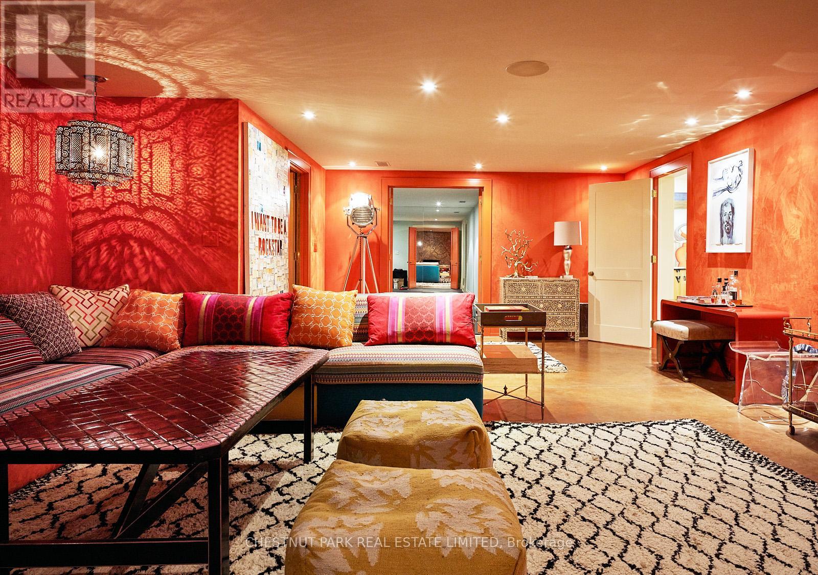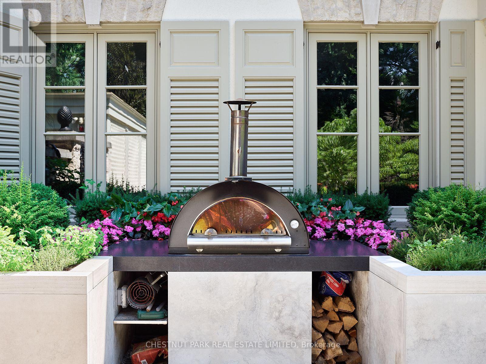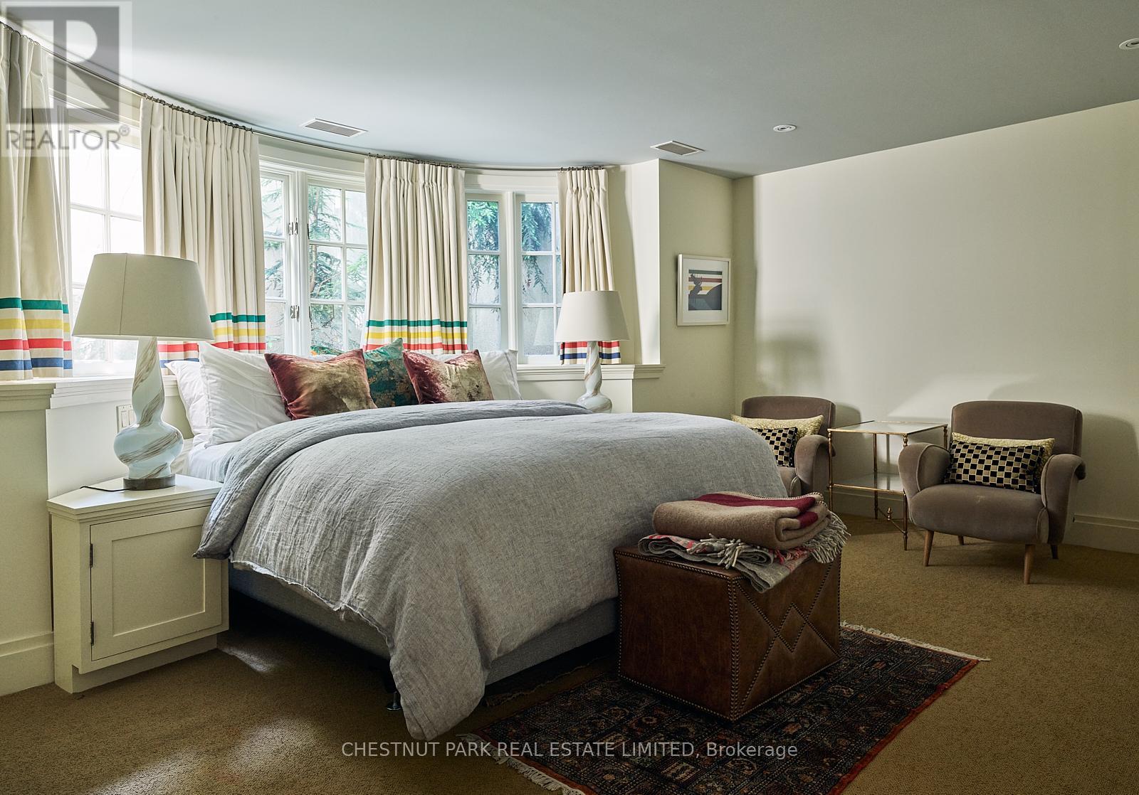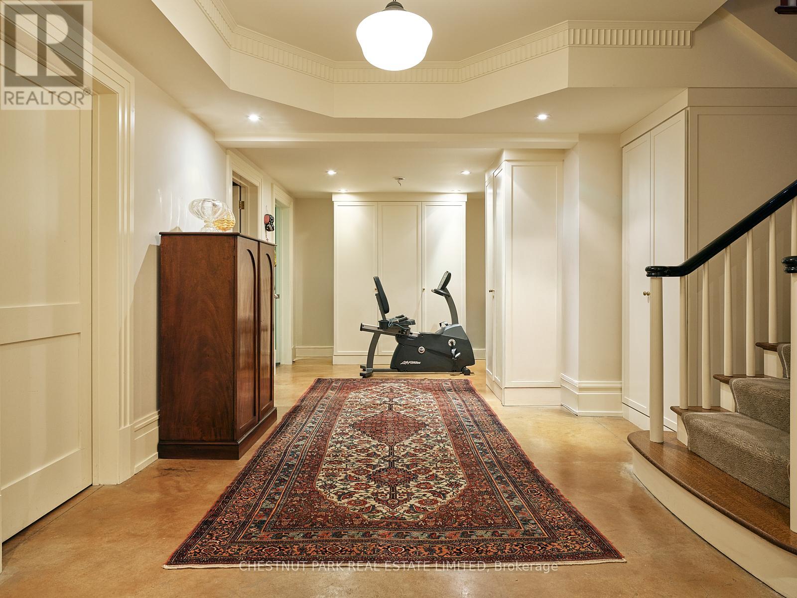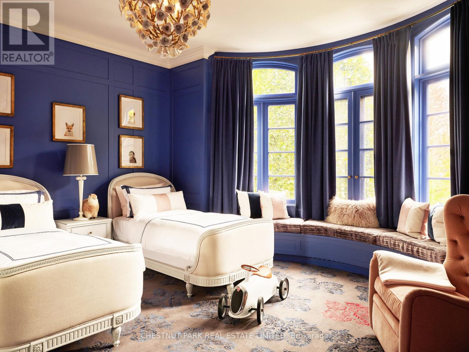 This remarkable residence stands apart among Forest Hill's most architecturally sophisticated homes. Designed & lived in by the current owners for their young family, its adaptable 8,345' layout easily accommodates executive lifestyles-from entertaining with ease to family-focused living where the stunning Kit can seamlessly open to the adjoining DR & Fam areas, & the lower media room/play room may be a children's play room or creative studio. Balancing warmth with precision, the interiors evoke serene modernism through tactile finishes & finely measured detail. Pale oak, bronze fixtures, honed limestone, & softly textured surfaces create a natural palette that diffuses light with quiet luxury. Expansive windows frame curated garden views, merging the exquisite interiors with the lush landscape. Featured in design publications, the home, built by Whitehall Homes, embodies elevated craftsmanship, soaring 11' clgs, Venetian plaster, de Gournay, molded & panelled walls, & a circular DR complemented by an elegant cherrywood study. Two offices on the main & a 14' high Library offer exceptional versatility for modern professionals. Thoughtful updates include gallery-grade lighting ('21), a Bloomsbury kitchen with servery & adjoining mudroom ('18/19), refinished rift-sawn oak herringbone floors ('18), & exquisite terraces & gardens by Janet Rosenberg ('17/18). Exemplary appointments include 2 1/4" thick veneered & hand-waxed crotch mahogany doors with custom Nanz hardware, a 31' grand hall anchored by a dramatic 3-floor split staircase, Scalamandré silk-upholstered walls in the Fam Rm, & a sumptuous PR suite featuring a vaulted Atrium Sitting area, dual ensuites with sep dressing zones, & handwoven silk broadloom. A light-filled 28' Hall Sitting area overlooks the grounds & striking Library. The lower provides a 5th & 6th BDRM, a fabulous Media/Play Rm, wine storage, a fitness or yoga studio, lots of storage & Lau. Radiant-heated floors in principal rooms. (id:64974)