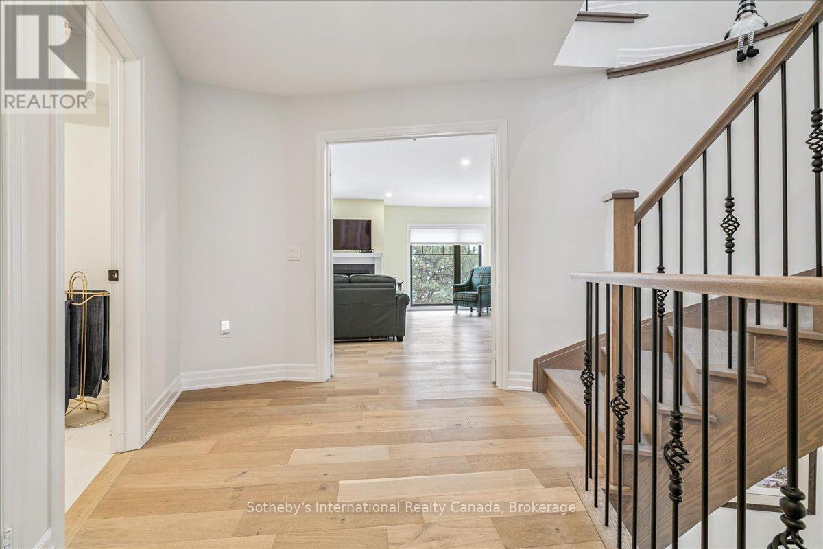 Rarely offered, true lakefront freehold townhouse in prestigious Bronte with unobstructed, panoramic views of Lake Ontario. One of only a select few waterfront residences in this exclusive enclave and seldom available, this exceptional townhouse is offered for the first time and has been professionally renovated from the ground up, representing a complete rebuild with all-new systems, infrastructure, and bespoke designer finishes throughout. Thoughtfully reimagined with refined architectural detail, the residence showcases a dramatic custom staircase, sun-filled open-concept living spaces, and expansive windows that frame breathtaking lake views from multiple levels. Seamless indoor-outdoor flow creates an unparalleled waterfront living experience rarely available in townhouse ownership. The designer kitchen features custom cabinetry and premium appliances, including a high-end stove with oven, range hood, microwave, dishwasher, and refrigerator, curated for elevated everyday living and elegant entertaining. Engineered hardwood flooring extends throughout, complemented by heated bathroom floors and three fireplaces, including two gas fireplaces and an electric fireplace in the private primary suite. The spa-inspired primary ensuite features a steam shower. The third bedroom offers flexibility to be a family room (presently used as one). Basement office/den has multiple uses. Two private waterfront decks, including an impressive 40-ft deck(approx) on the main and a fully covered one on the third floor, provide exceptional outdoor living and spectacular sunset views. Located in one of Oakville's most coveted waterfront communities with private tennis courts, just steps to Bronte Harbour, marina, waterfront trails, fine dining, and boutique shops. A truly rare turnkey lakefront offering. (id:64974)