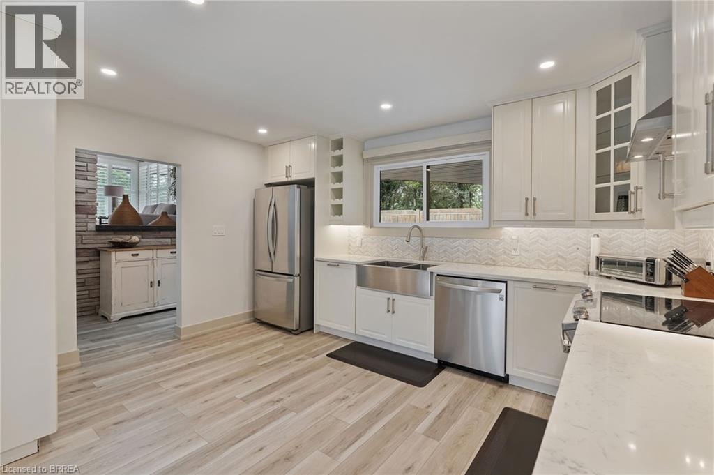 Welcome to 10 Stymie Blvd! This home shows as well as you could imagine. Located right next to the Brantford Golf and Country Club in prestigious Golfdale. With a limited number of homes in this neighbourhood, combined with very little long term turnover, this could be your golden opportunity to secure a fantastic property in your dream location. Over $200,000 in renovations inside and out over the last few years, this unique property is ready for its next owner. Boasting 3 large bedrooms and 2.5 luxurious bathrooms. Very trendy floorplan with multiple living spaces. New roof, windows, soffit, fascia, eaves, A/C, owned water heater and softener, flooring, irrigation system, backyard concrete with gas line, the updates are almost endless. Laundry on the upper level next to the bedrooms. Parking for 10 cars, awesome garage space with inside entry, large shed at rear of property that is heated! Enjoy peaceful mornings on this quiet street that is surrounded by other beautiful homes. If golf is your thing, you're just steps away from the 4th oldest Golf Club in North America. If trails and biking are your thing, you're just steps away from an expansive trail system that is beyond gorgeous running along the Grand River. Quick access to the highway and all amenities. Make this great property your HOME (id:64974)