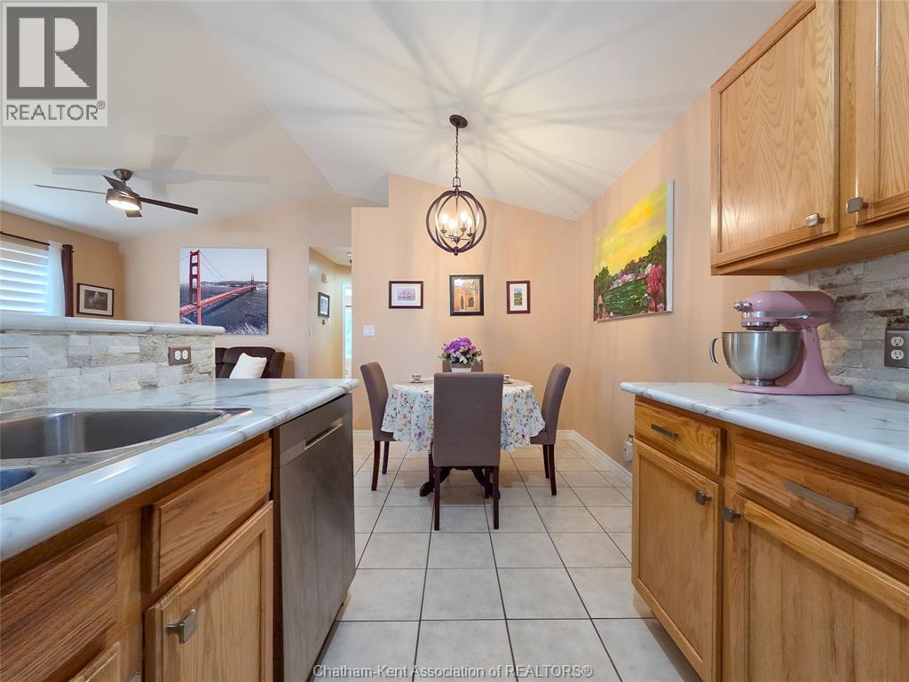 Effortless Living in Style home in Chatham. Welcome to this beautifully maintained 3-bedroom, 2-bathroom bungalow-style row home offering the perfect blend of comfort, style, and convenience. With 2 spacious bedrooms on the main floor and a third bedroom in the finished lower level, there’s room for family, guests, or a private home office. Inside, you'll find beautiful hardwood floors, California shutters, and a warm, inviting layout. The bright, functional kitchen is a standout with its stone backsplash, plenty of cabinet space, and a functional design that makes meal prep a breeze. The finished basement includes a full second bathroom and a good-sized laundry room—ideal for everyday ease and storage. Step outside to enjoy your new backyard deck and new fence, creating a peaceful, private outdoor space to enjoy your morning coffee. Close to St Clair College and the new Rogers Sports Dome to play pickleball or tennis in a comfortable setting. Low-maintenance exterior and affordable maintenance fees make this home an excellent choice for downsizers, busy professionals, or first-time buyers seeking move-in-ready living without the hassle. $75 a month association fee covers snow removal and grass cutting. (id:64974)