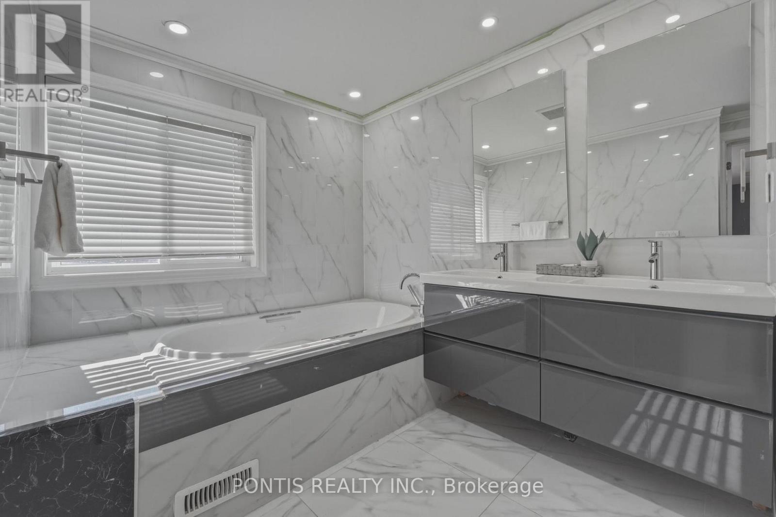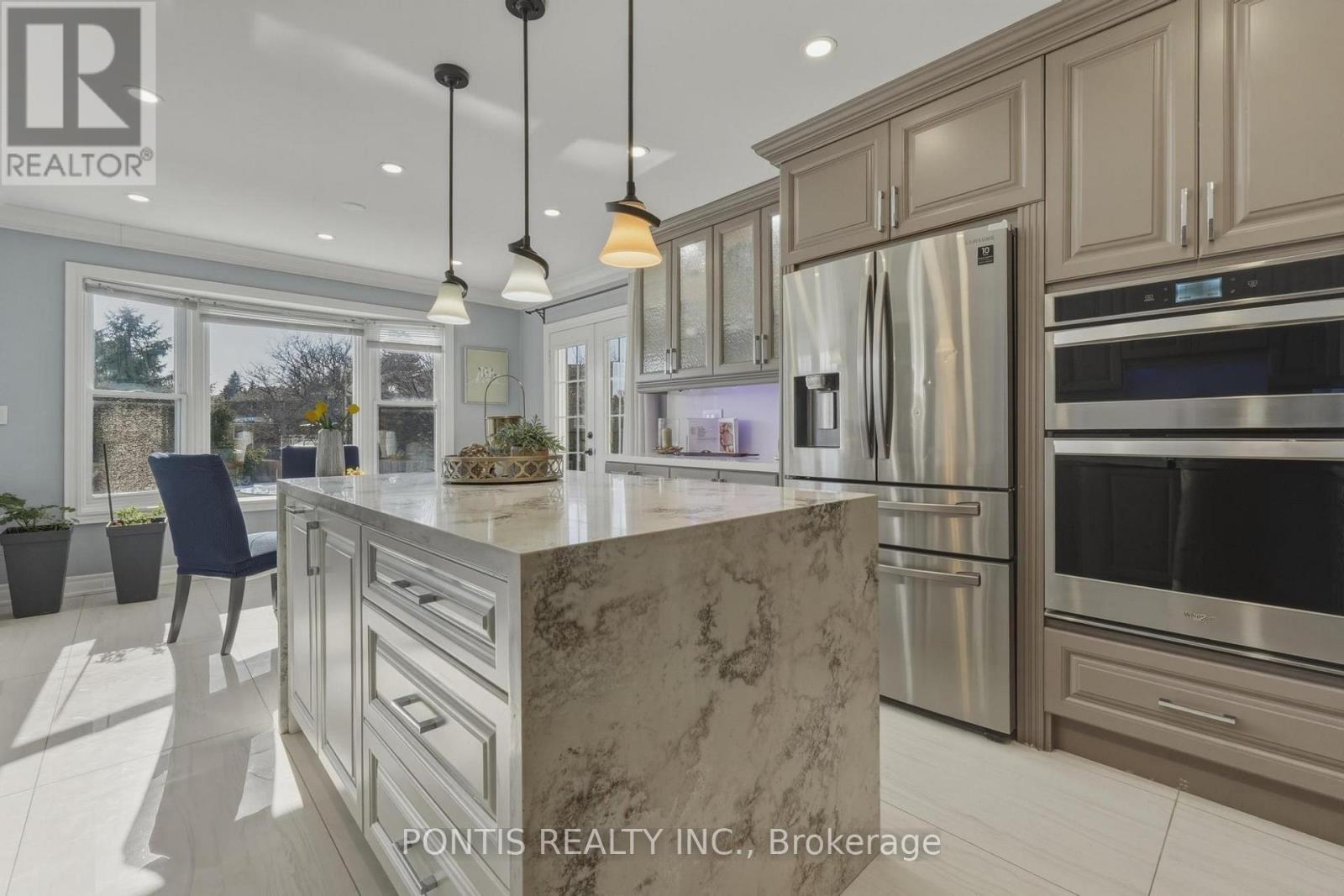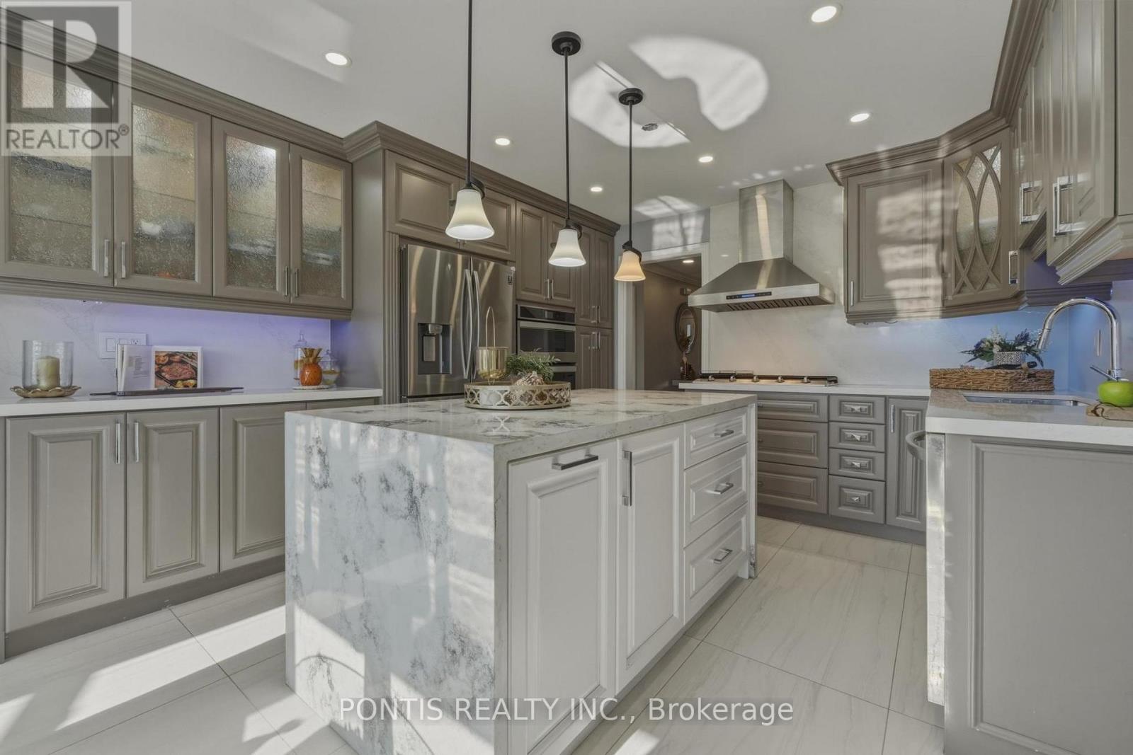 Welcome to this breathtaking, fully upgraded 4-bedroom, 3.5-bath estate in Brampton, set on a rare 60-ft lot with over 5,000 sq ft of finished living space, a walkout basement, heated in-ground pool, and a state-of-the-art home theatre. Located on a quiet court with rare privacy and no direct home behind, this exceptional property offers luxury living with over $300K in premium upgrades. Step into a grand foyer featuring a stunning round hardwood staircase with iron pickets, wide-plank hardwood flooring, marble tiles, new baseboards, and absolutely no carpet throughout. The main level offers expansive living, dining, and family rooms filled with natural light, highlighted by a beautiful electric fireplace that creates the perfect ambience for relaxing or entertaining. The chef-inspired kitchen showcases upgraded cabinetry and countertops, built-in appliances, a walk-in pantry, and a large waterfall island that serves as the centerpiece for gatherings. Two walkout decks overlook a private backyard oasis with a heated in-ground pool. The fully finished walkout basement is designed for ultimate entertainment, featuring a second full kitchen with upgraded finishes, a stylish bar with a built-in bar fridge, a premium 6-seat theatre room with high-end projector and audio, a billiards and games area with pool and ping pong tables, a bedroom, a full bath, and a cold cellar. All washrooms have been tastefully upgraded with premium finishes. Additional highlights include a spacious laundry/mudroom, 200 amp electrical service, central vacuum, EV charger, crown molding, smart dimmable pot lights, gas BBQ line, modern steel front door, and smart home technology including Google Nest door lock, doorbell, and garage camera. A rare turnkey luxury home in one of Brampton's most desirable locations. (id:64974)