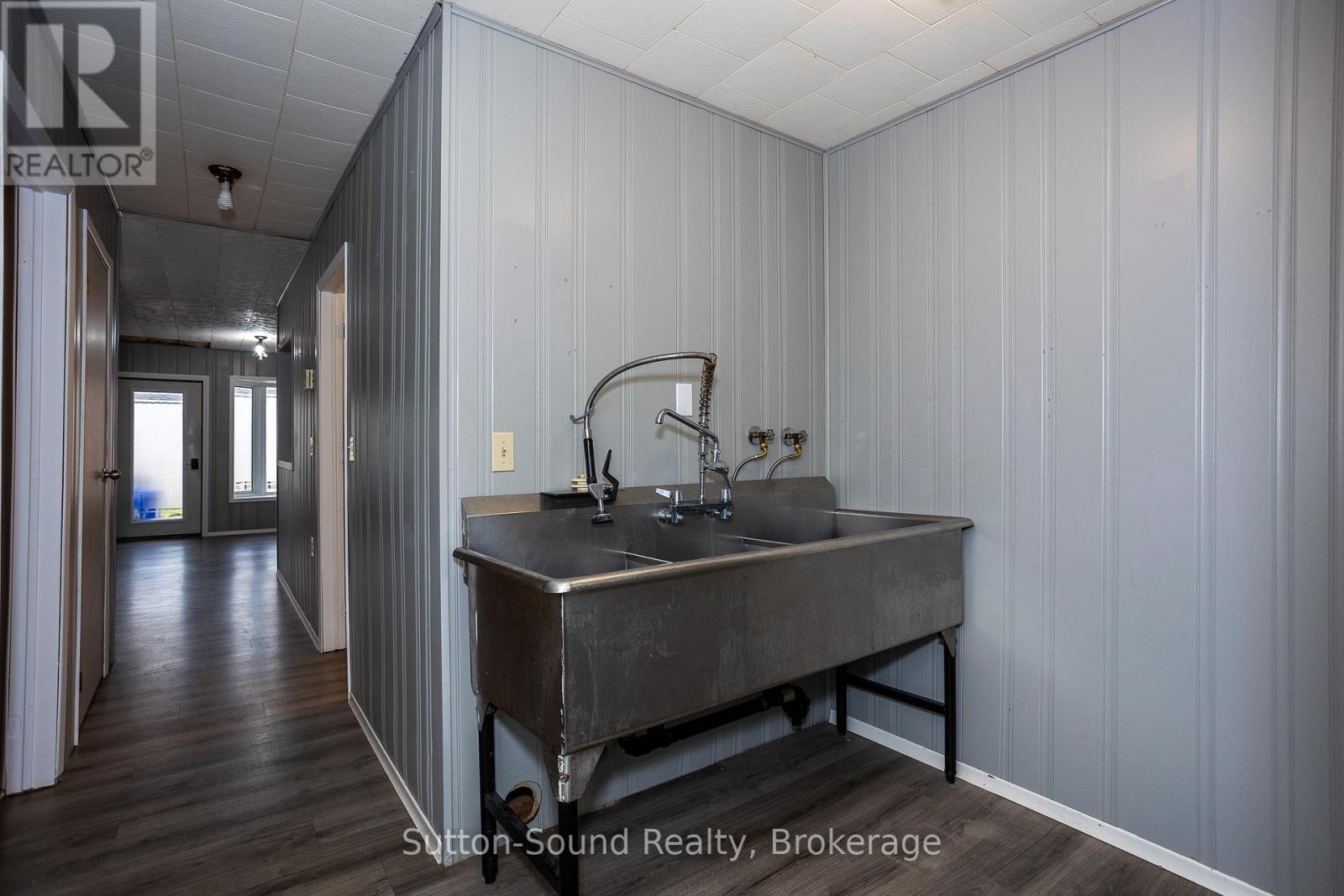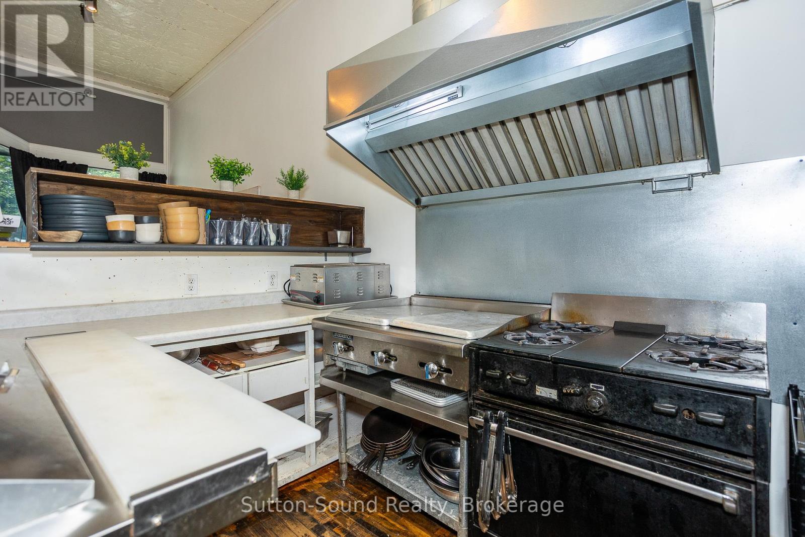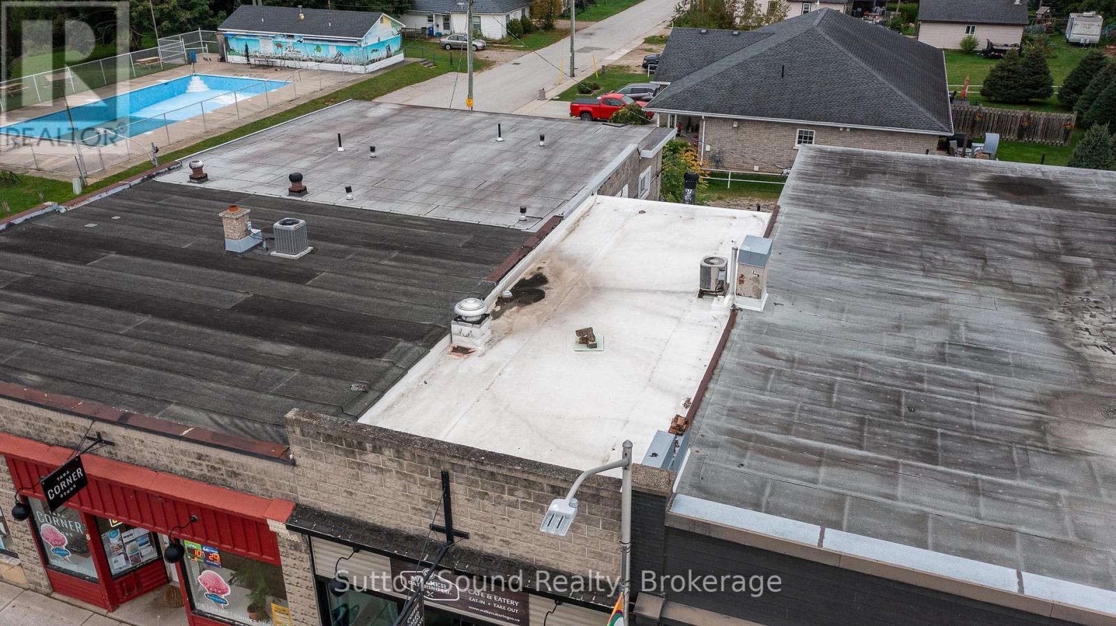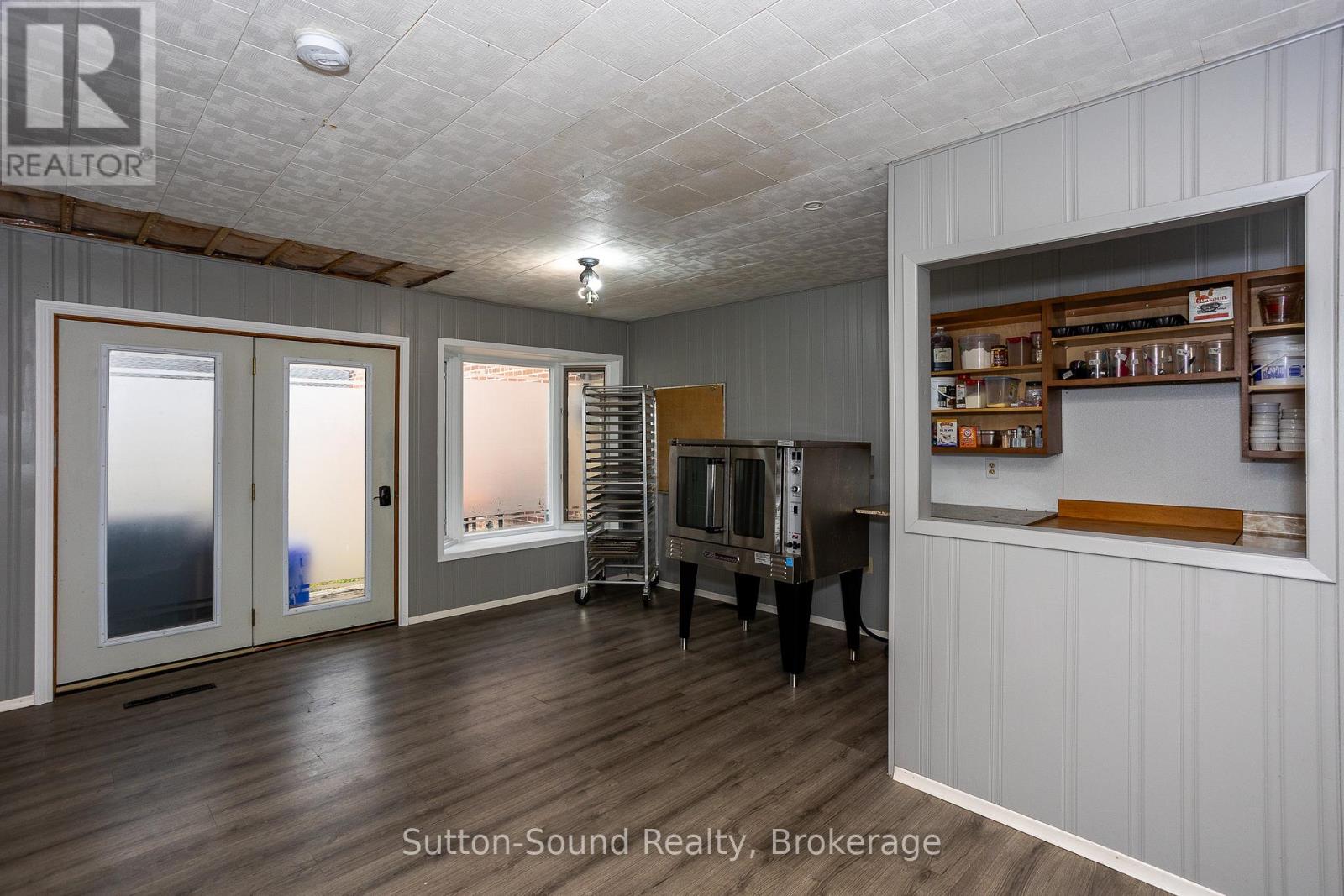 Welcome to this versatile commercial property with prime Main Street exposure in the charming village of Tara. Currently operating as a catering space, and formerly a restaurant, this property offers endless potential for your next business venture. Inside you'll find a functional layout with limited seating in the front, updated storage and work areas to the back, and two washrooms for convenience. A tidy, dry basement provides ample room for storage. The property has been well maintained, with the main flat roof replaced in 2021 and the back roof in good repair. Heating is provided by a gas furnace. An added bonus is the potential to re-establish a rear apartment, complete with space for an additional kitchen and 4-piece bathroom an excellent live-work opportunity for entrepreneurs looking to combine home and business in one location. Included in the sale are restaurant equipment and supplies, making this a turnkey opportunity for a bakery, café, pizza shop, or any creative venture you envision. While there is no dedicated parking, the excellent visibility and walkable location enhance accessibility for customers. Don't miss this chance to invest in a flexible commercial space with character, location, and multiple possibilities. (id:64974)