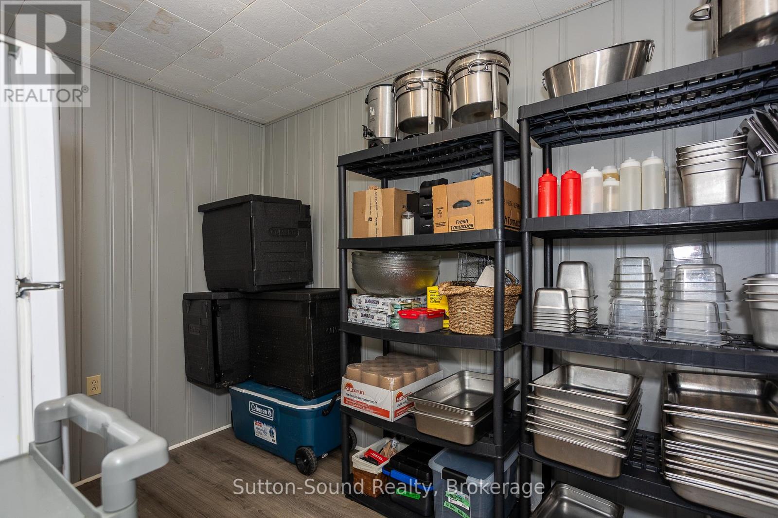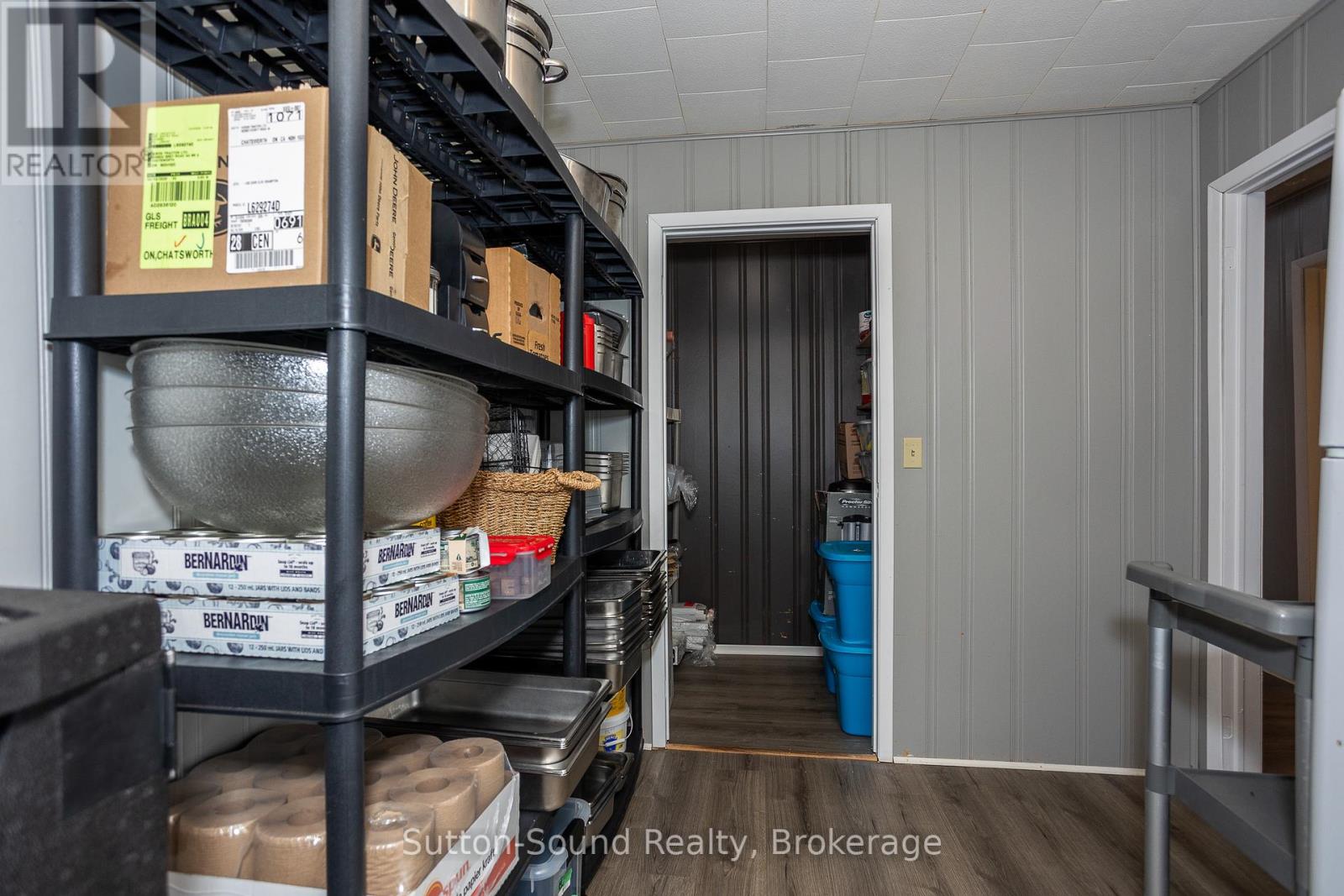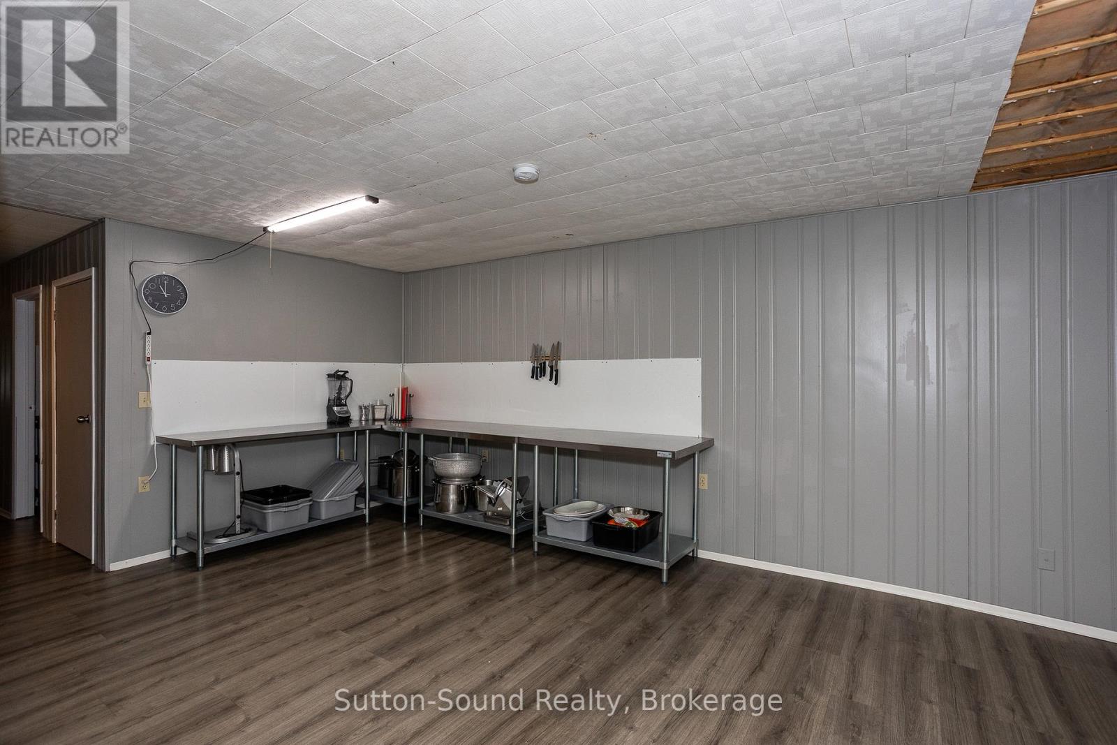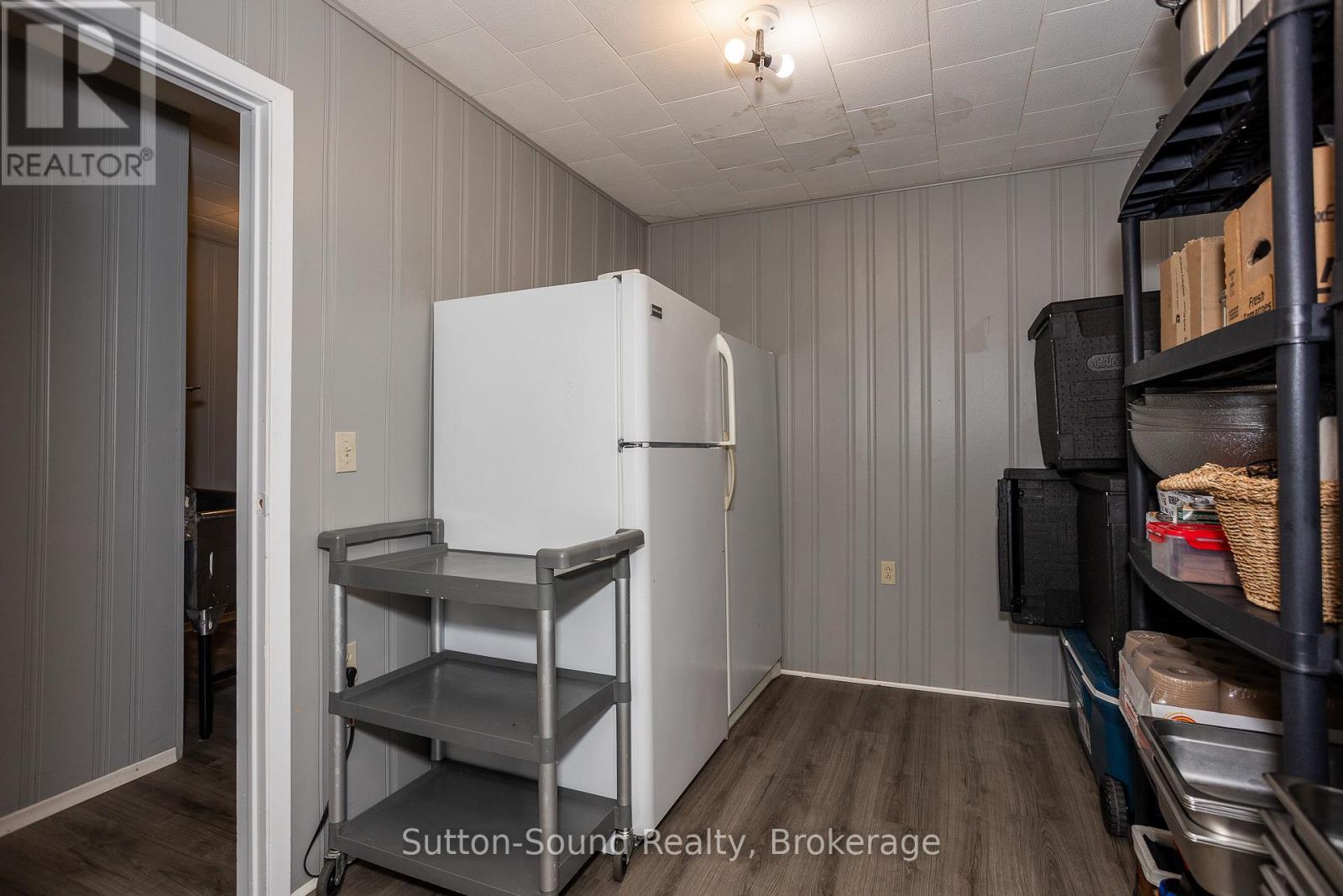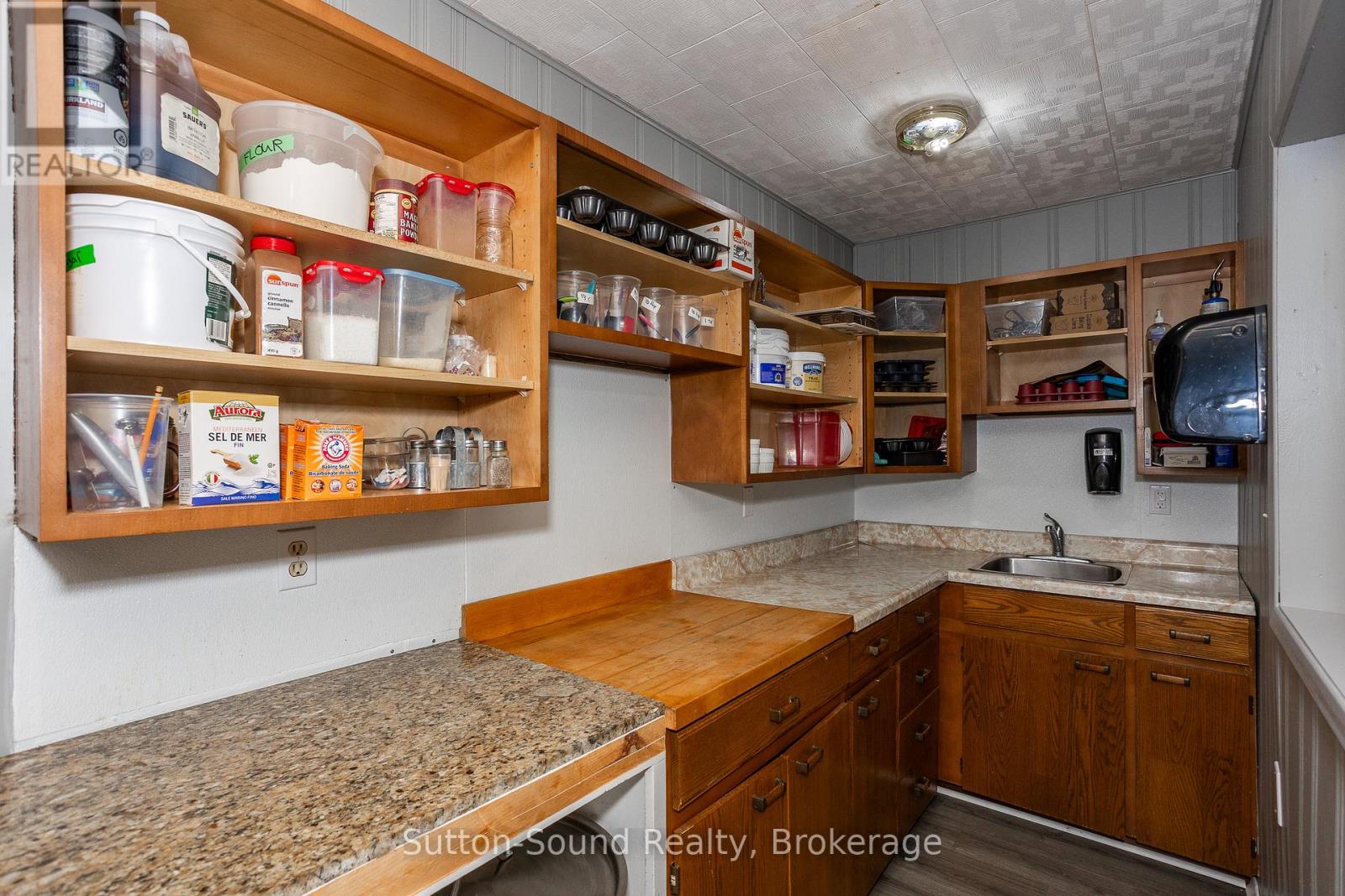 Welcome to this versatile commercial property with prime Main Street exposure in the charming village of Tara. Currently operating as a catering space, and formerly a restaurant, this property offers endless potential for your next business venture. Inside you'll find a functional layout with limited seating in the front, updated storage and work areas to the back, and two washrooms for convenience. A tidy, dry basement provides ample room for storage. The property has been well maintained, with the main flat roof replaced in 2021 and the back roof in good repair. Heating is provided by a gas furnace. An added bonus is the potential to re-establish a rear apartment, complete with space for an additional kitchen and 4-piece bathroom an excellent live-work opportunity for entrepreneurs looking to combine home and business in one location. Included in the sale are restaurant equipment and supplies, making this a turnkey opportunity for a bakery, café, pizza shop, or any creative venture you envision. While there is no dedicated parking, the excellent visibility and walkable location enhance accessibility for customers. Don't miss this chance to invest in a flexible commercial space with character, location, and multiple possibilities. (id:64974)