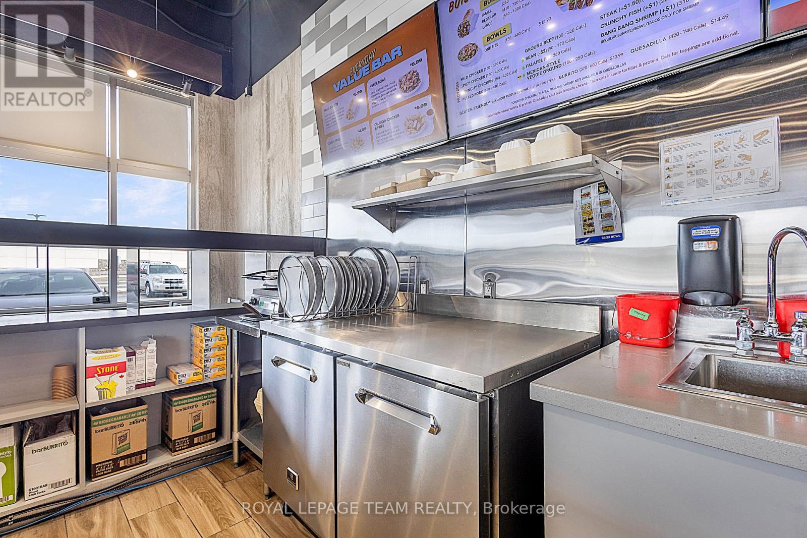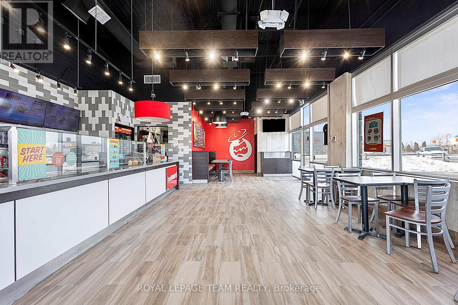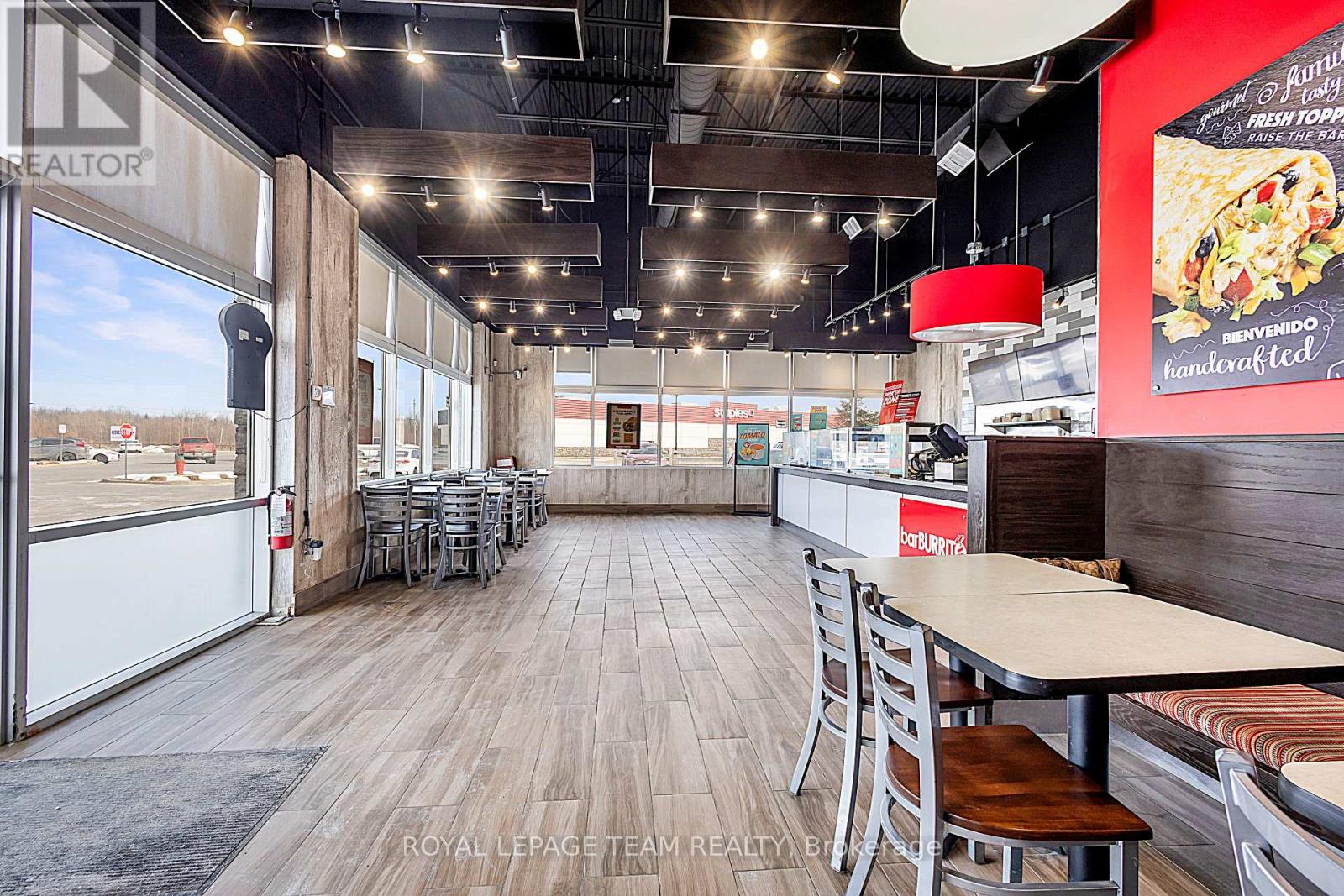 Prime BarBurrito franchise opportunity in Kemptville. Business in a busy, high-traffic location with all equipment and setup already in place. Skip the costly build-out-opening a new franchise can cost $500,000-$600,000, while this fully operational location is available at almost half the price. Meticulously maintained 1,500 square feet of space, perfect for an owner-operator or investor. This location benefits from strong foot traffic and excellent visibility in a busy plaza, attracting repeat customers and new visitors alike, with plenty of parking spaces for customers. Conveniently located close to Highway 416 for easy access. All interior finishes, kitchen equipment, and fixtures are included, allowing you to start generating revenue immediately. Soon-to-start DoorDash delivery will bring extra income. Don't miss this rare opportunity to own a profitable, established business. Contact today to schedule a private showing. (id:64974)