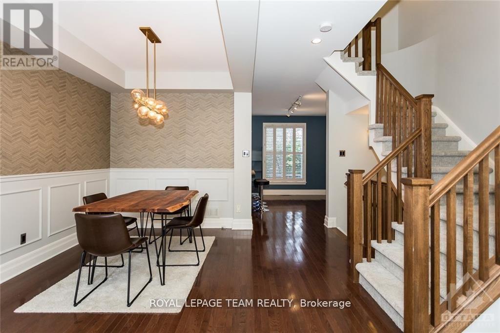 Beautiful end-unit executive townhome in sought-after West Centretown, offering modern finishes and stylish décor throughout. Filled with natural light, this thoughtfully designed home features a unique and functional 3-storey layout. The main level includes a versatile den, powder room, and ample closet space-perfect for a home office or guest area. The second level boasts 9' ceilings and a bright, open-concept living, dining, and kitchen area, complete with a private balcony-ideal for entertaining or relaxing. Upstairs, you'll find a spacious primary bedroom with a full ensuite, along with two additional generously sized bedrooms. Enjoy the convenience of a 1-car attached garage with additional parking in the driveway, and a basement offering valuable additional storage space. Step outside to your private, fully fenced outdoor patio with walkout access-perfect for low-maintenance outdoor living. Located just minutes from Dow's Lake, Little Italy, and the Civic Hospital, with easy access to Hintonburg and Westboro by bike, this home offers the best of urban living in a vibrant, walkable neighbourhood. *Heat, hydro, water are extra. (id:64974)