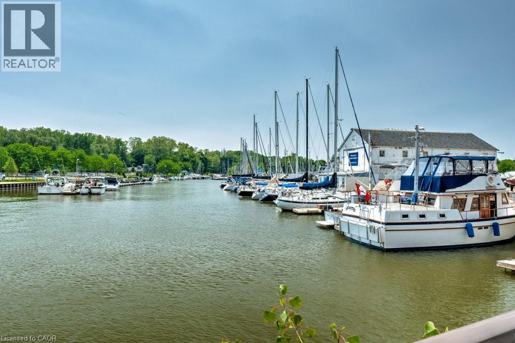 This rare offering in the symbolic StoneBoat Quay, is ready for enjoyment for those seeking the Bronte harbour front lifestyle and the best that Oakville has to offer. The home features an oversized floor plan, meticulously maintained and upgraded with fine modern finishes that brighten and add vibrancy to the space. An elegant and cozy setting for lakeside lifestyle. The heart of the home, the kitchen featuring freshly appointed granite counters and a walnut bar top, flows into the home creating a seamless and open living experience, perfect for entertaining a few or many. The sunken balcony can be accessed from both the living room and large master suite offering a completely private and romantic outdoor space to take in the sights and sounds of exciting Bronte.The building features a private access outdoor seating area waterside, for exclusive use by residents to relax and watch boats drift in and out of the marina. Iconic 100 Bronte, StoneBoat Quay, leads directly to the marina, offering access to cherished Bronte pastimes like kayaking and waterfront exploration. This special residence is conveniently located across the street from the famous Plank Tapas eatery and other emblematic restaurants and patios, steps away from the energetic Bronte farmers market which happens weekly, direct access to the beach, moments from Bronte Go Station and major highway anchors. This home promises a truly luxurious lakeside lifestyle experience. (id:64974)